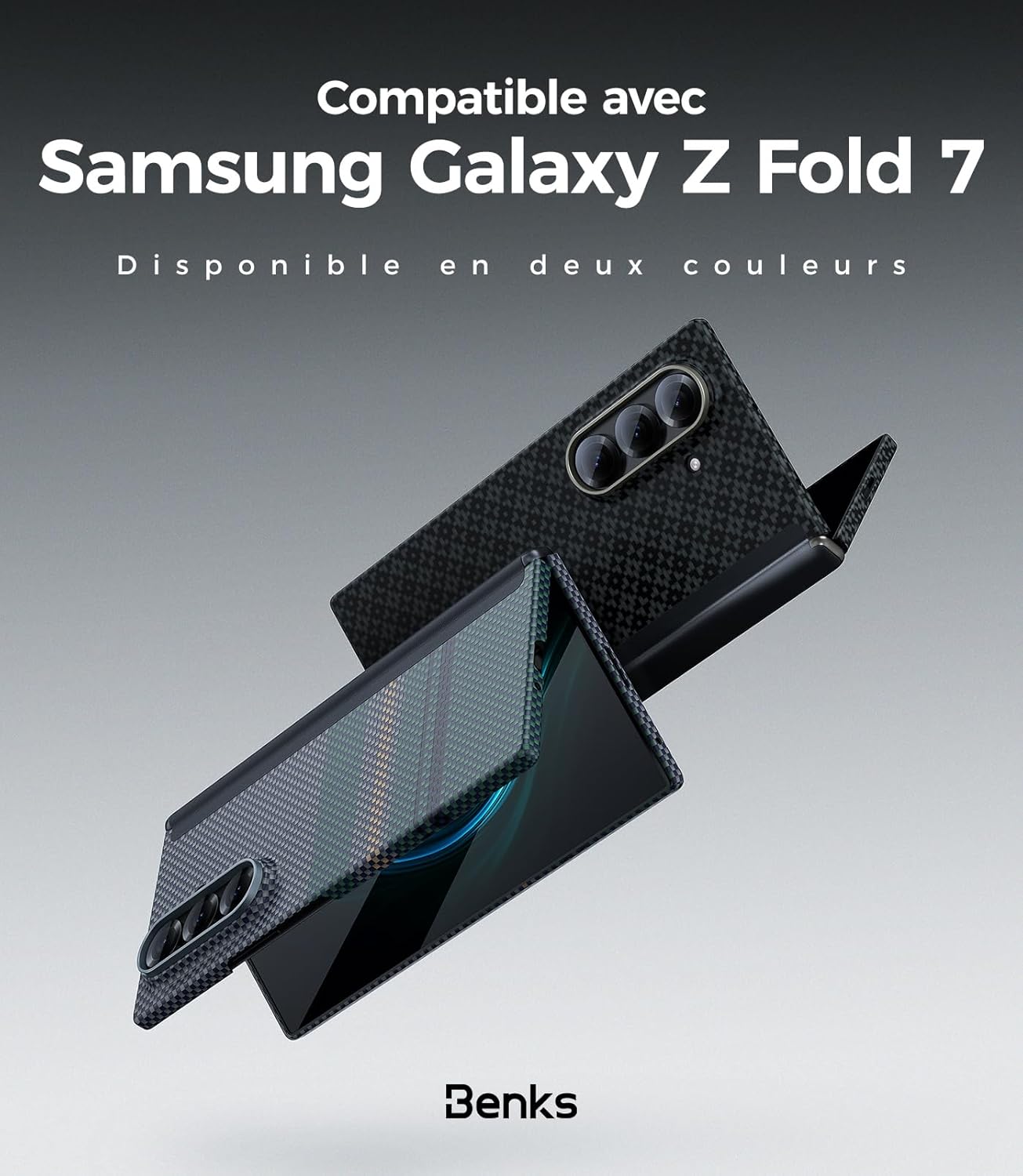 Z Fold 7 Compatibilité Ce boîtier Benks Grand Combo est exclusivement compatible avec Samsung Galaxy Z Fold 7 5G (2025 Nouveau modèle). Non compatible avec d’autres modèles. Remarque: veuillez lire attentivement le guide d’installation avant utilisation.