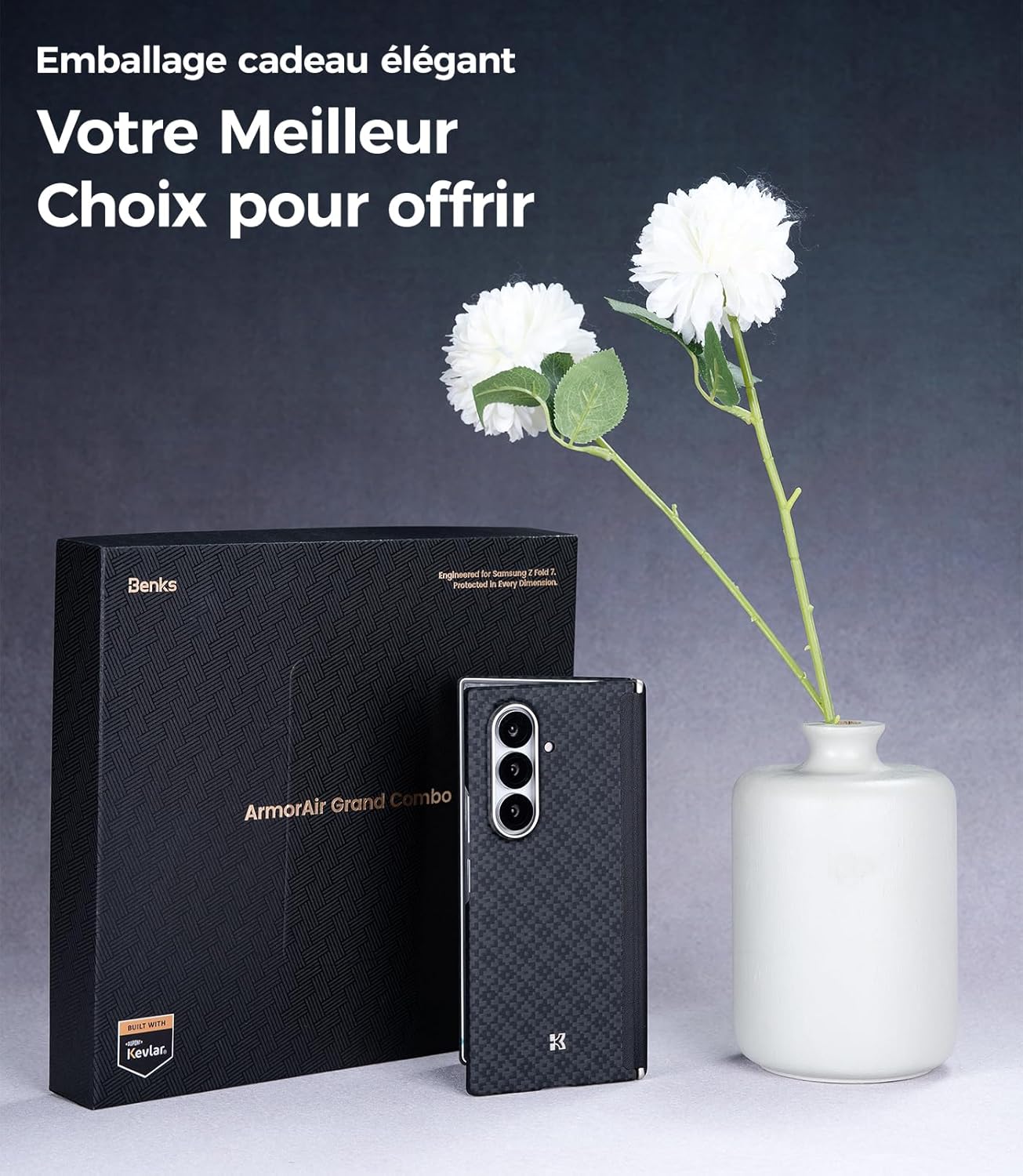 Benks allie une protection de qualité militaire, des matériaux en fibre de Kevlar haut de gamme et des designs spécialement pensés pour les appareils pliables, afin de garantir que votre Samsung Galaxy Z Fold 7 reste protégé, fonctionnel et élégant.