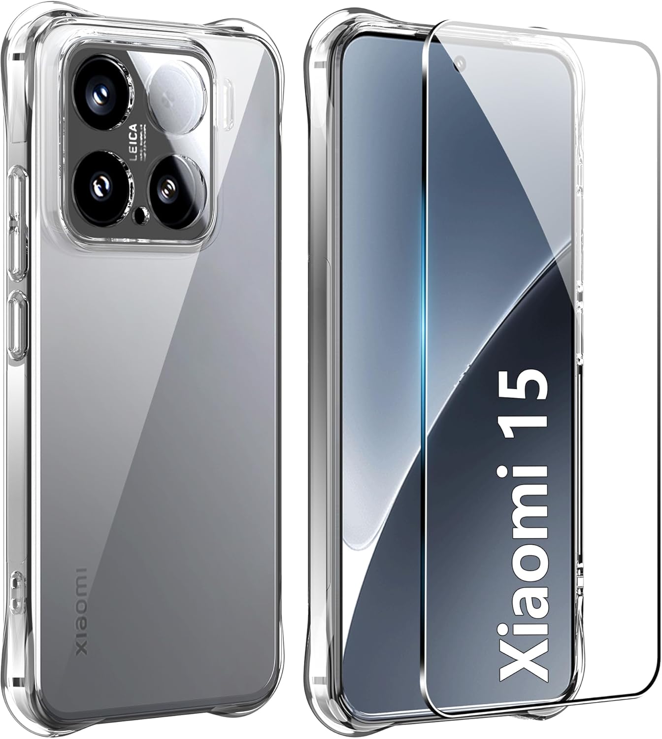 Étui Fdhyfgdy pour le boîtier de protection Xiaomi 15 + 1 pièce Protecteur d'écran en verre trempé, Case de protection en silicone transparente à l'épreuve des chocs