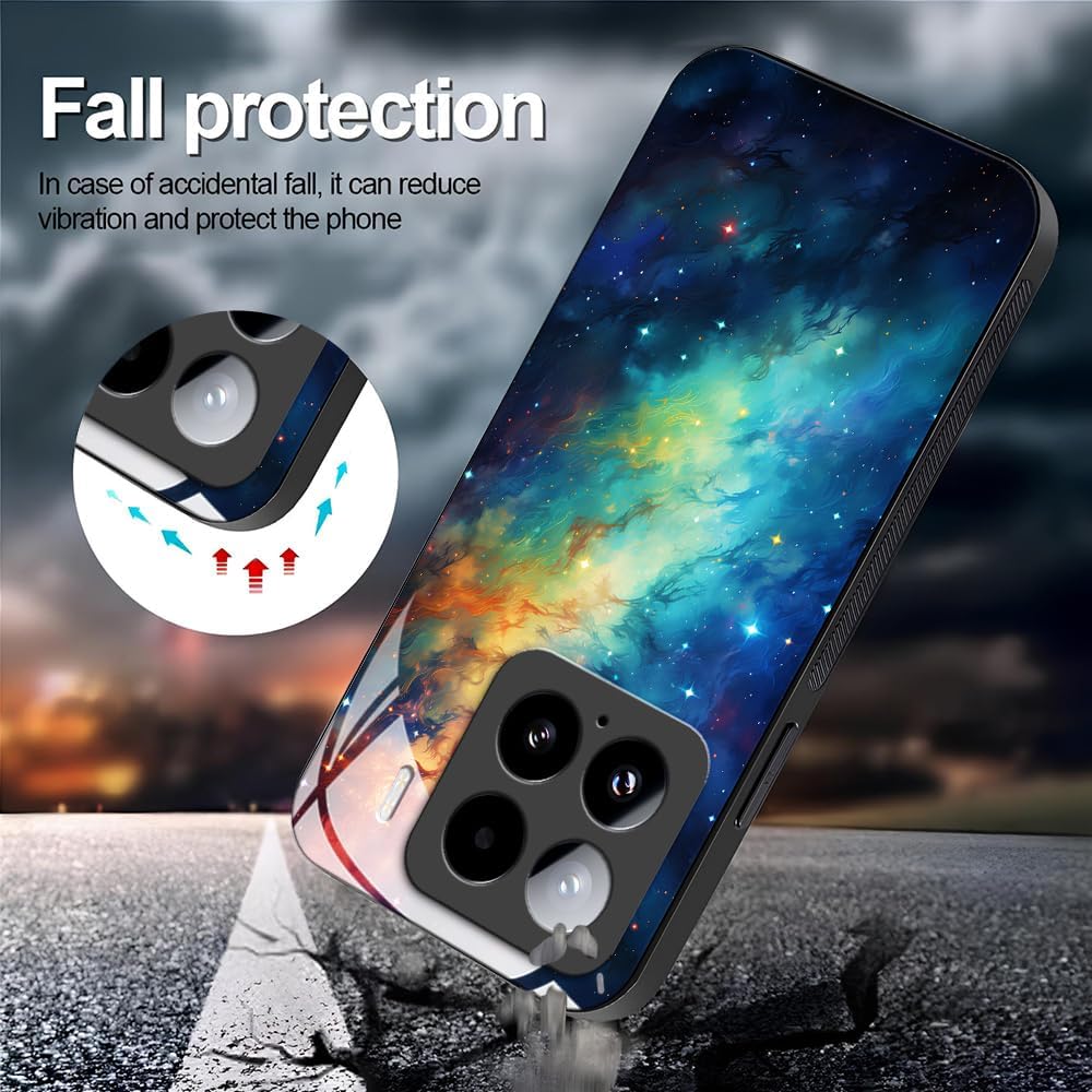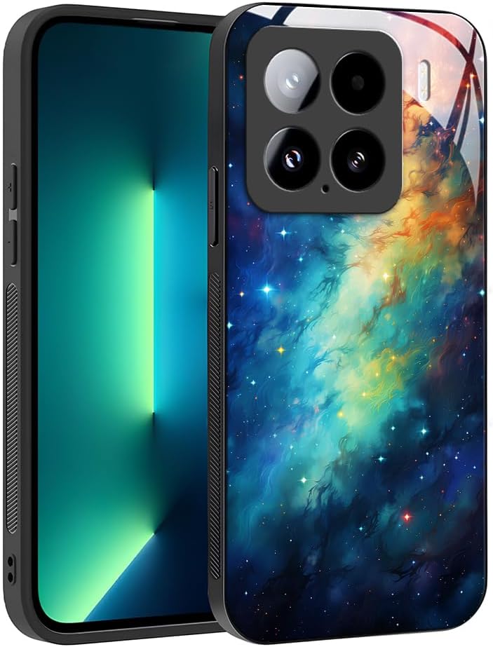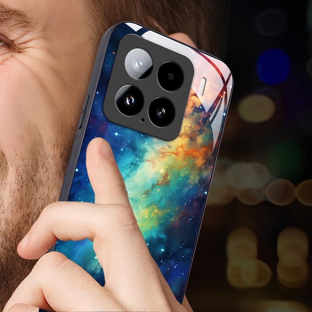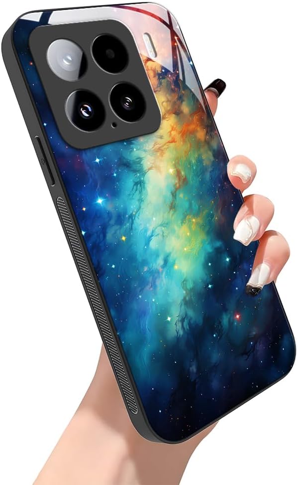 Case Yuxing pour Xiaomi 15 5G – Modèle abstrait Case de verre de dos géométrique artistique, couvercle anti-glissement anti-rayage à l’épreuve des chocs (ciel étoilé)