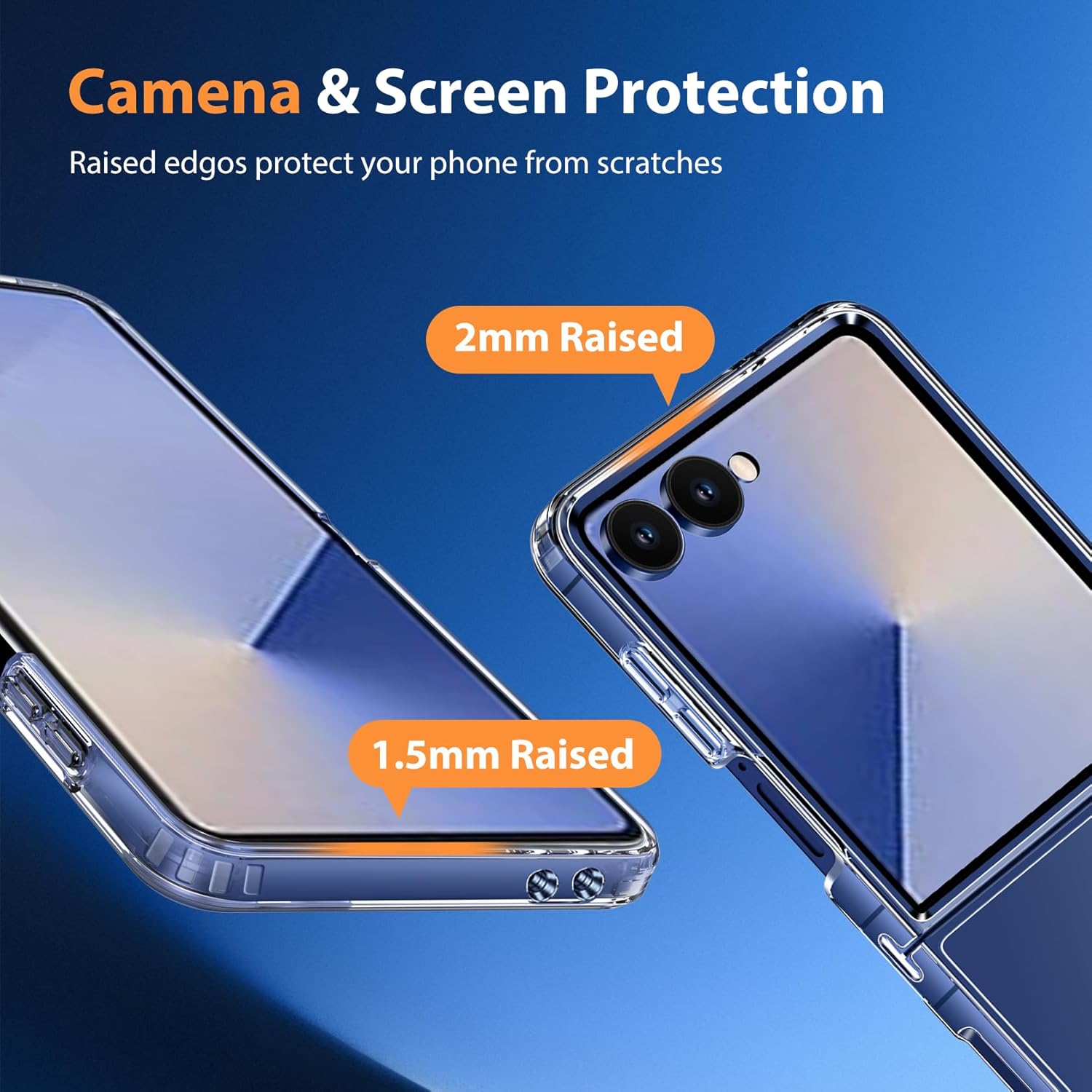 Copike Disproof de choc pour Samsung Galaxy Z Flip 7 (2025) et verre trempé, boîtier de caméra de protection, mince couvercle anti-rayon de jaune, transparent
