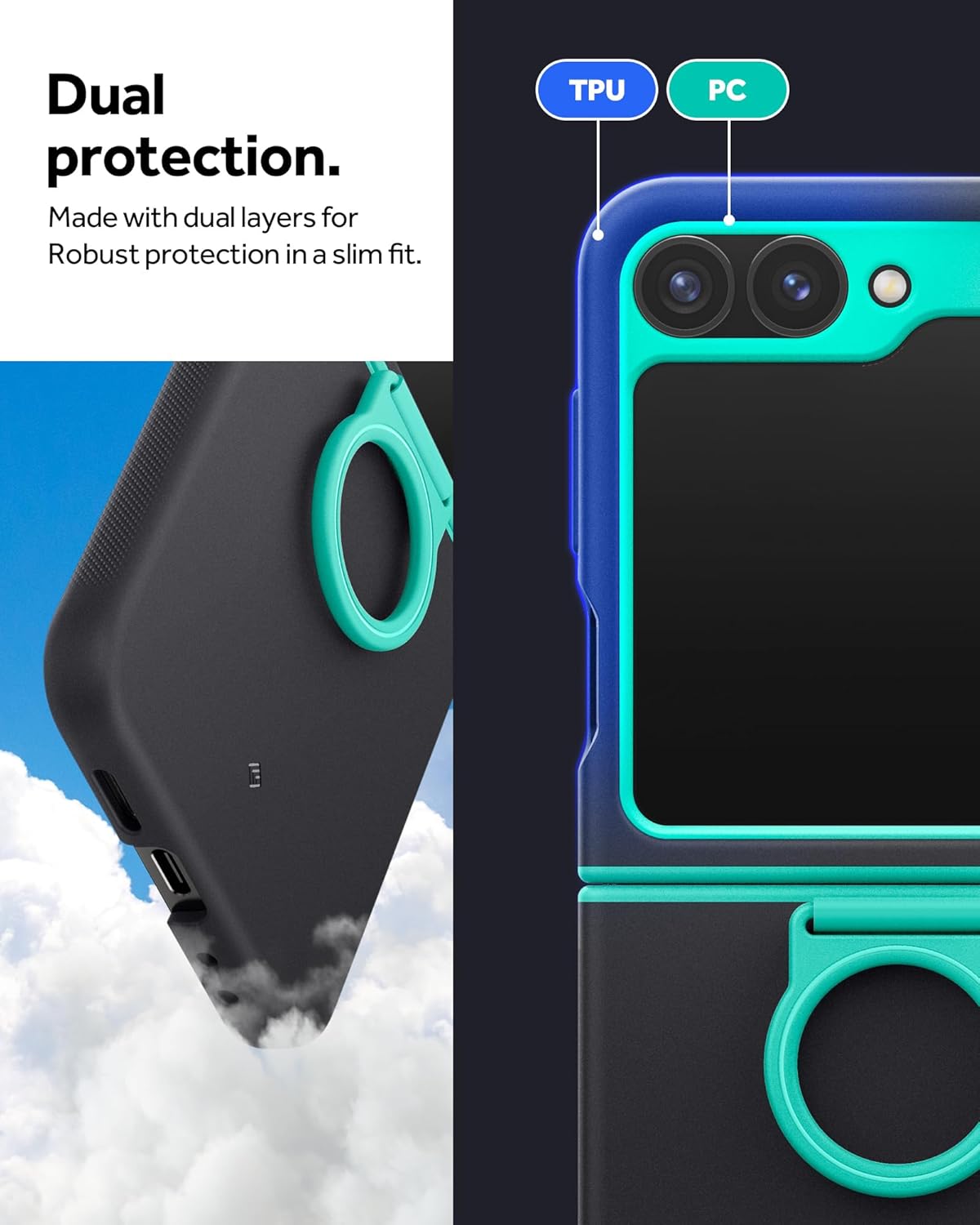 (Grip et texture optimisés) Un extérieur en TPU plus lisse attire moins de poussière que les coques en silicone Samsung Galaxy Z Flip 6 traditionnelles pour offrir le plaisir et la joie de toucher votre coque Flip 6 ; Le motif Dual Dot Grip au bas de l’étui offre une adhérence optimale lorsque le Flip 6 est complètement ouvert