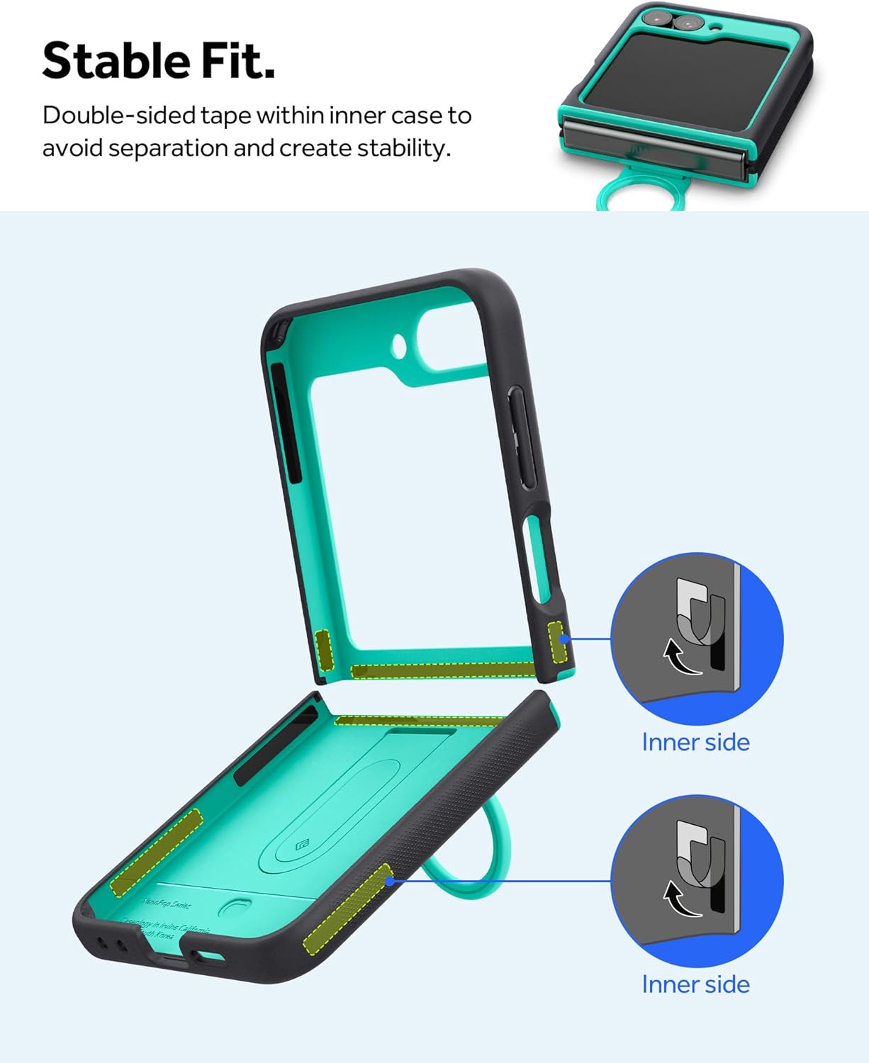 (Commodité améliorée avec anneau de support) L’anneau arrière au bas de l’étui assure stabilité et commodité lors de l’utilisation de votre Flip 6 ouvert et fermé ; L’anneau de la même couleur vive et éclatante que la zone de la caméra donne également un look coloré et unique à votre Z Flip 6.