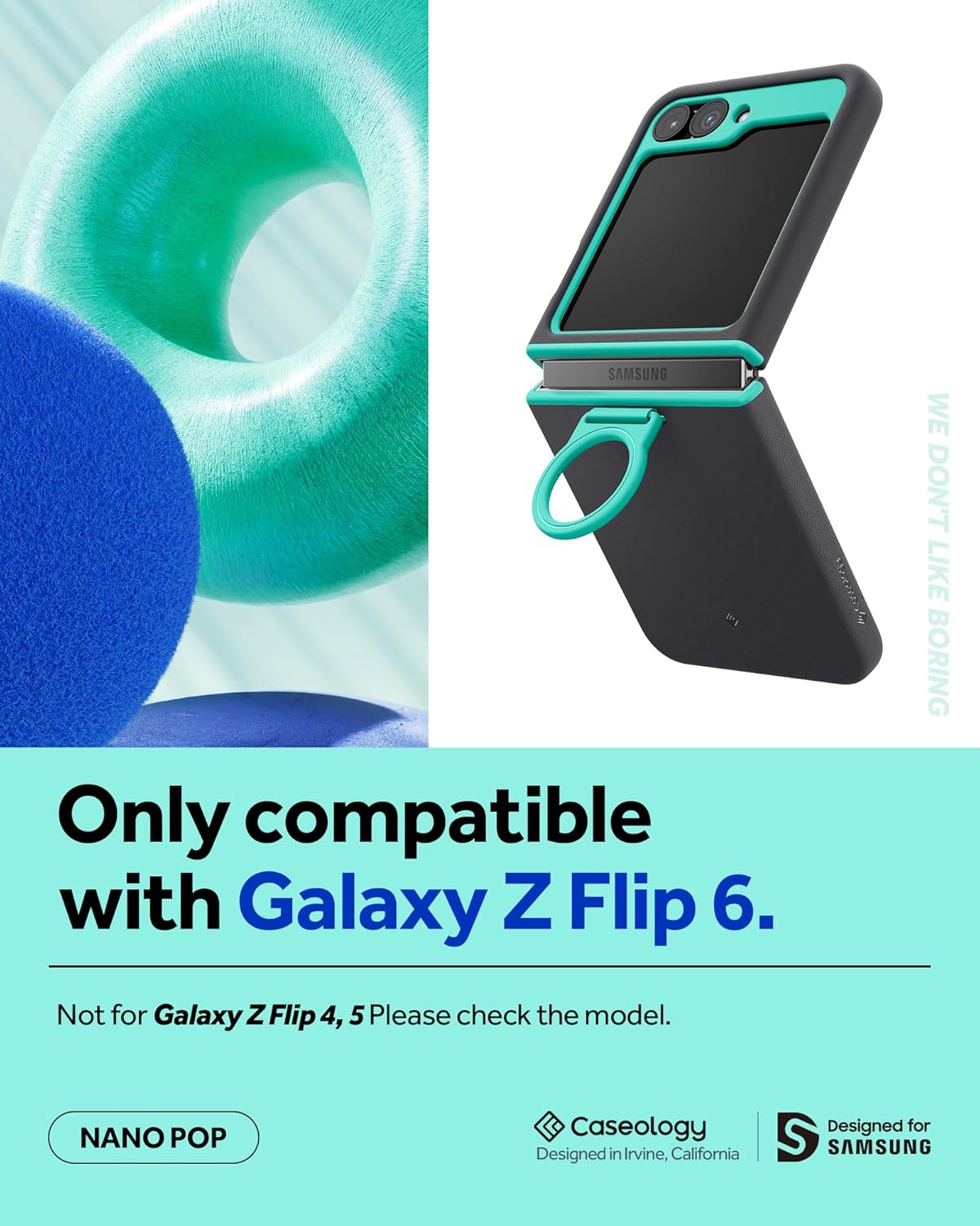 (Compatibilité et composants inclus) Compatible avec Galaxy Z Flip 6 ; Ruban adhésif double face inclus pour coller fermement le boîtier supérieur et inférieur du Nano Pop au Flip 6 ; 1 jeu supplémentaire de ruban adhésif double face inclus ; Ressentez la protection de Caseology