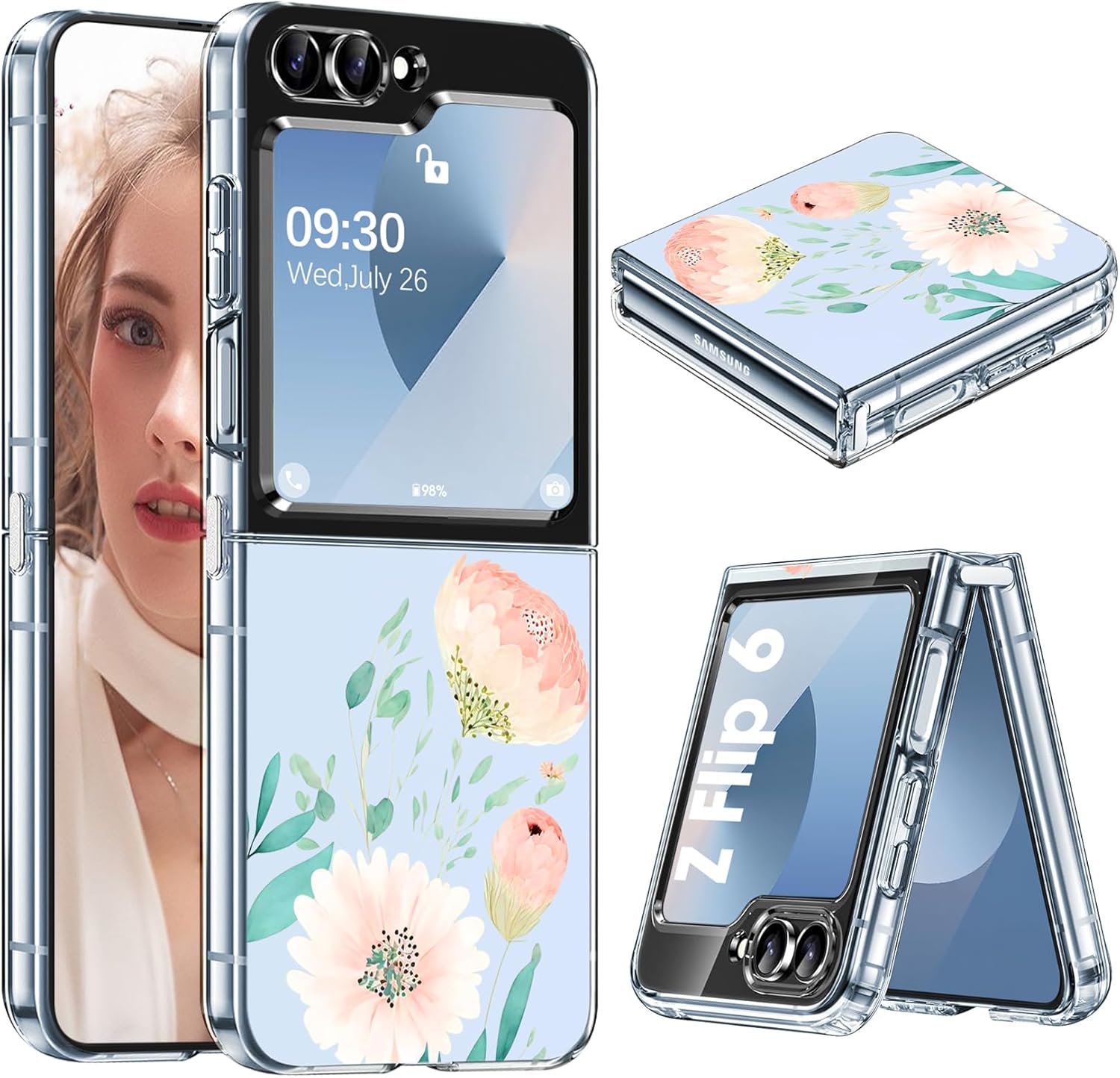 Coque pour Samsung Galaxy Z Flip 6 5G Motif : pour coque Samsung Z Flip 6 Avec des fleurs, des oiseaux et des motifs colorés, la coque transparente est personnalisée pour vous donner, à vous et à votre téléphone Z Flip 6, un look riche et vivant.