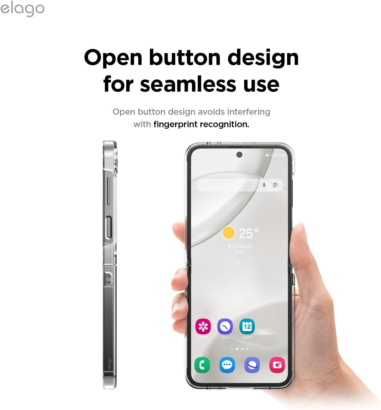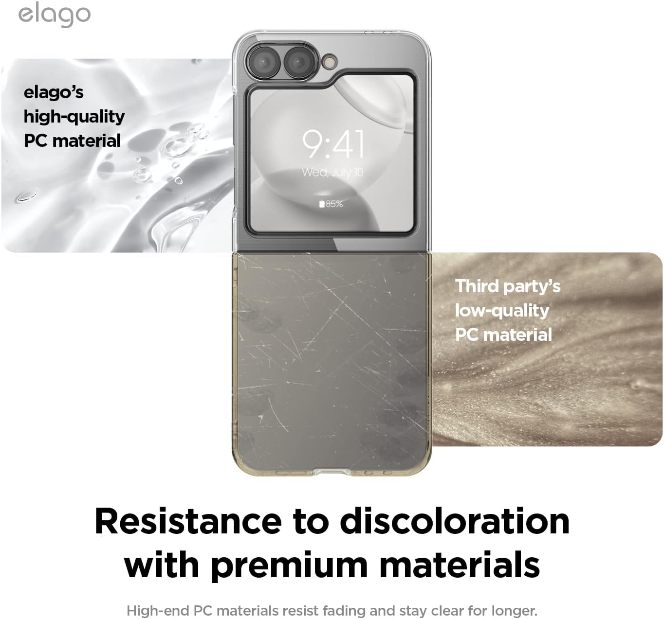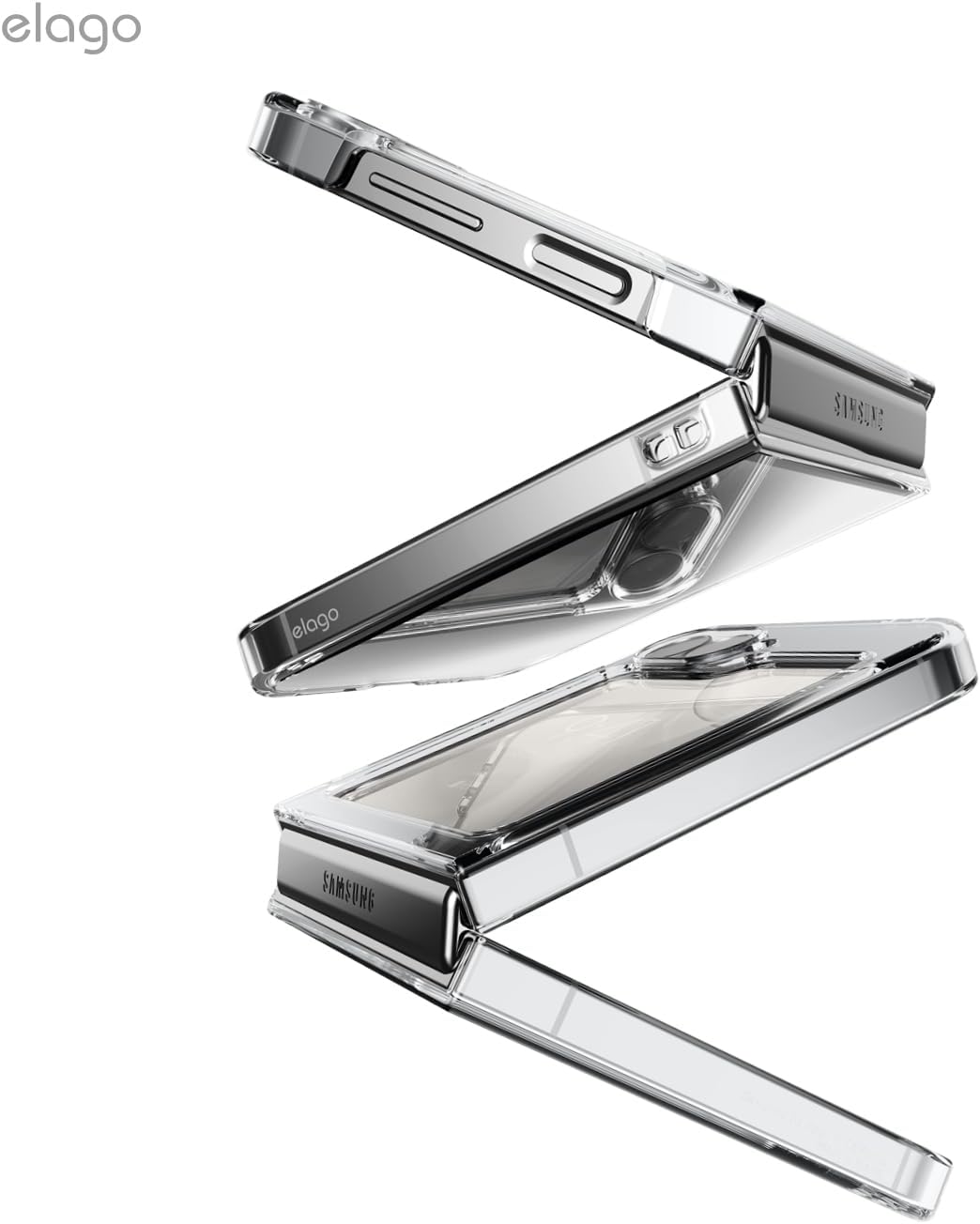 Coque galaxy z flip 6 – elago Coque Transparente Hybride Compatible avec Samsung Galaxy Z Flip 7 FE, Z Flip 6 – Découpes Précises pour Appareil Photo, Design Élégant et Léger, Coque de Protection, PC Premium, Bumper Antichoc