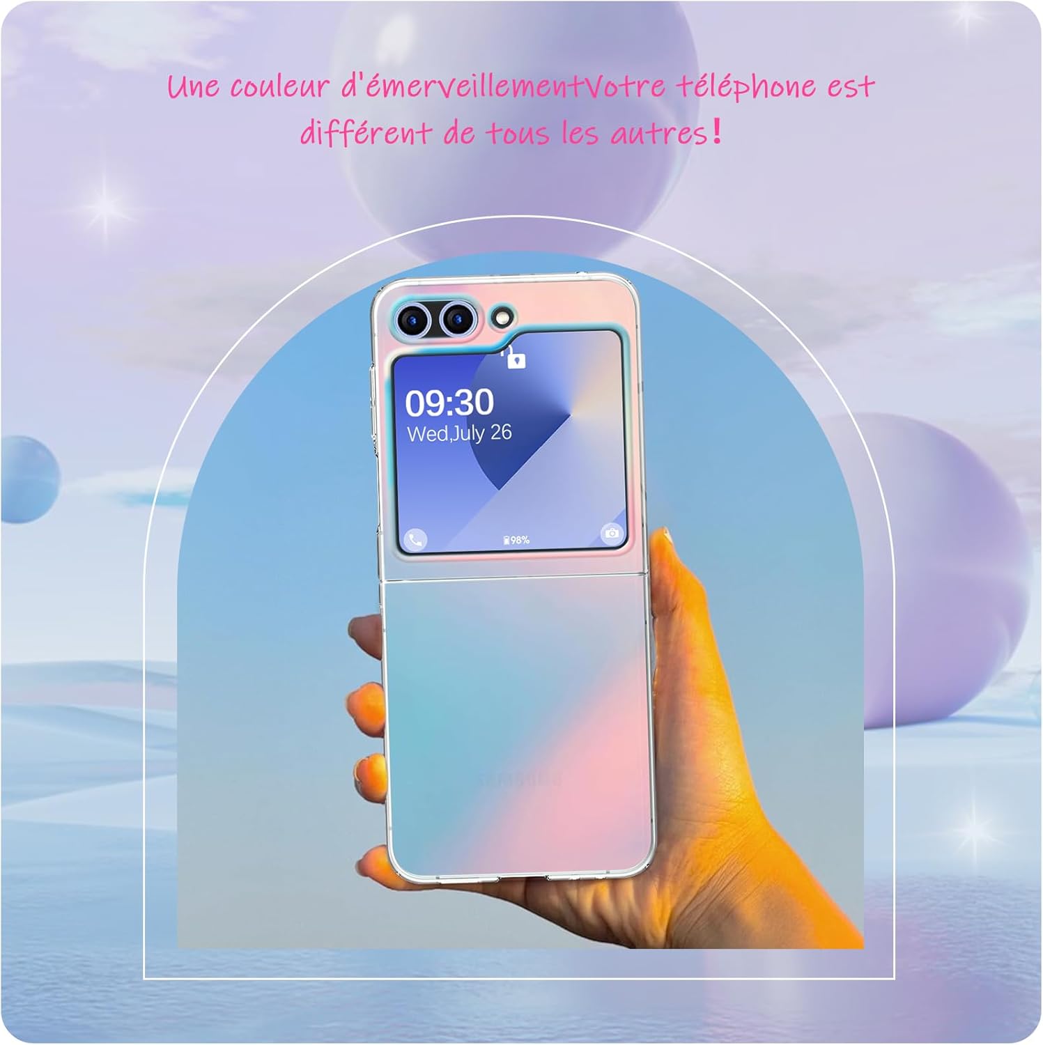 (Appareils compatibles) Cette coque de téléphone holographique irisée est parfaitement compatible avec le Samsung Galaxy Z Flip 6. Avant d’acheter une coque de téléphone portable, assurez-vous de confirmer le modèle de votre téléphone portable. Si vous avez des questions ou n’êtes pas satisfait de nos produits, n’hésitez pas à nous contacter, nous vous donnerons une réponse satisfaisante dans les 24 heures