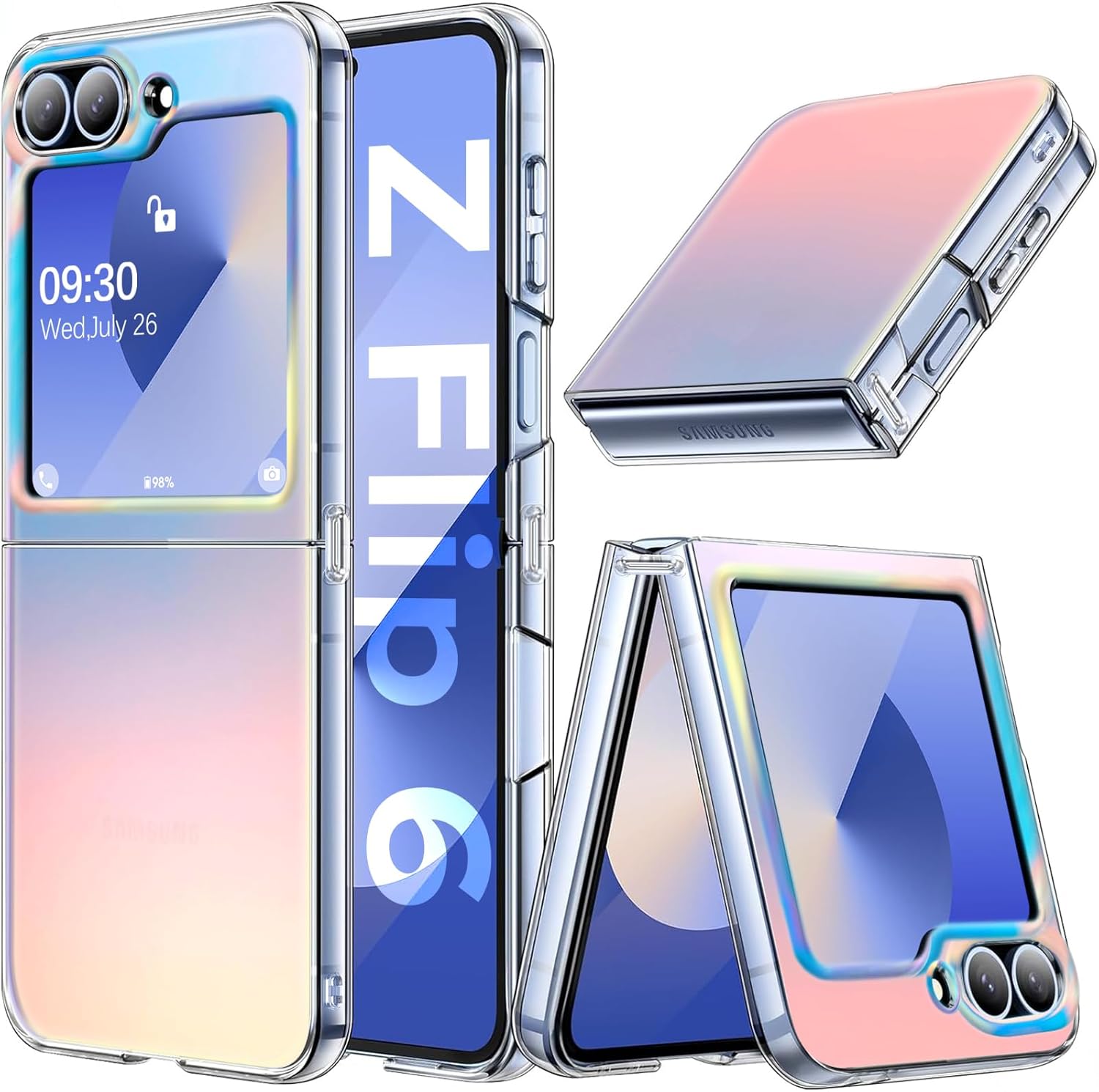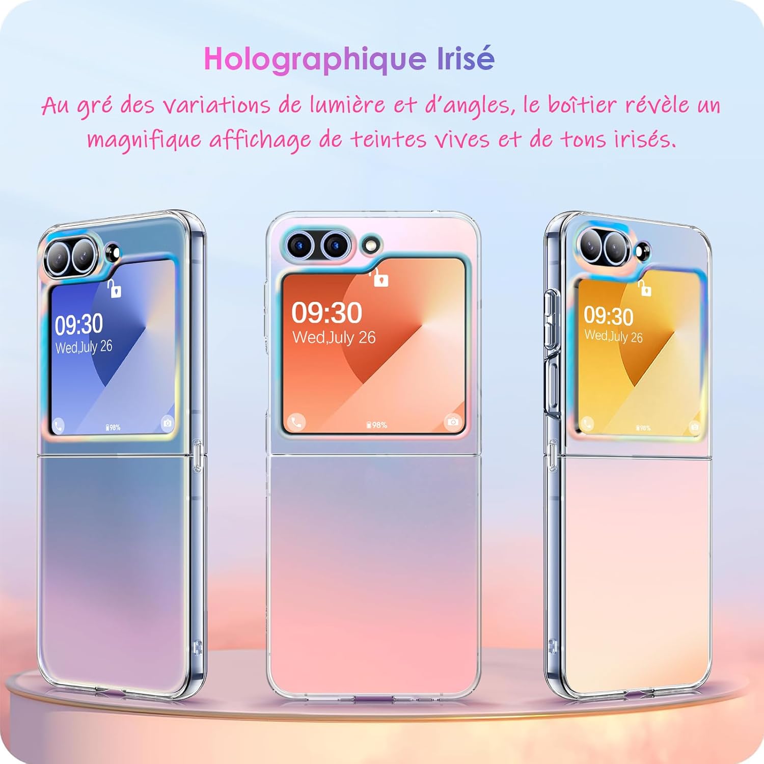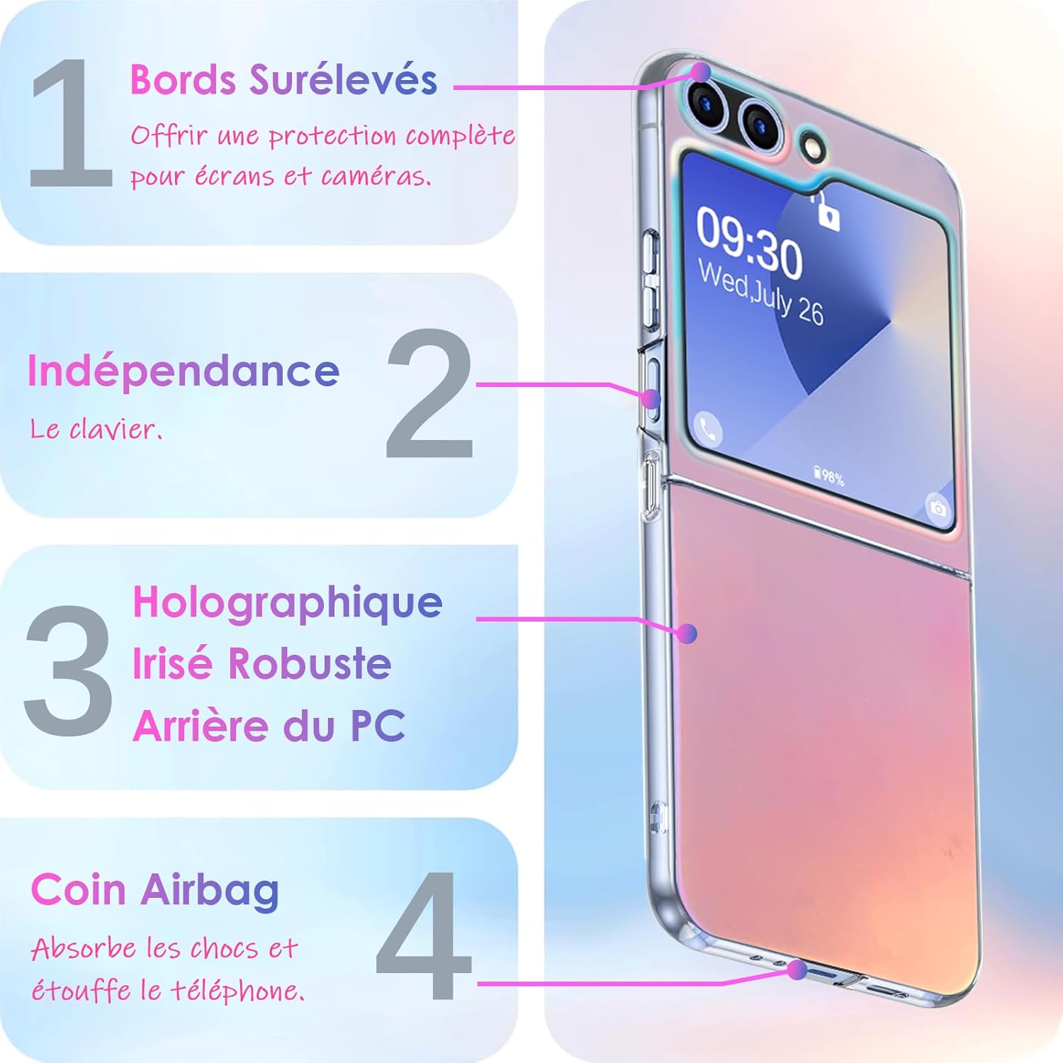 Coque galaxy z flip 6 – Layeri Coque pour Samsung Galaxy Z Flip 6 Holographique Irisé Antichoc Translucide Mat Dur PC Arrière Galaxy Z Flip 6 Coque Anti-Rayures Antichoc Protection Mate Cover pour Samsung Z Flip 6 Case