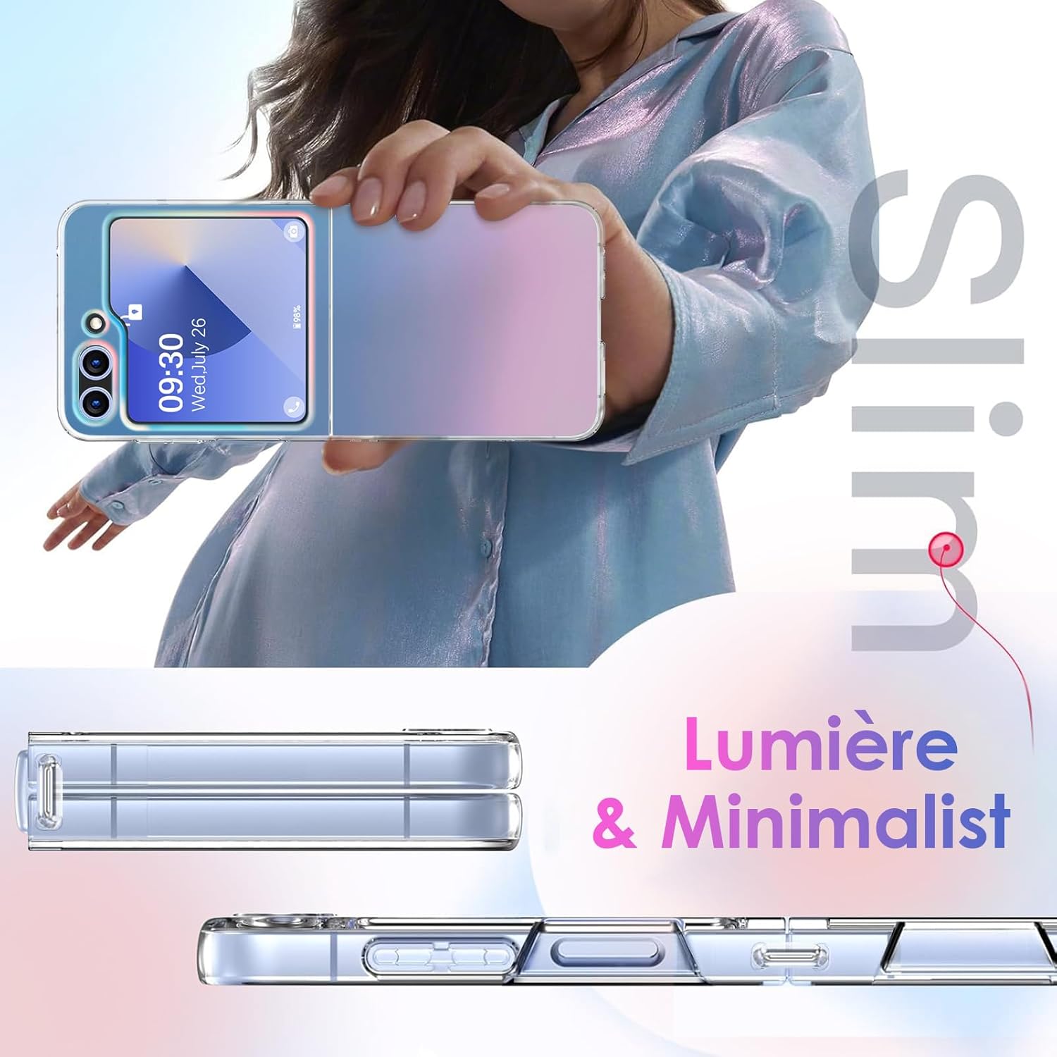 (Agréable au toucher) La coque Samsung Galaxy Z Flip 6 présente un design translucide avec de beaux effets irisés. Notre revêtement nano-oléophobe et hydrophobe sur l’ensemble du dos maintient efficacement l’appareil exempt de taches, de traces de doigts et de rayures, et vous procure une sensation soyeuse au toucher.