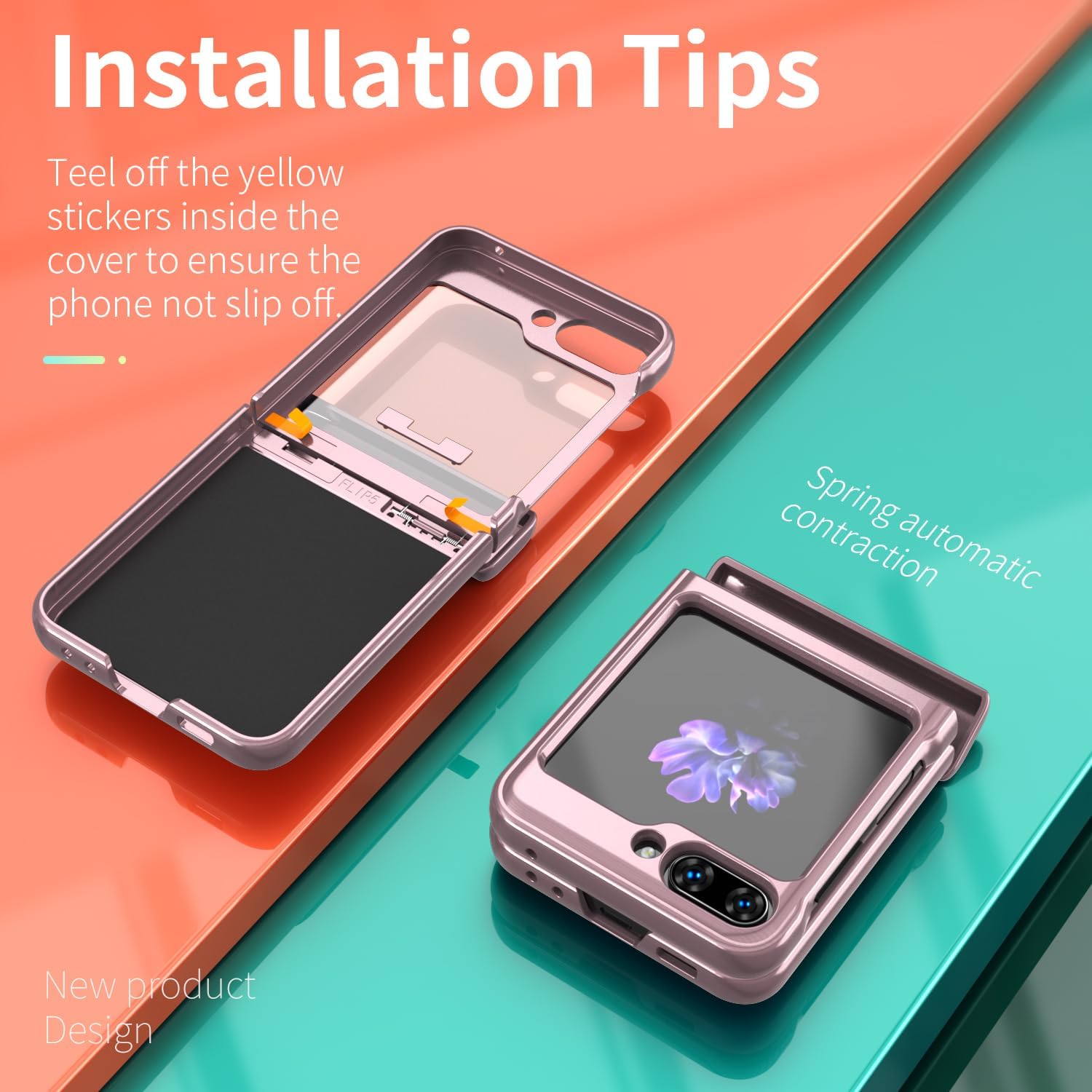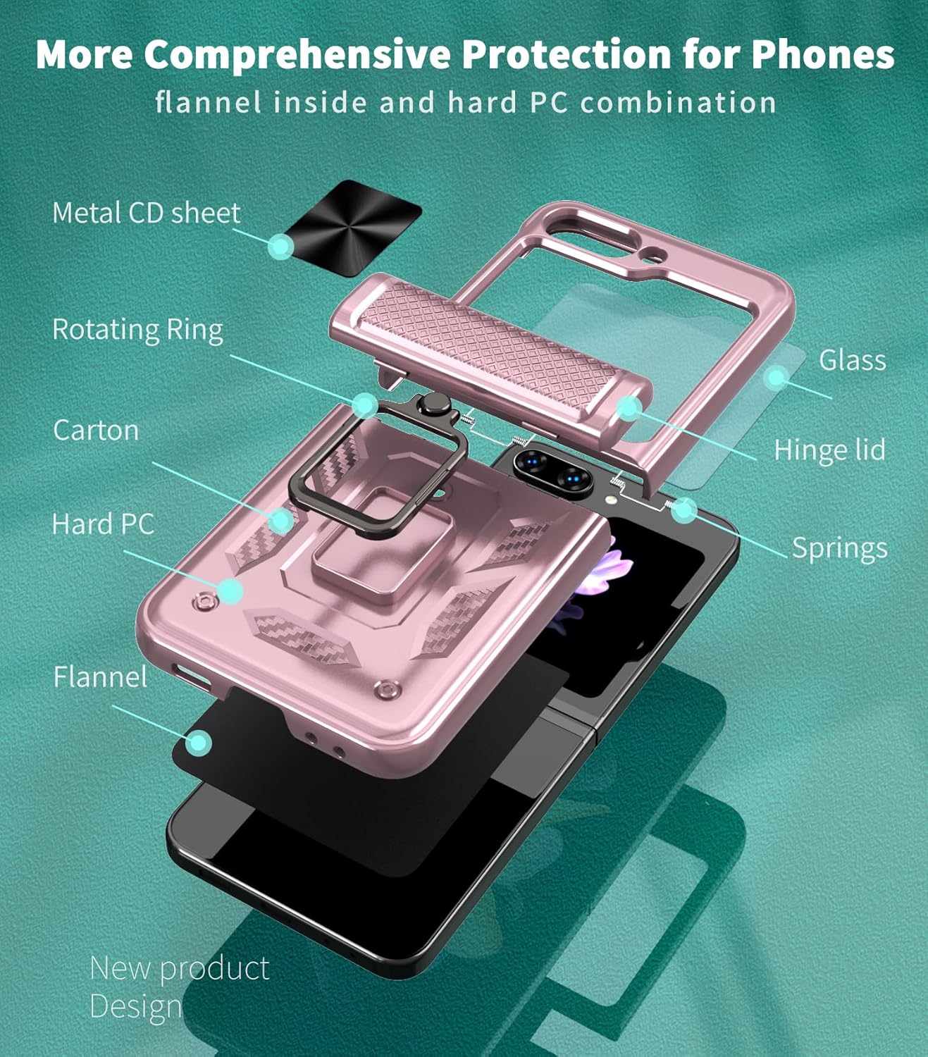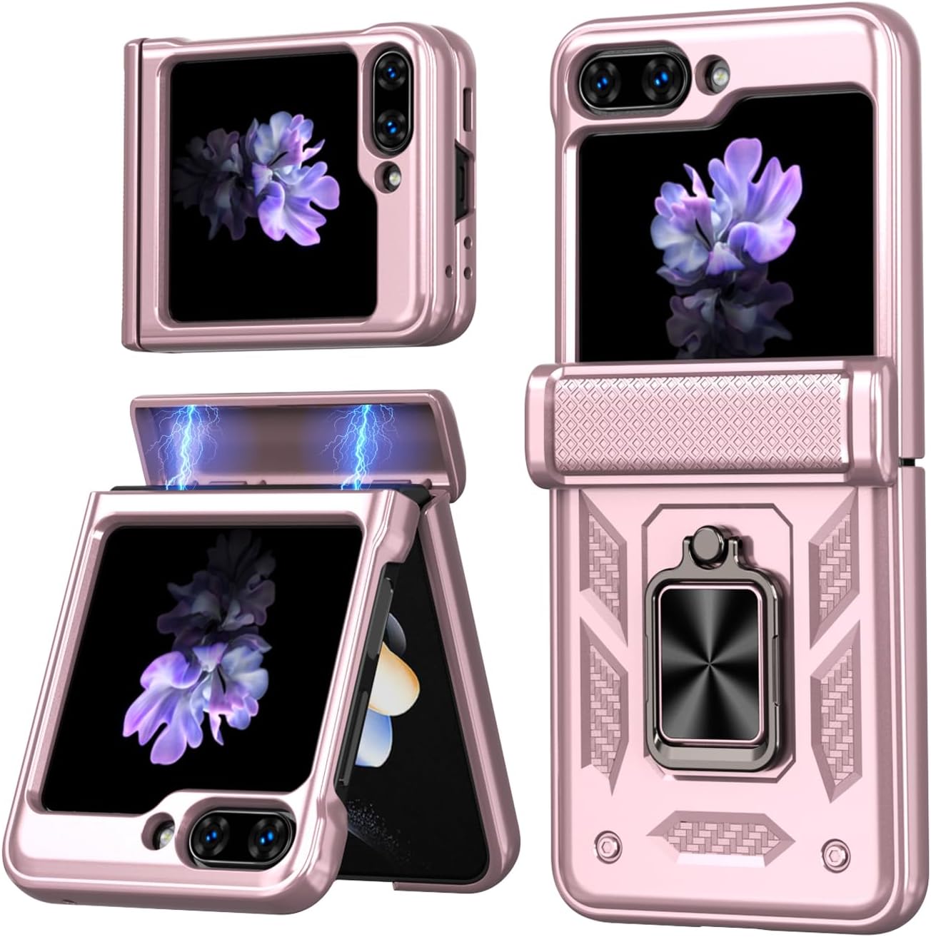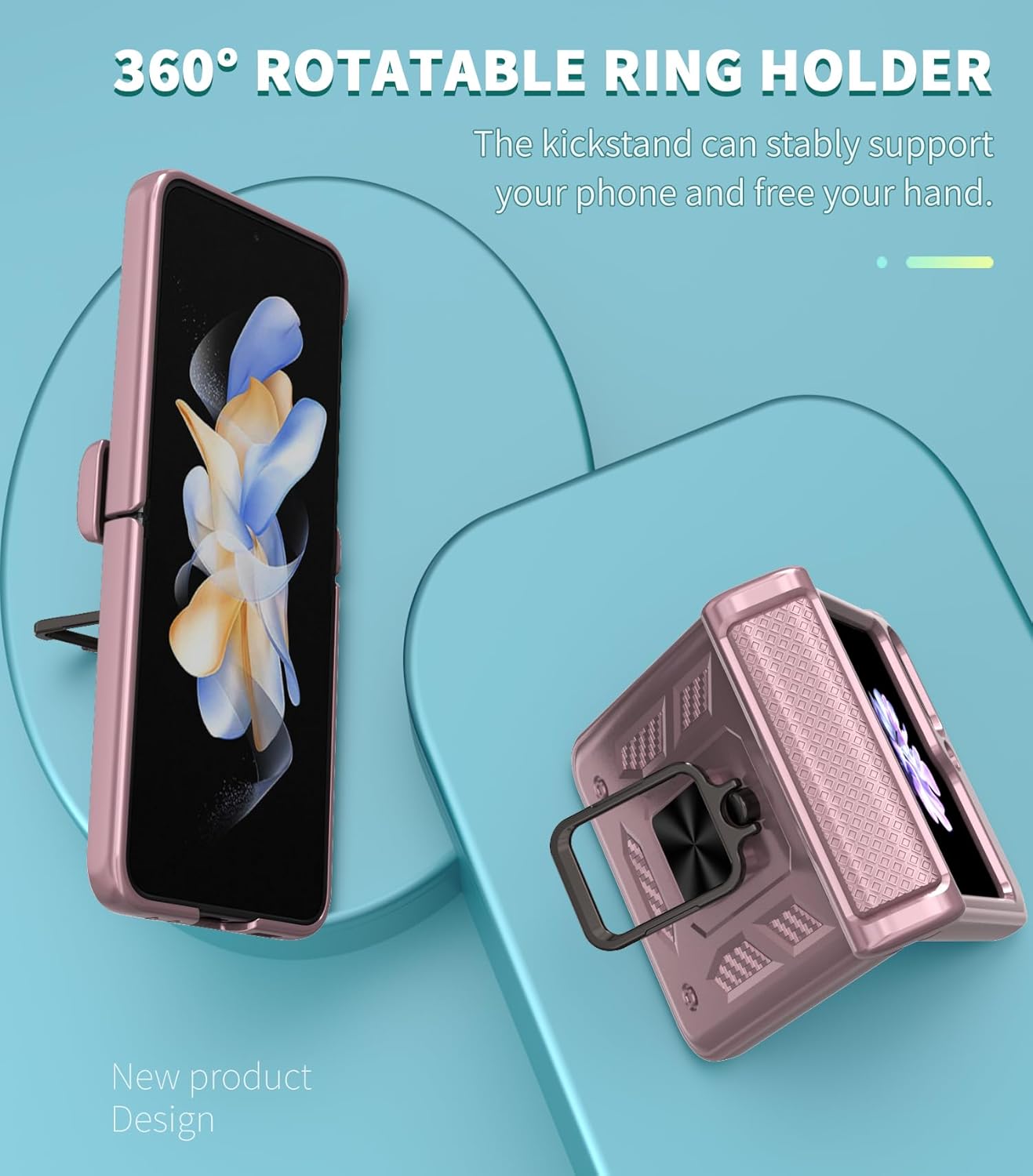Coque galaxy z flip 6 – LIUKM Coque pour Samsung Galaxy Z Flip 6, Support Rotatif à 360° et Protecteur d’appareil Photo Coulissant, Anti-Choc, Cache Charnière – Or Rose