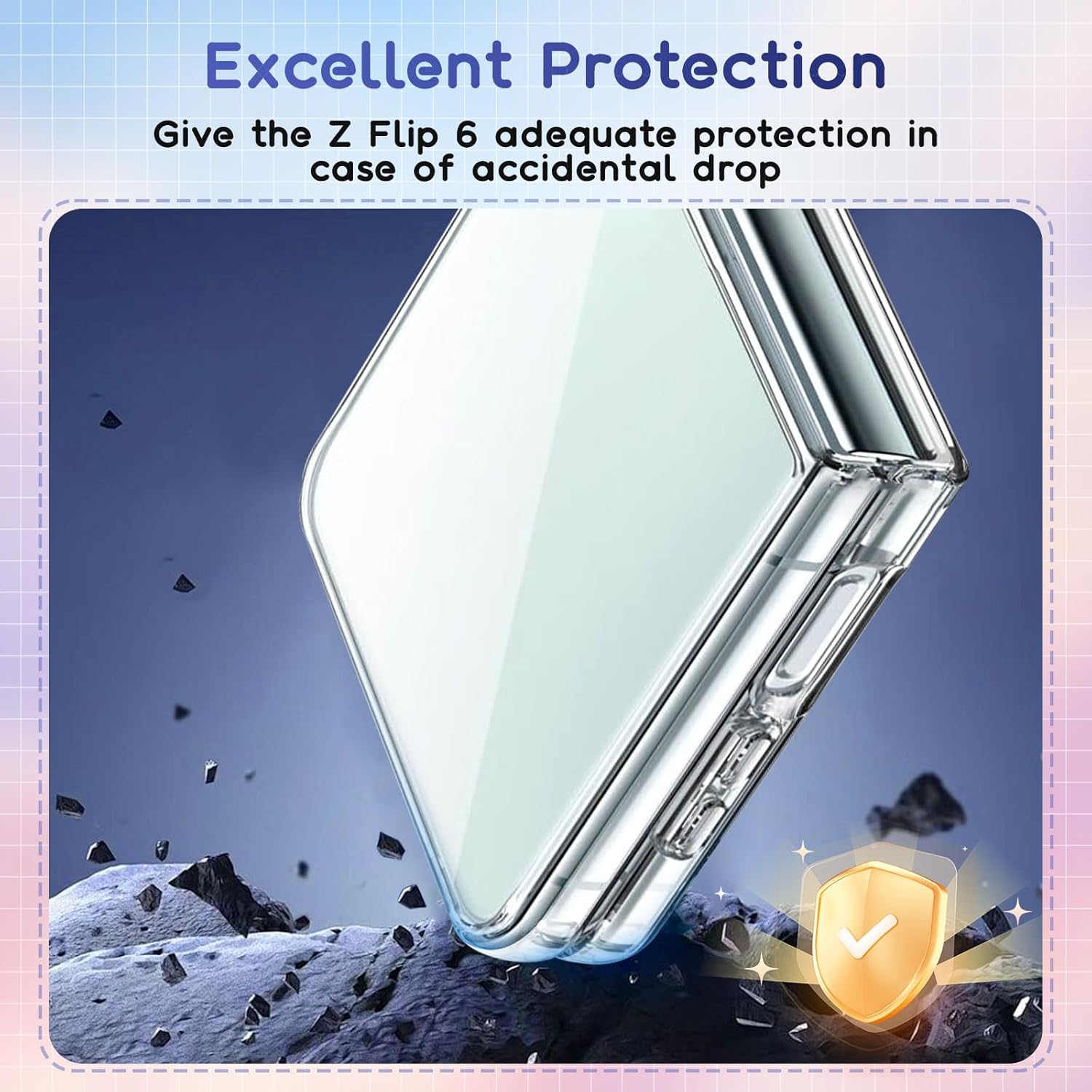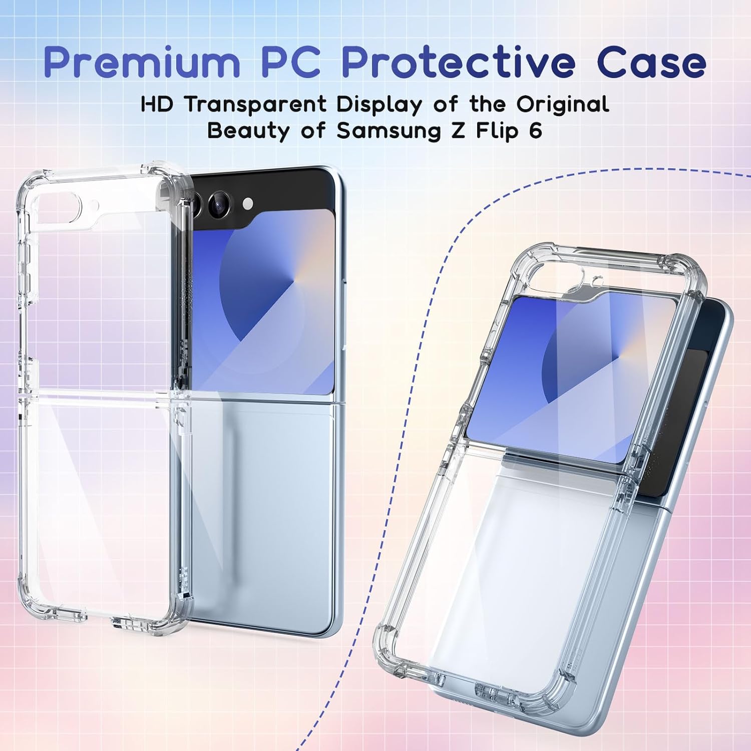 【Coque transparente Z Flip 6】 La coque Samsung Z Flip 6 a été conçue dans une couleur transparente qui n’obscurcira pas l’aspect original de votre téléphone. Il est limpide et restaure entièrement la couleur d’origine du téléphone. La coque Galaxy Z Flip 6 est également fine et légère, vous permettant d’avoir le téléphone à l’état pur.