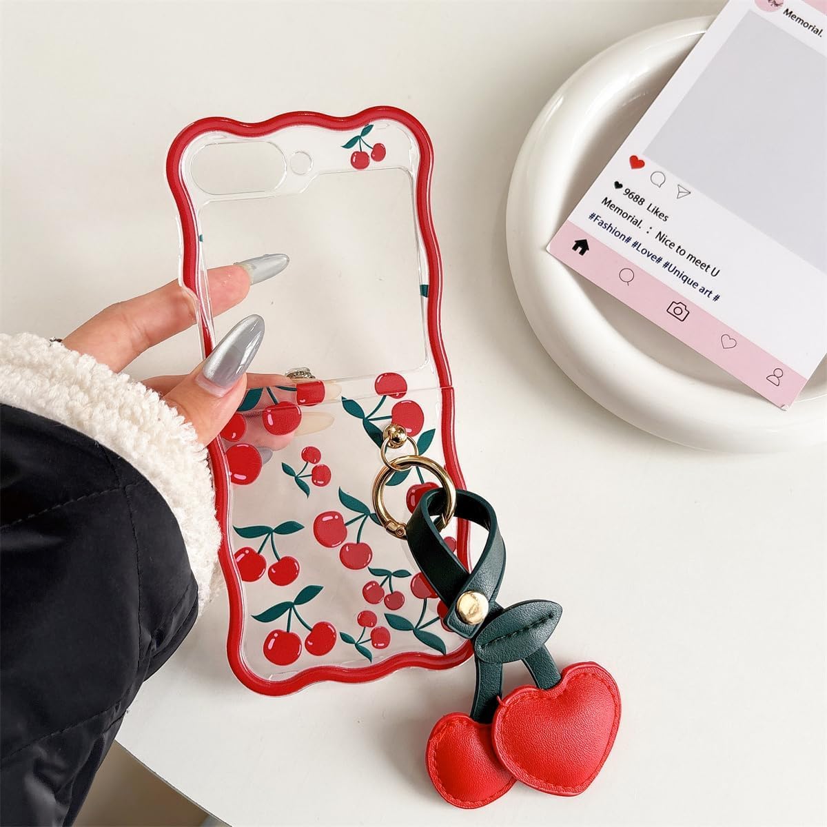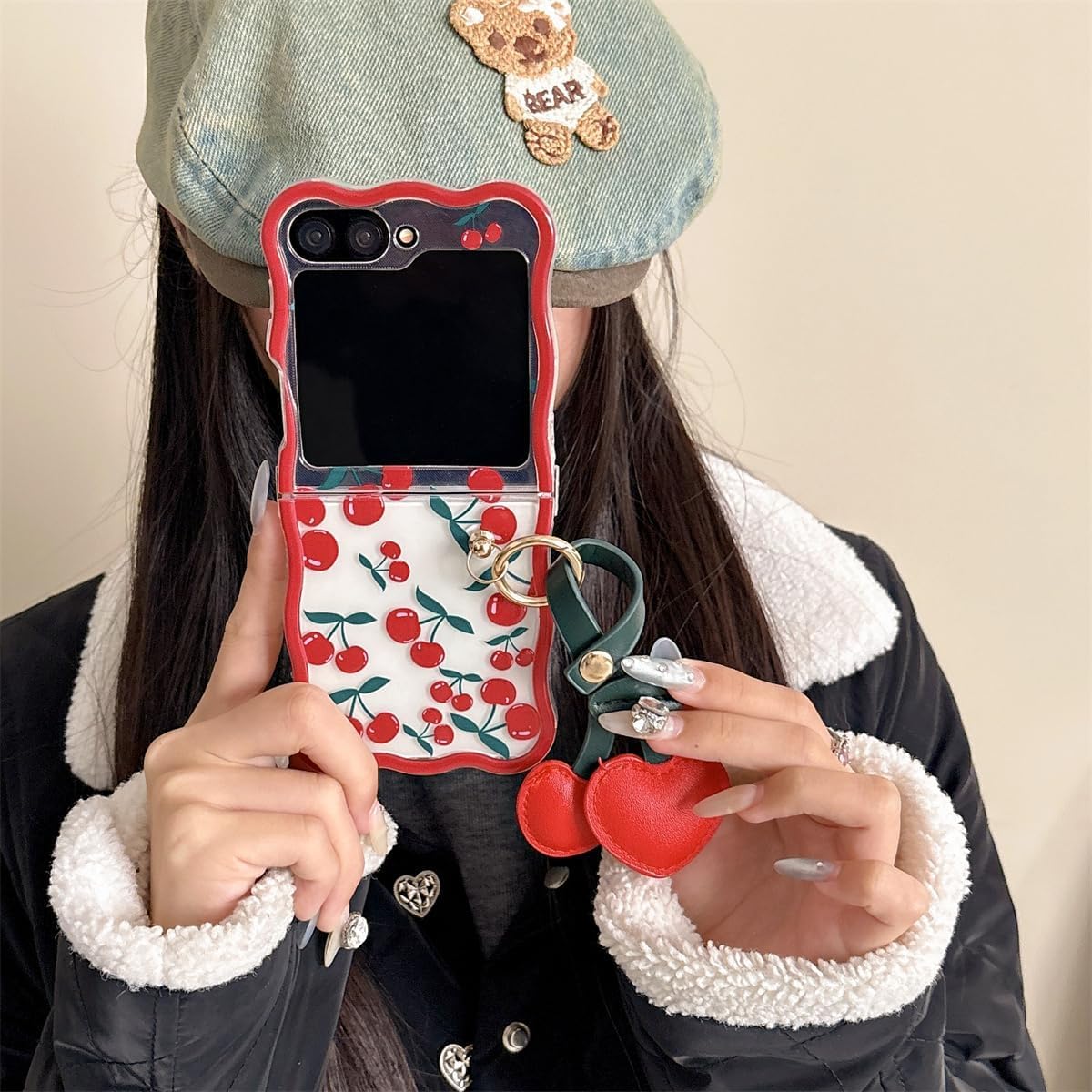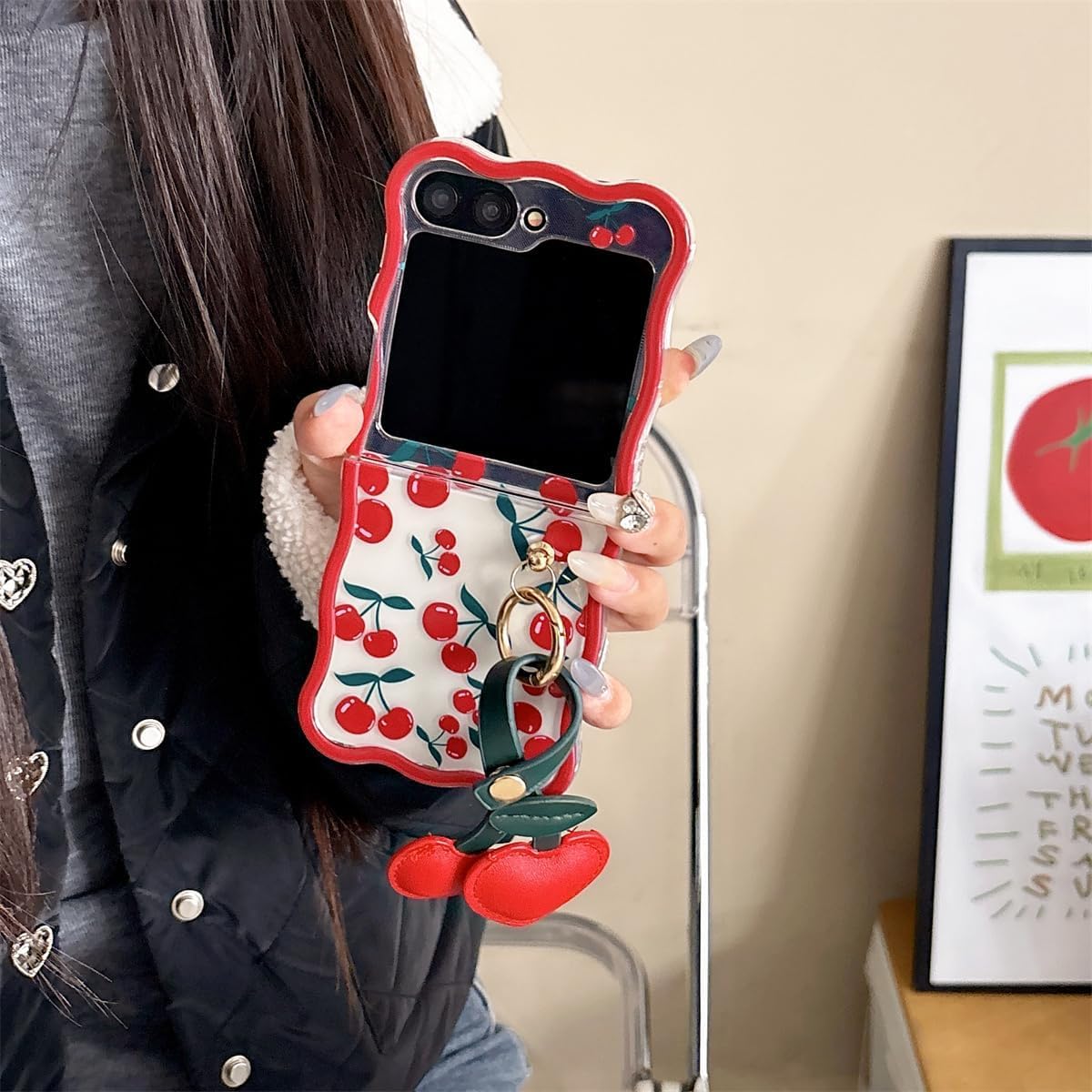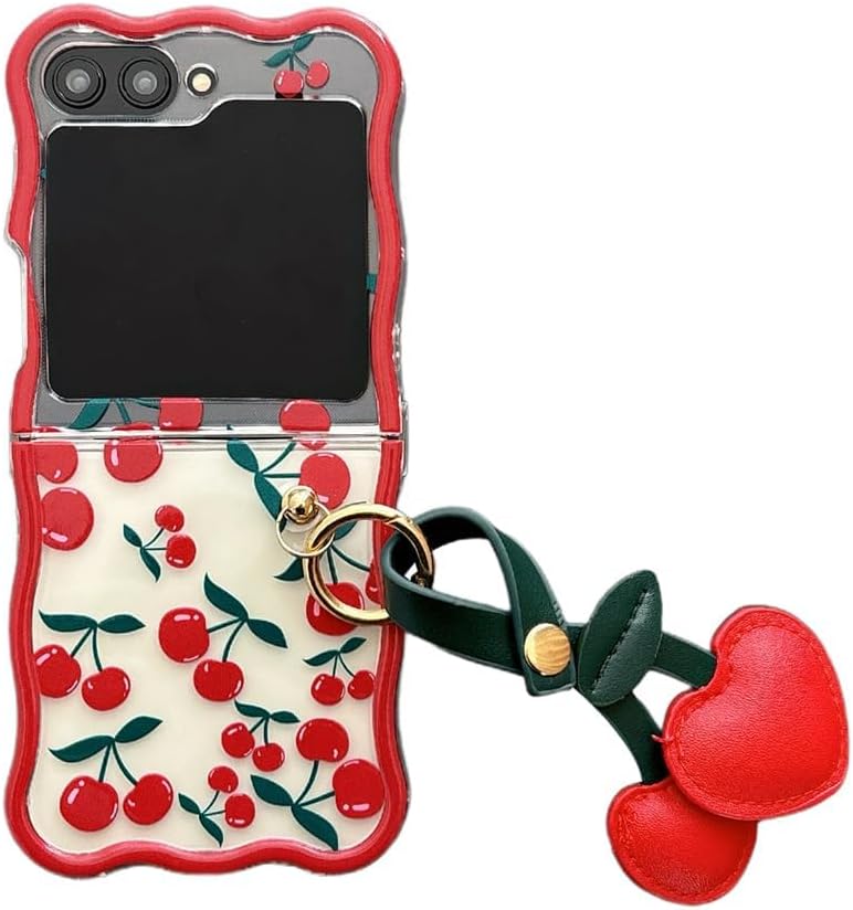 Coque galaxy z flip 6 – XINVHUA Coque pour Samsung Galaxy Z Flip 5/6, motif cerise, étui pliable transparent avec porte-clés pour filles et femmes, jolie coque pour Galaxy Z Flip 6 (Z Flip 6)