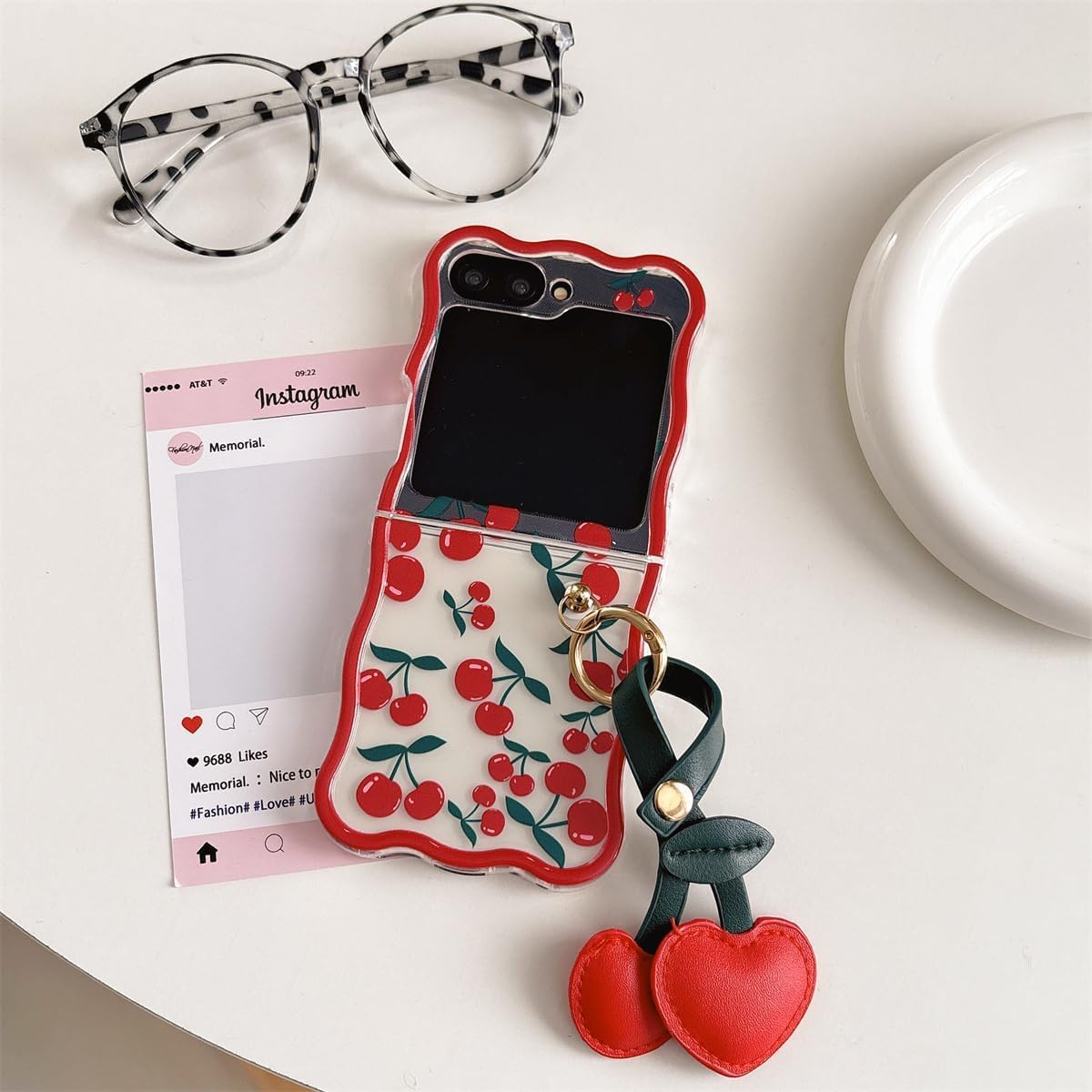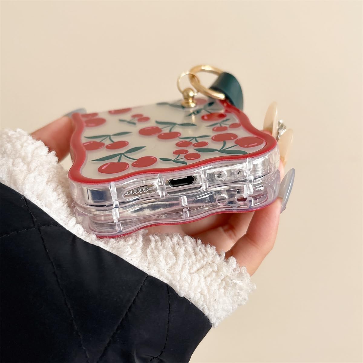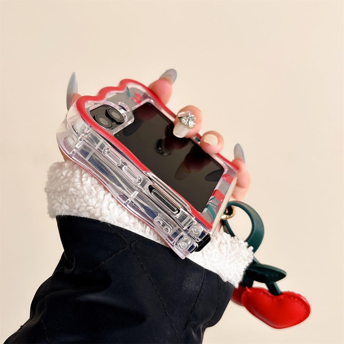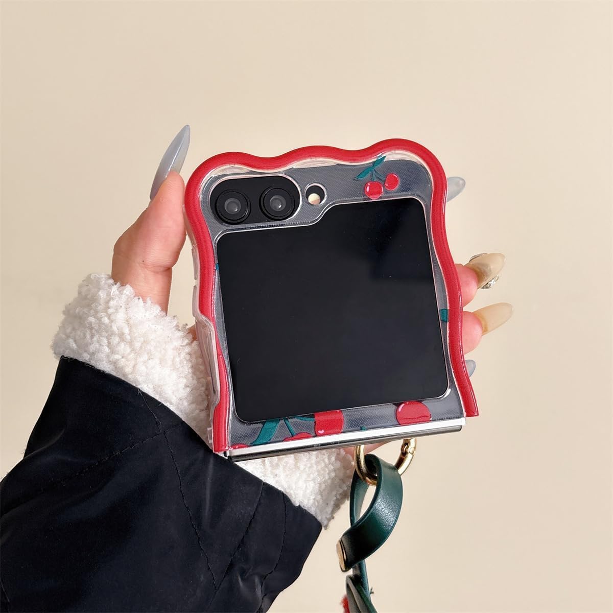 Coque galaxy z flip 6 – XINVHUA Coque pour Samsung Galaxy Z Flip 5/6, motif cerise, étui pliable transparent avec porte-clés pour filles et femmes, jolie coque pour Galaxy Z Flip 6 (Z Flip 6)