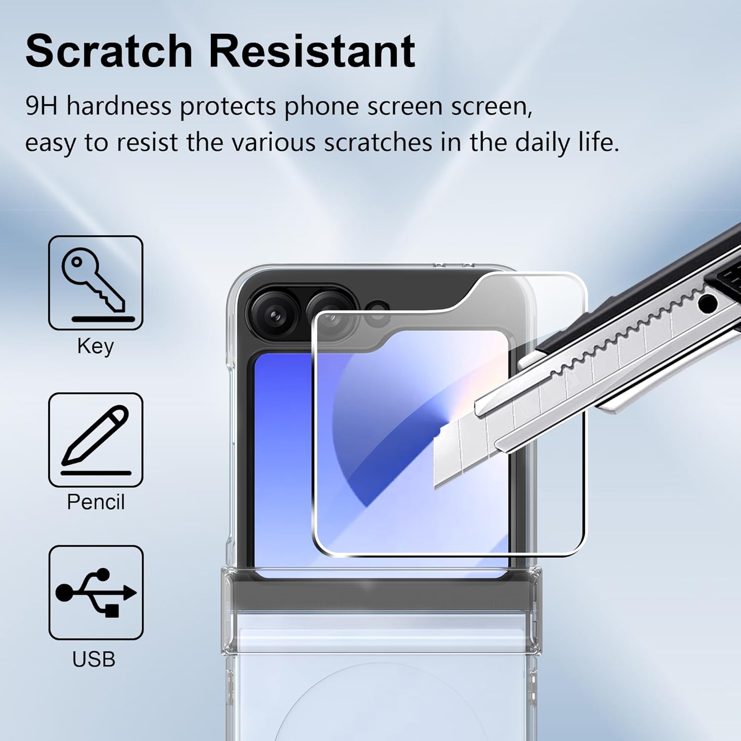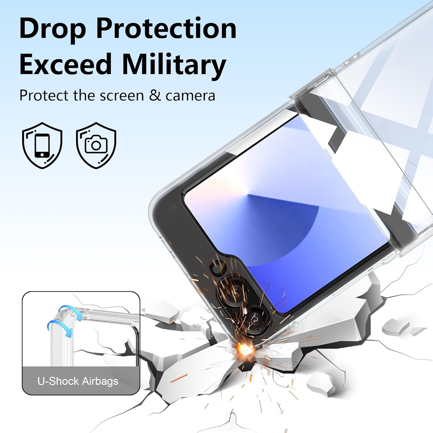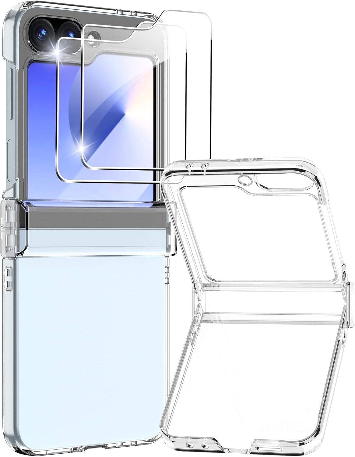 (Haute protection 3 en 1) Uniquement compatible avec Samsung Galaxy Z Flip 6/Samsung Galaxy Z Flip 7 FE. Vous recevrez une coque de protection transparente, un lot de 2 protecteurs d’écran avant en verre trempé, offrant à votre téléphone une double protection. Installation facile avec les kits d’accessoires inclus