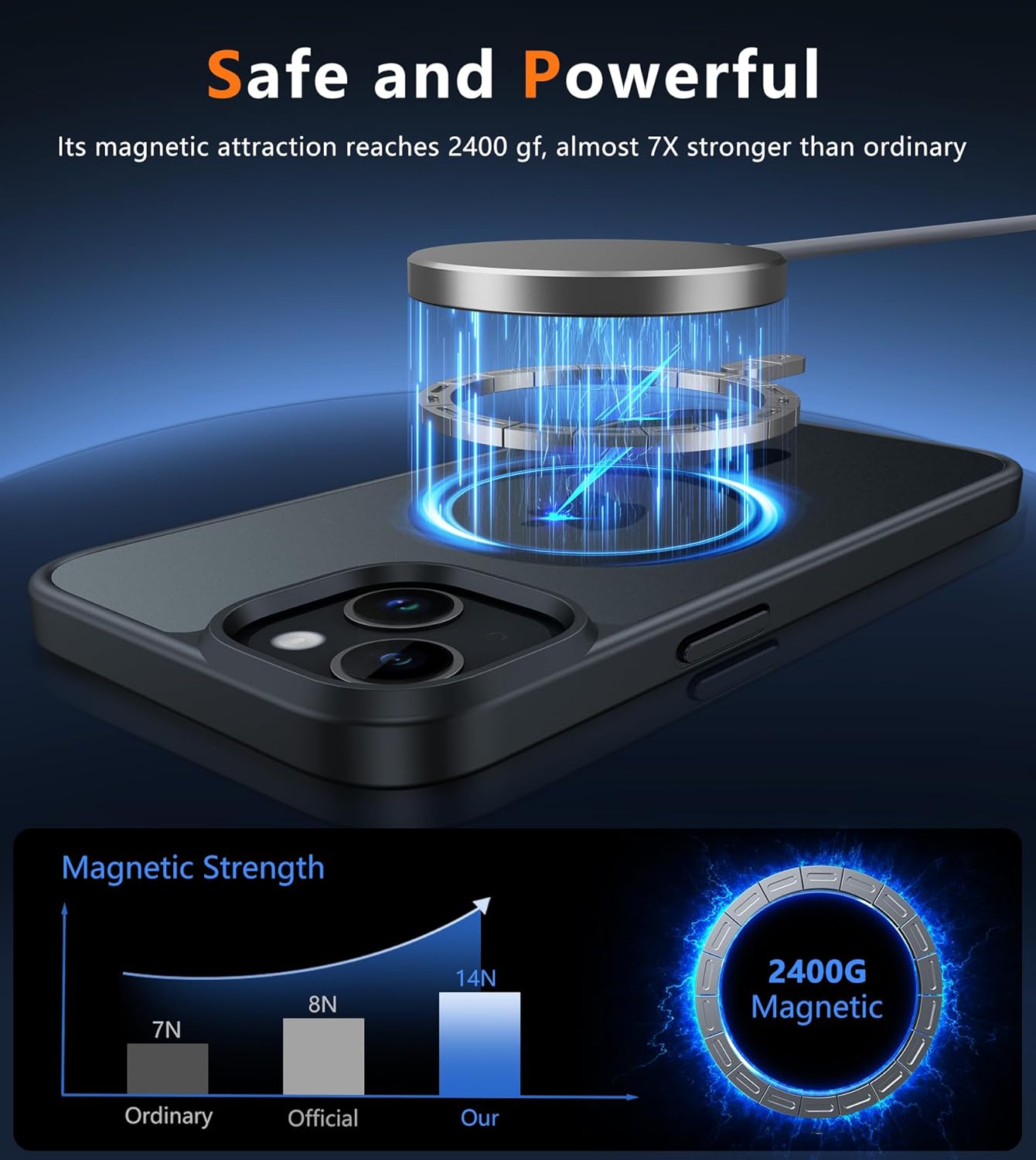 Forte force d’attraction magnétique : fixez-le fermement au chargeur magnétiquement. Une fois cliqué, ne glisse jamais. Compatible avec tous les accessoires magnétiques, tels que le portefeuille, le porte-bague et la banque d’alimentation