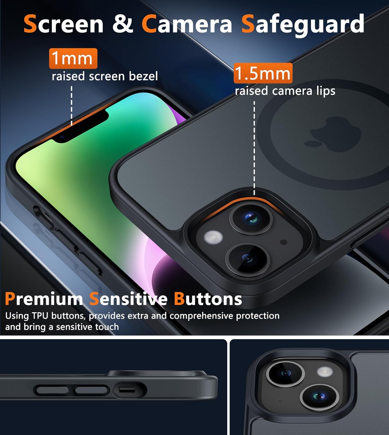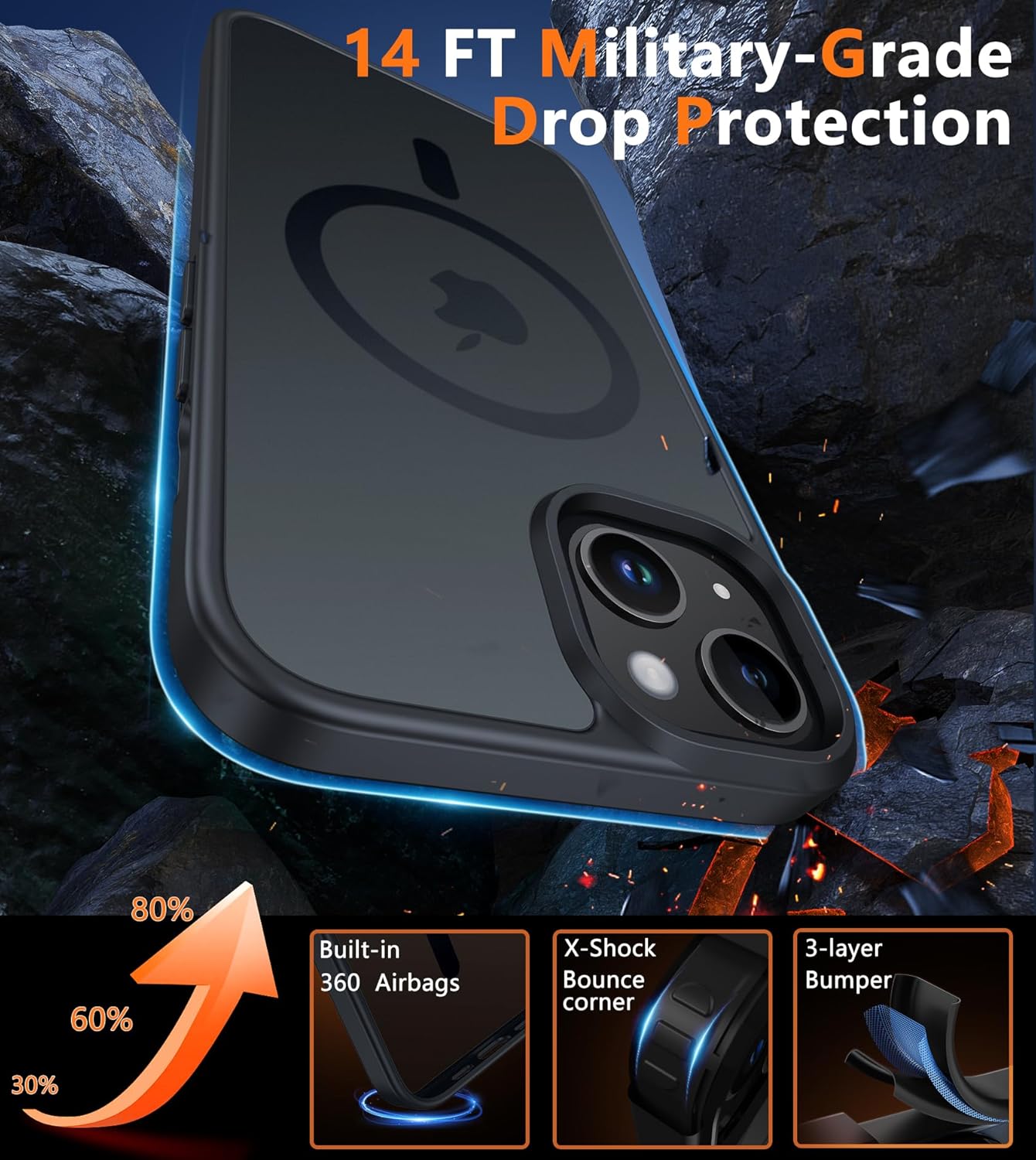 Protection militaire : notre coque de téléphone pour iPhone 13 est composée de PC rigide et de pare-chocs en TPU flexible antichoc autour du bord et dispose de 4 airbags intégrés dans les coins pour absorber les chocs, ce qui peut protéger votre téléphone des chutes accidentelles, des chocs et des rayures.