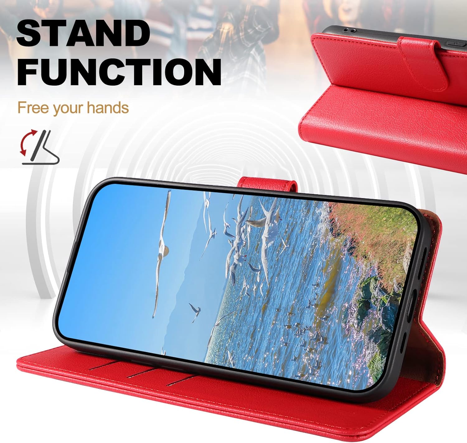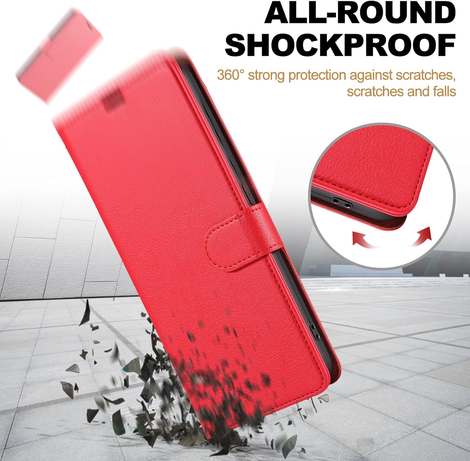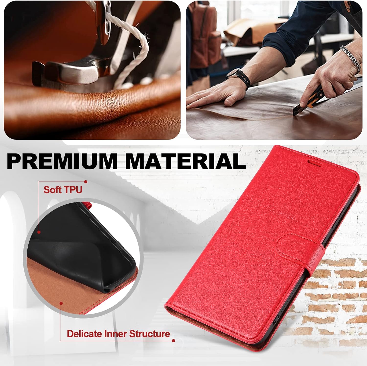 Matériau de haute qualité : fabriqué en cuir synthétique PU de haute qualité et silicone TPU doux et lisse. Le PU de haute qualité a un toucher délicat et une forte résistance à la traction, il protège votre smartphone des chocs et des chutes dans toutes les directions.