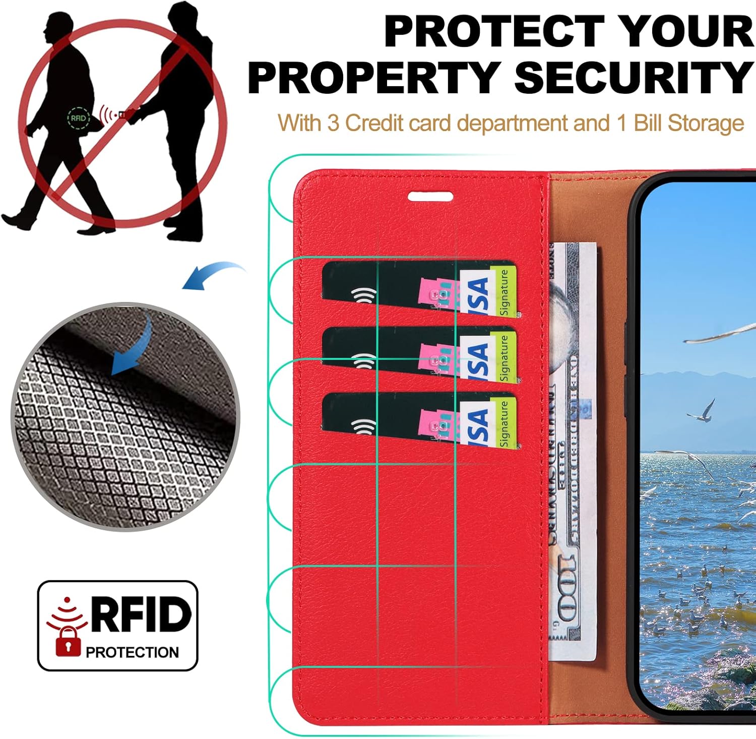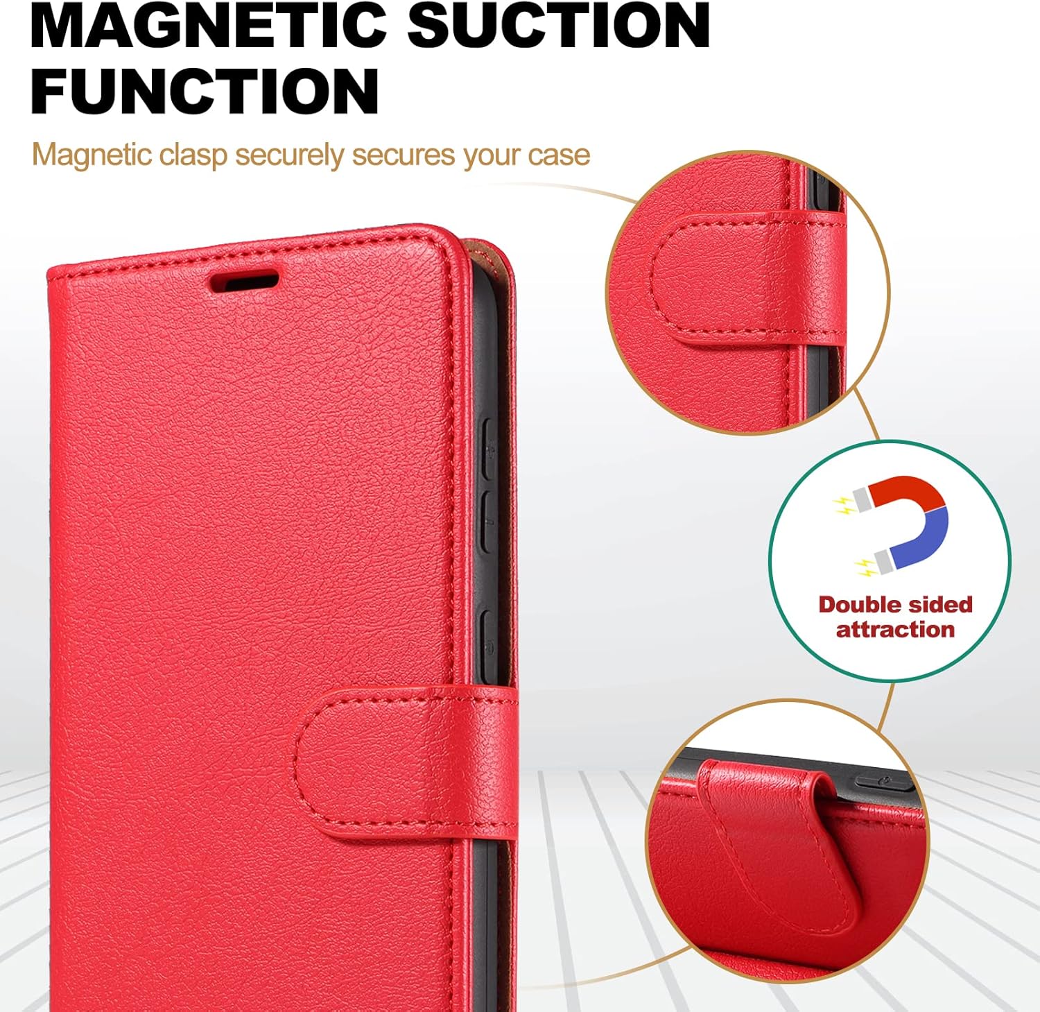 Restez en sécurité : le fermoir magnétique plus puissant maintient votre téléphone et vos cartes en position fermée. Ne vous inquiétez pas, les cartes et l’argent tomberont. Gardez vos affaires en sécurité.