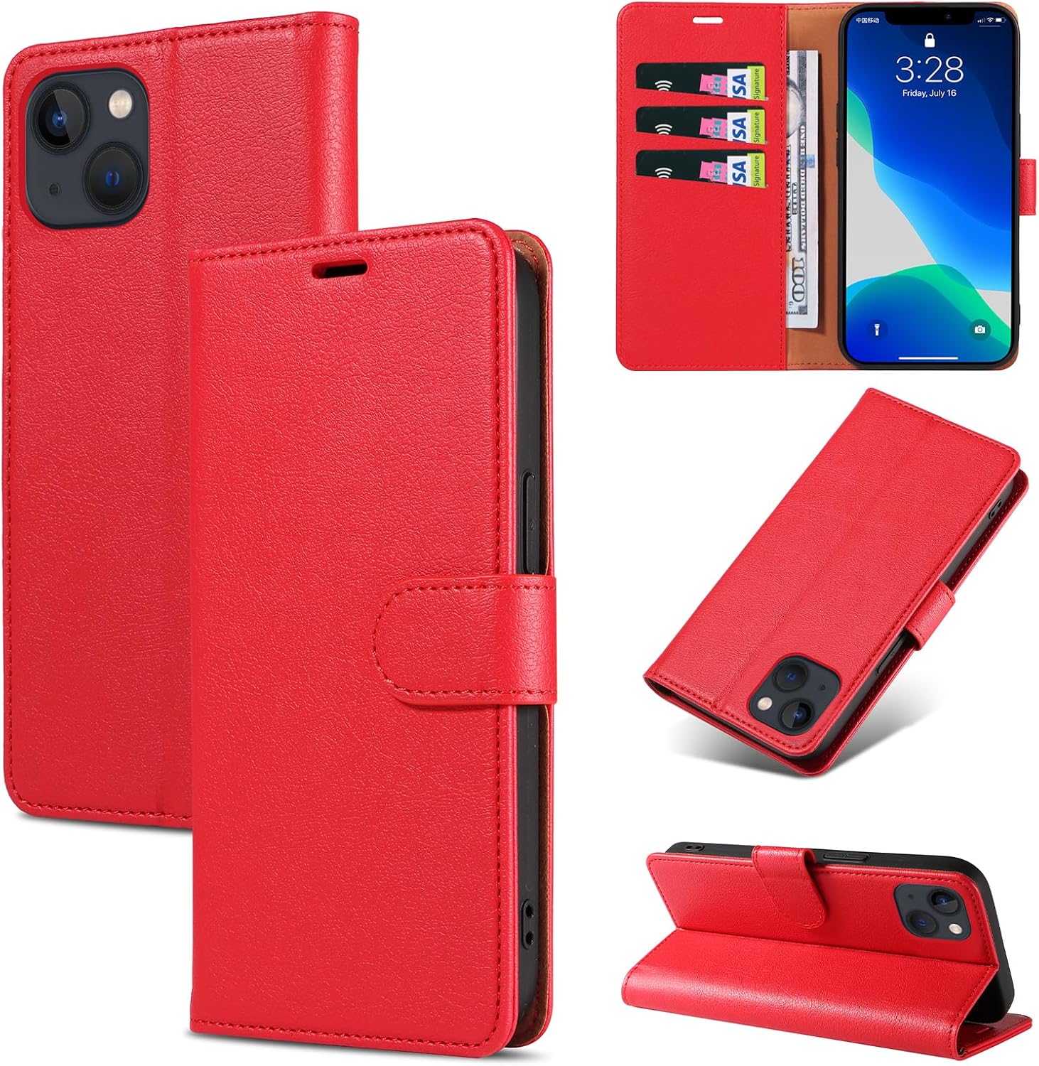 Compatibilité : étui en cuir PU compatible avec iPhone 13. Veuillez vérifier votre modèle de téléphone portable avant de l’acheter.