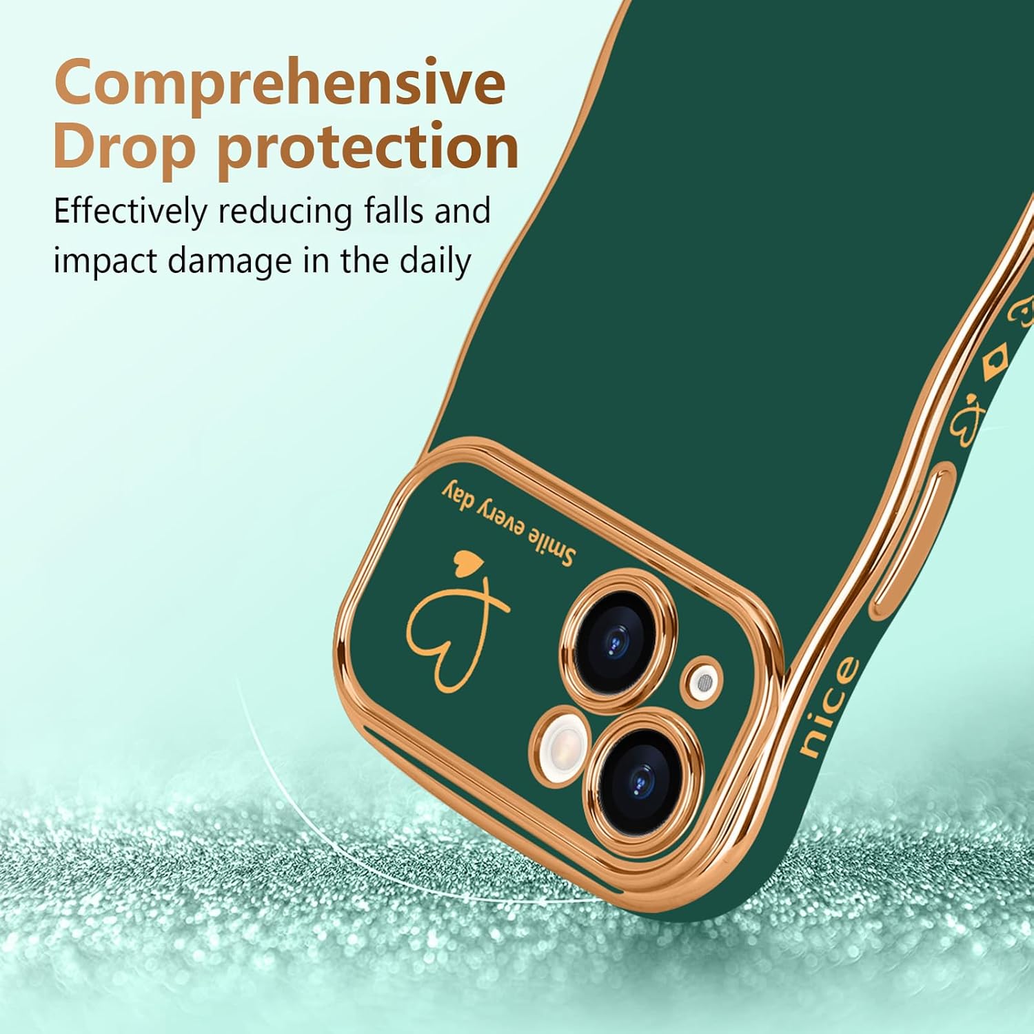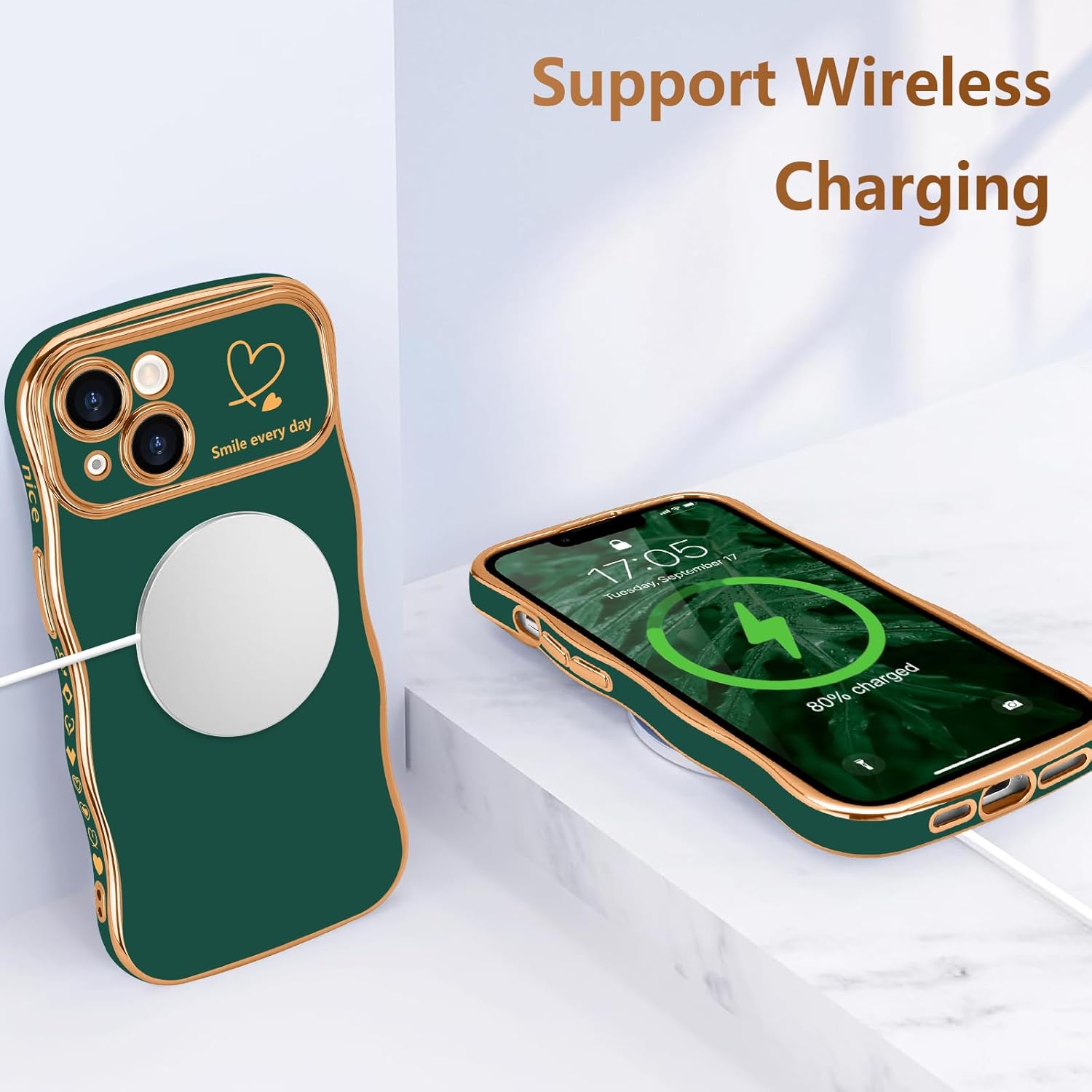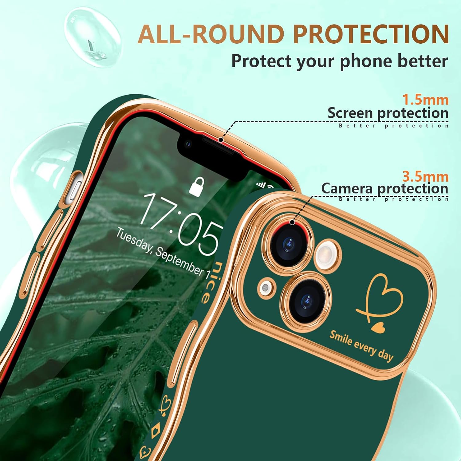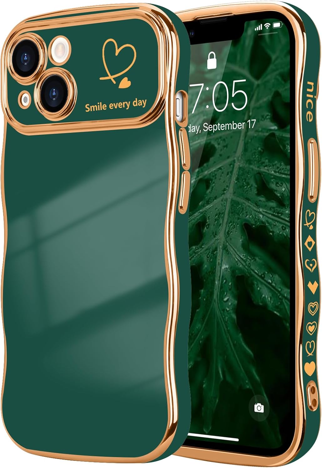 Compatibilité : l’élégante coque en forme de cœur colorée avec vagues galvanisées est spécialement conçue pour l’iPhone 13. Prend en charge le chargement sans fil.