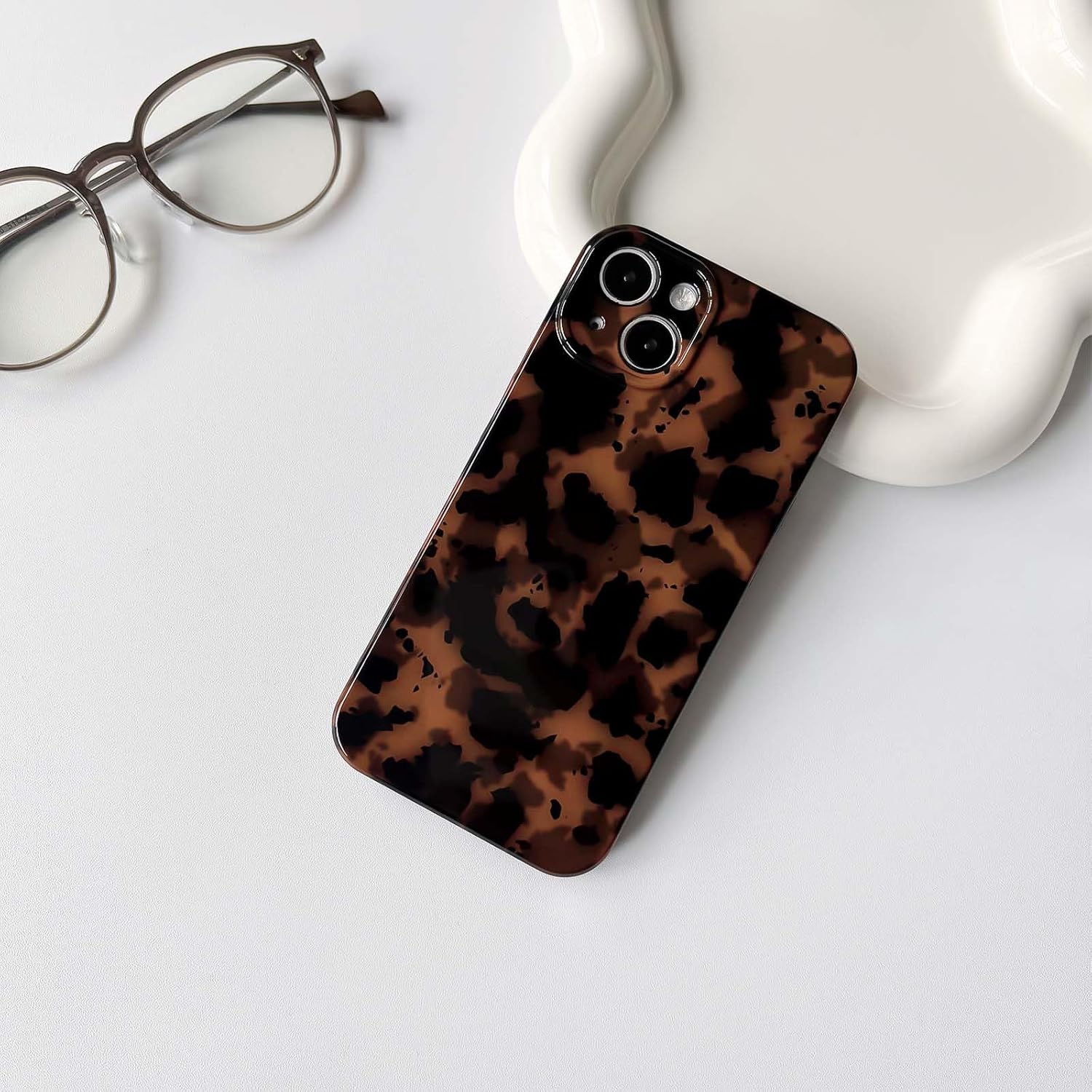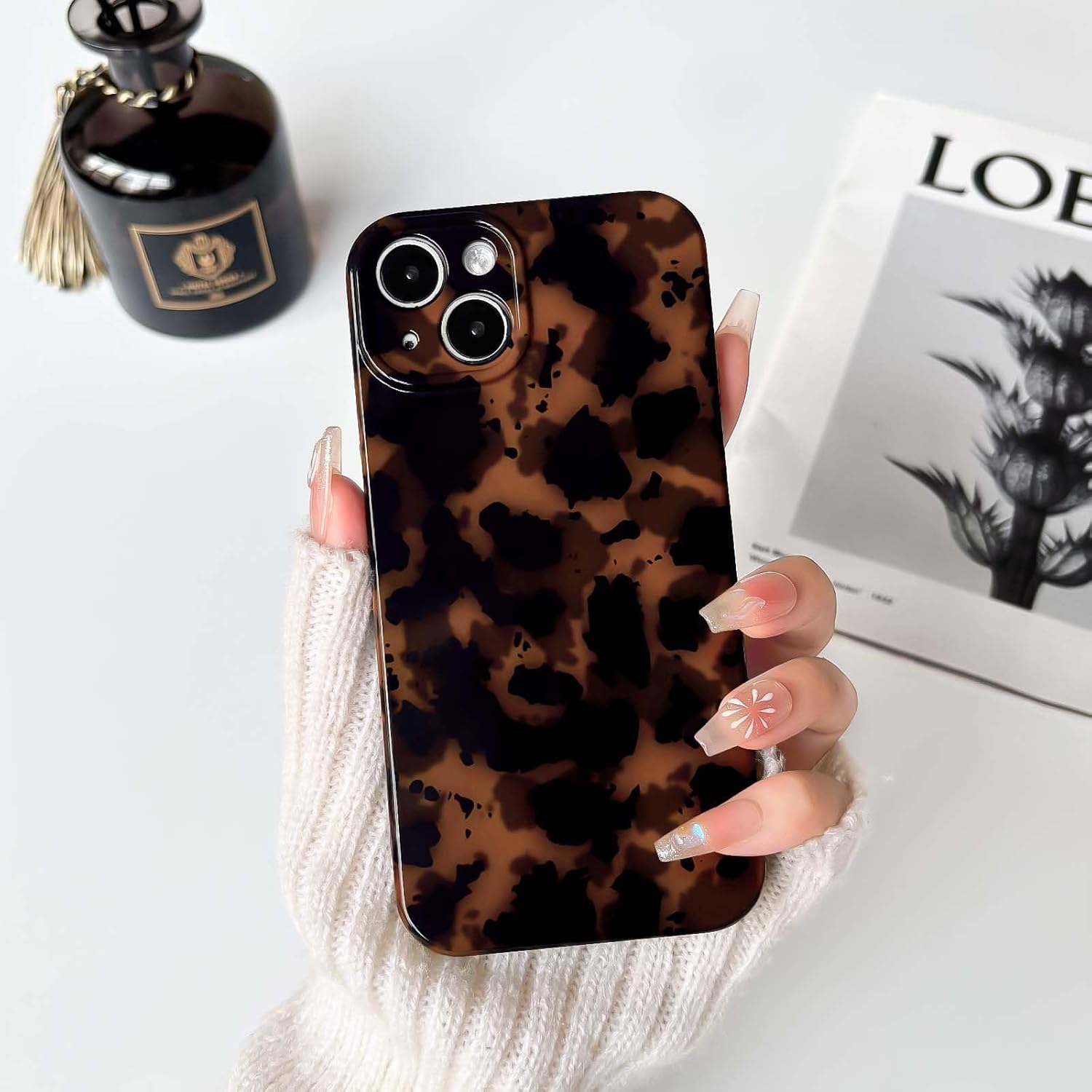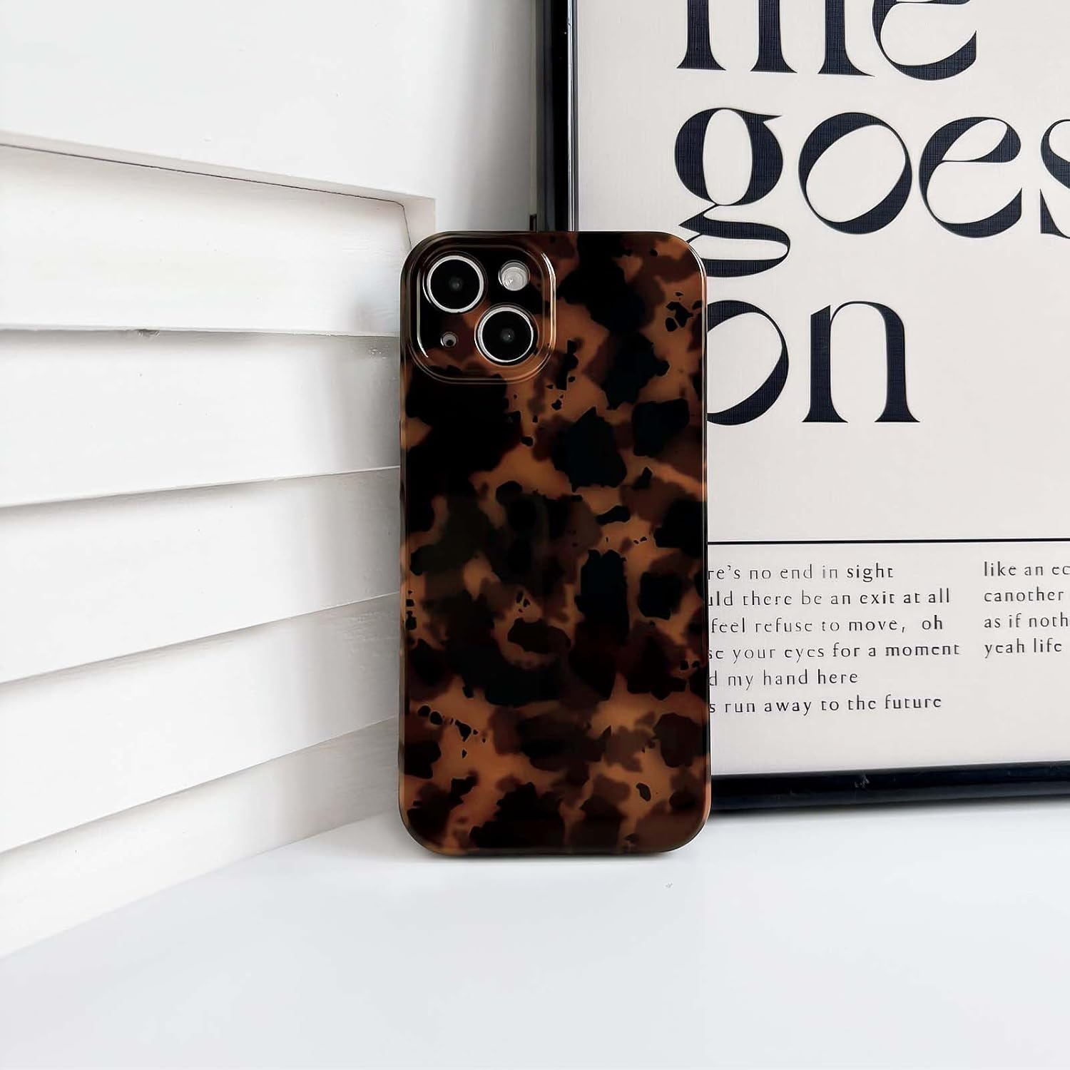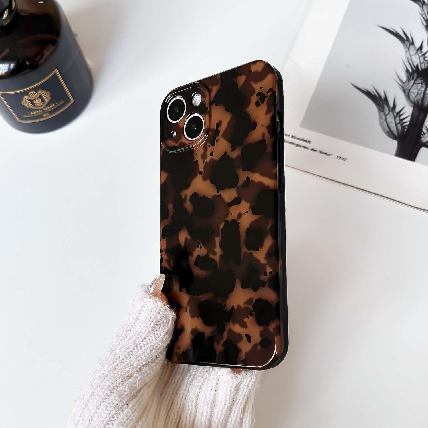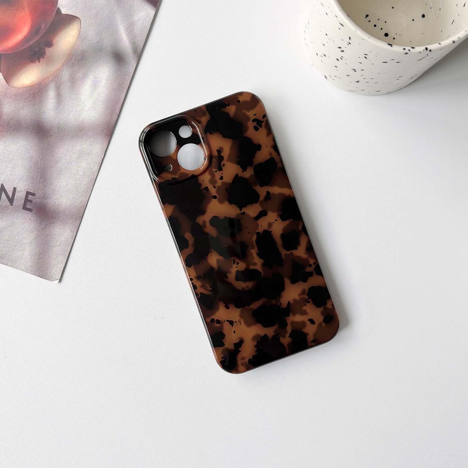 coque iphone 13 – NITITOP Coque pour iPhone 13, joli motif léopard, tortue, esthétique ambre, pour femmes, filles et hommes, coque de protection en TPU souple – Noir