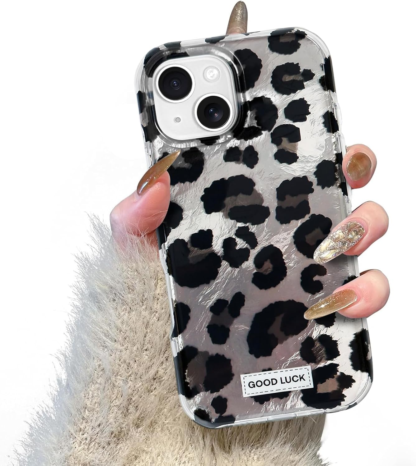 coque iphone 13 - Reownest Coque pour iPhone 13/14, joli motif léopard vintage noir argent, TPU souple brillant, résistant aux chocs, étanche, coque de protection pour femmes et filles – Noir argenté