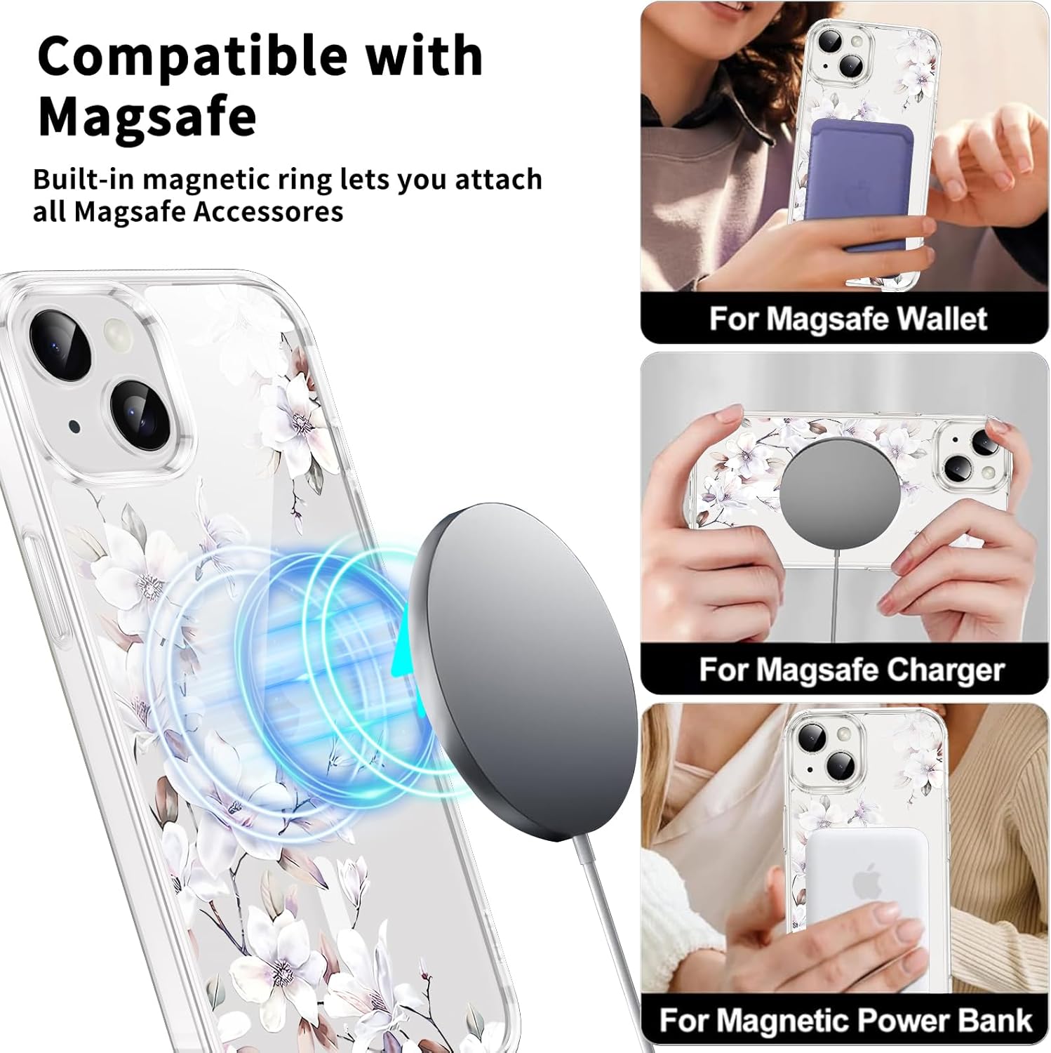 Adsorption magnétique : la coque transparente magnétique pour iPhone 14/iPhone 13 se compose d’aimants parfaitement alignés qui peuvent prendre en charge tous les accessoires Mag Safe et le chargement sans fil, obtenant la charge la plus rapide et la plus stable possible, évitant toute interférence de signal.