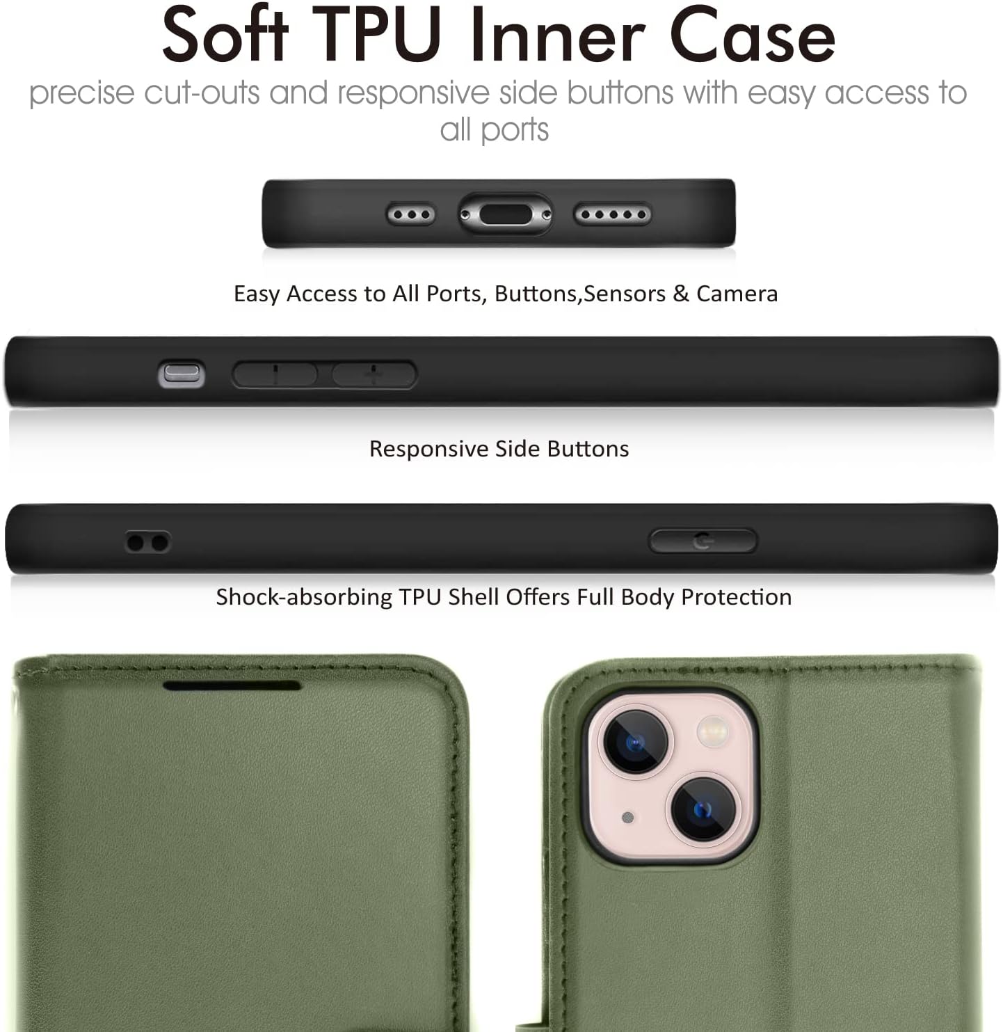 Cet étui mince en cuir PU de qualité supérieure offre une excellente protection contre les chocs, les rayures, la graisse et la poussière (étui pour iPhone 13)