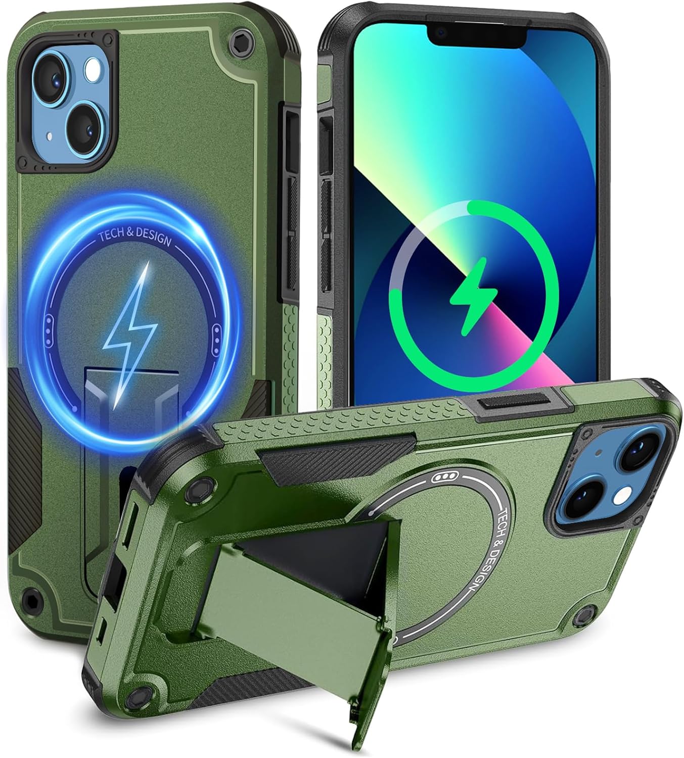 Coque magnétique avec support : conçue pour iPhone 13/iPhone 14 de 6,7 pouces, découpe précise, coque magnétique de qualité extraordinaire qui offre une protection à vie à votre téléphone. Le support invisible vous permet de débloquer plus de possibilités dans votre divertissement et votre travail.