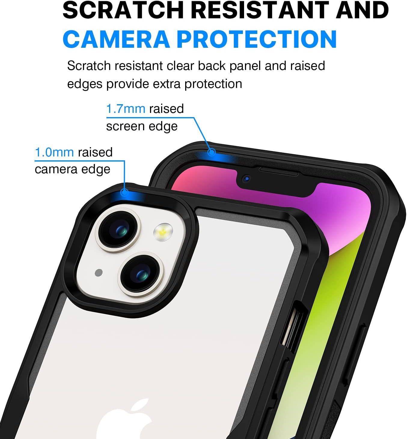 Protection de l’appareil photo : les bords surélevés de la coque pour iPhone 14/iPhone 13 offrent une protection supplémentaire pour l’appareil photo, et le protecteur de caméra arrière inclus offre une protection maximale de l’appareil photo du téléphone contre les chutes accidentelles sans affecter la qualité des photos originales du téléphone.