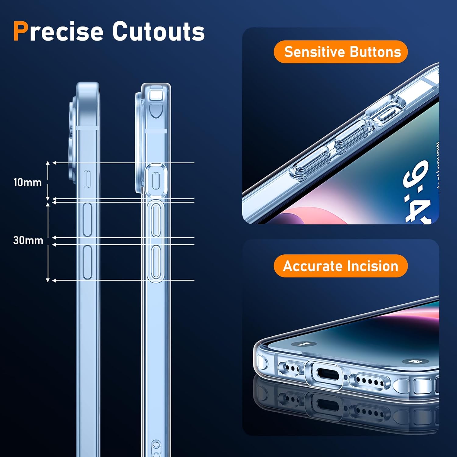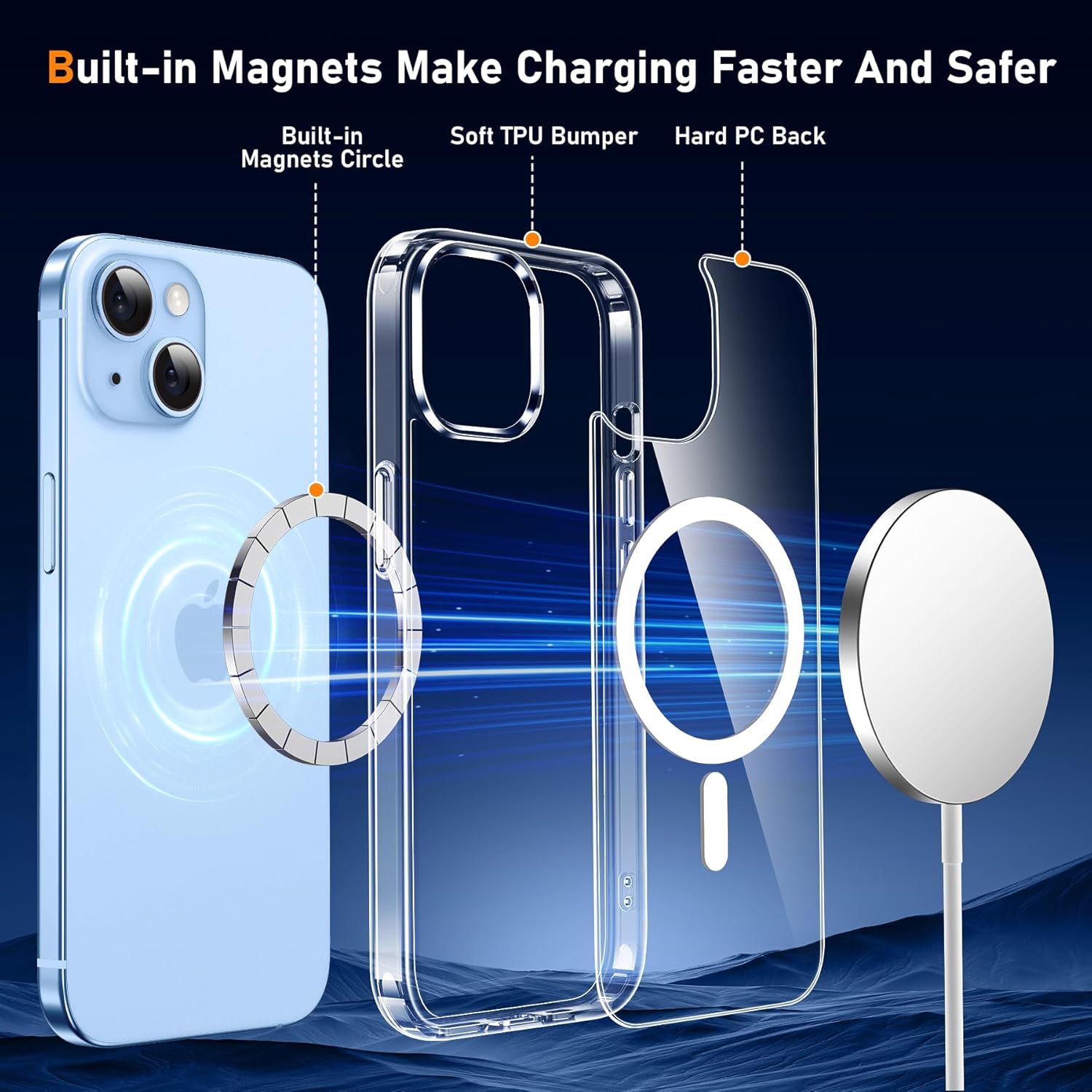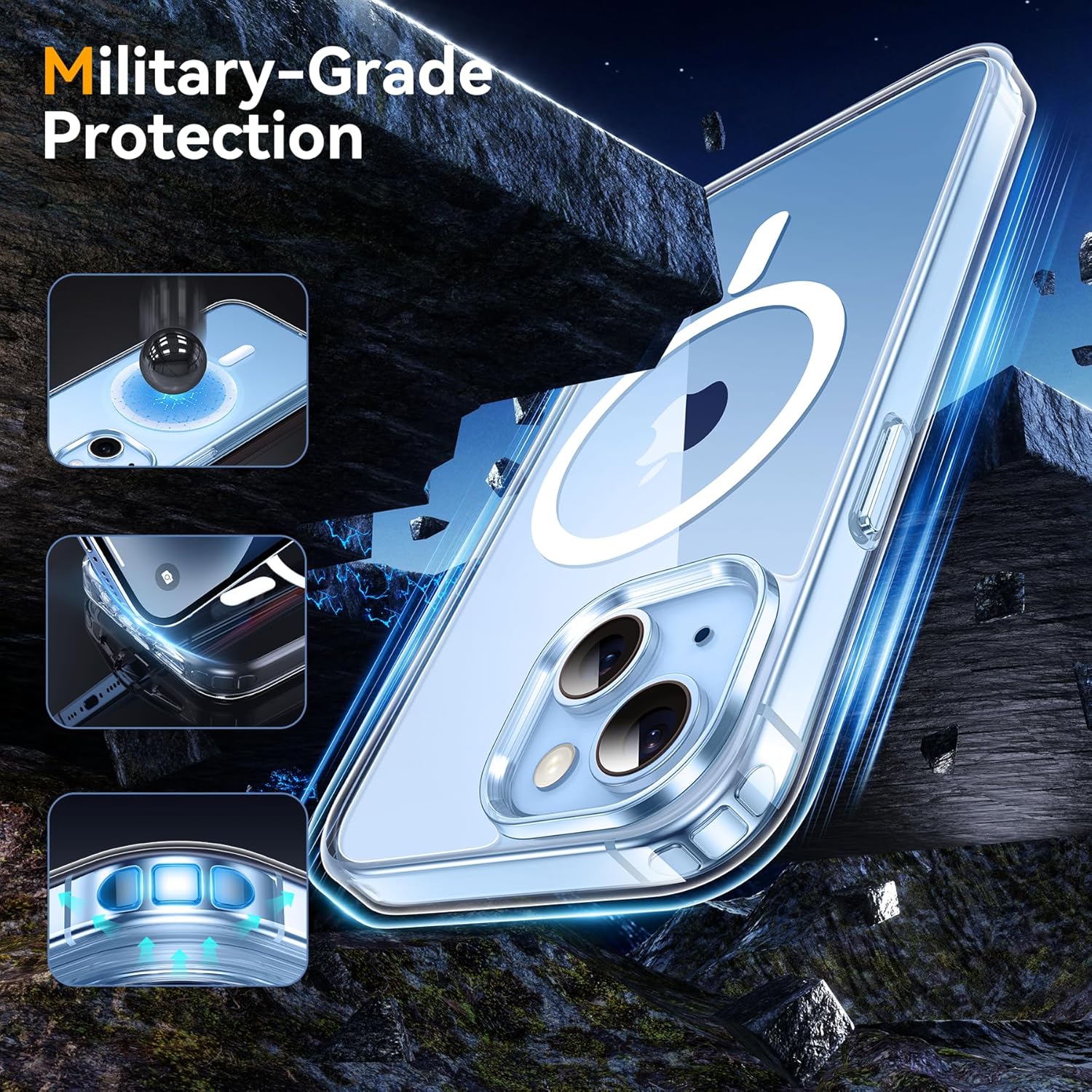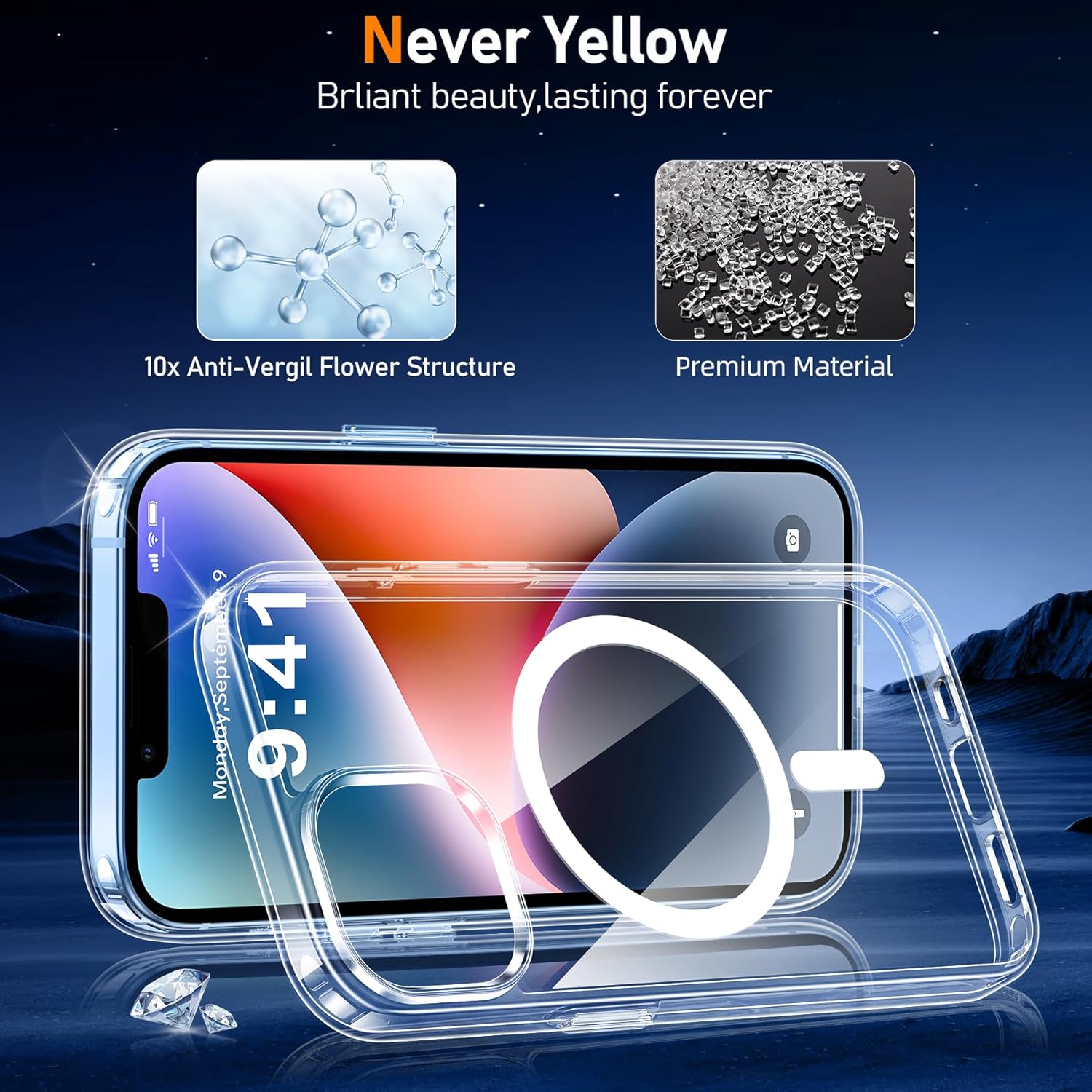 (Matériaux sélectionnés) L’ensemble du bord de notre étui iPhone 14 est en matériau TPU haute densité, ce qui permet une meilleure absorption de choc tout en offrant une meilleure adhérence. Défis, résistant aux rayures et sans glissement. Clear PC Back, anti-rayures avec une clarté durable, présentant la beauté originale iPhone 14