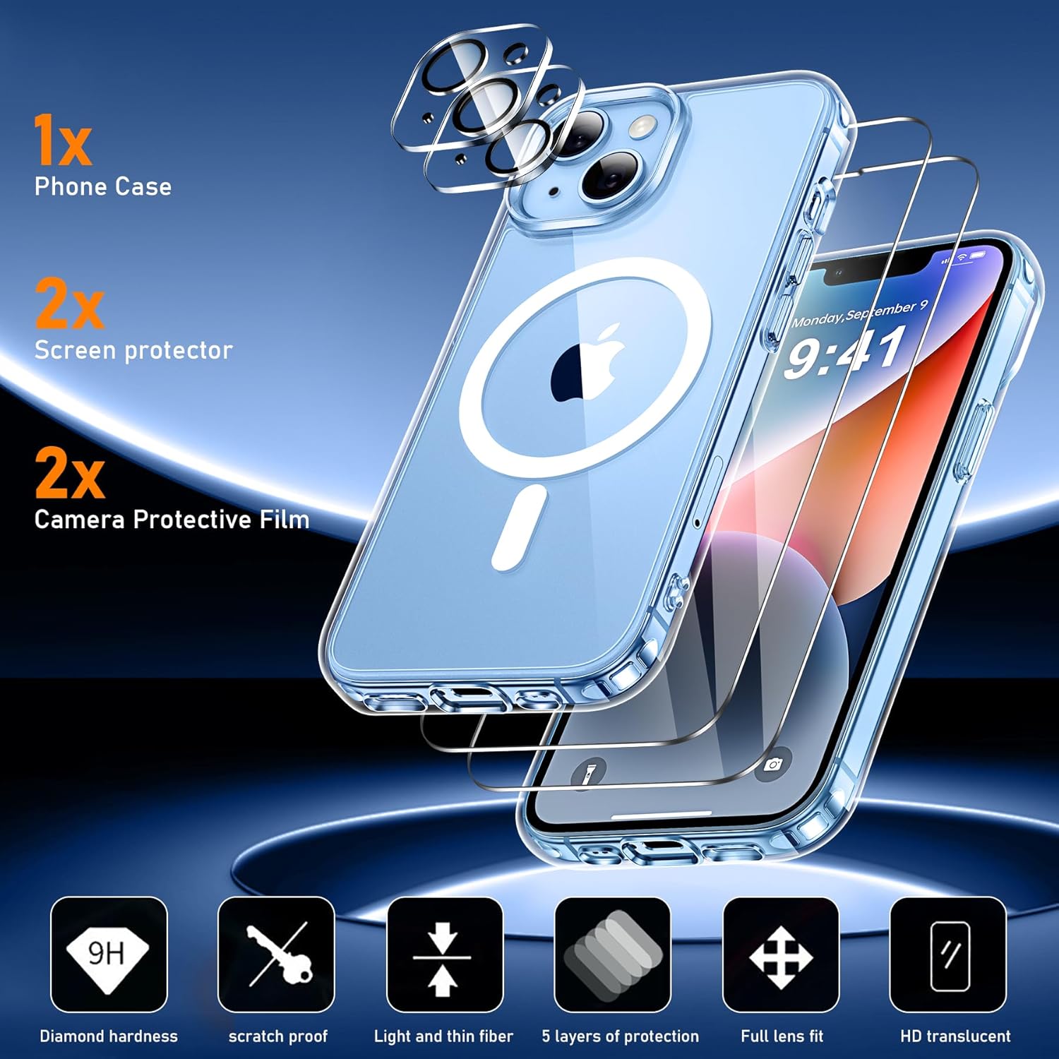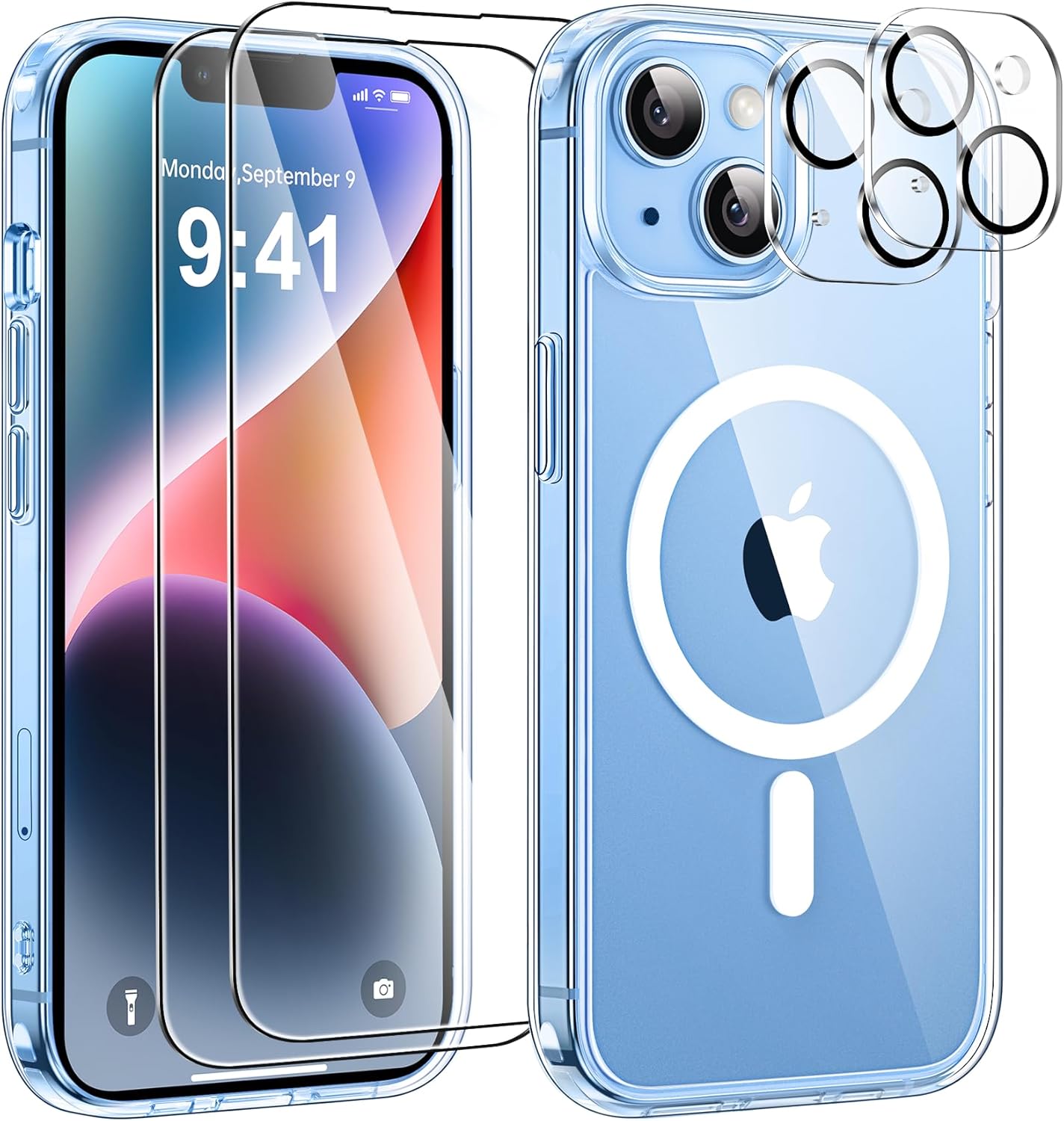(Compatibilité) Ce boîtier magnétique ultra-clair avec 2 en verre trempé et 2 protecteurs de protection de la caméra, est uniquement compatible avec l’iPhone 14 (6,1 pouces), veuillez confirmer votre modèle de téléphone avant d’acheter