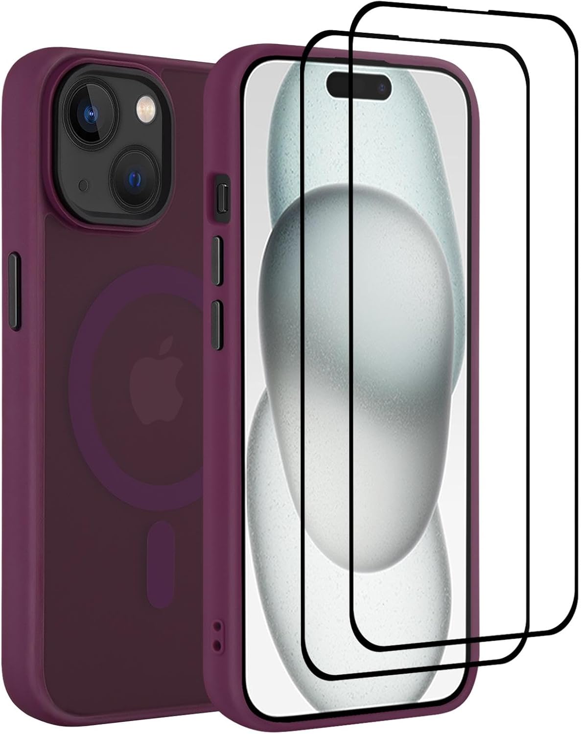 32e coque arrière magnétique fine pour iPhone 15 (6,1″) compatible avec MagSafe pour un chargement sans fil sécurisé et rapide avec 2 protecteurs d’écran en verre trempé
