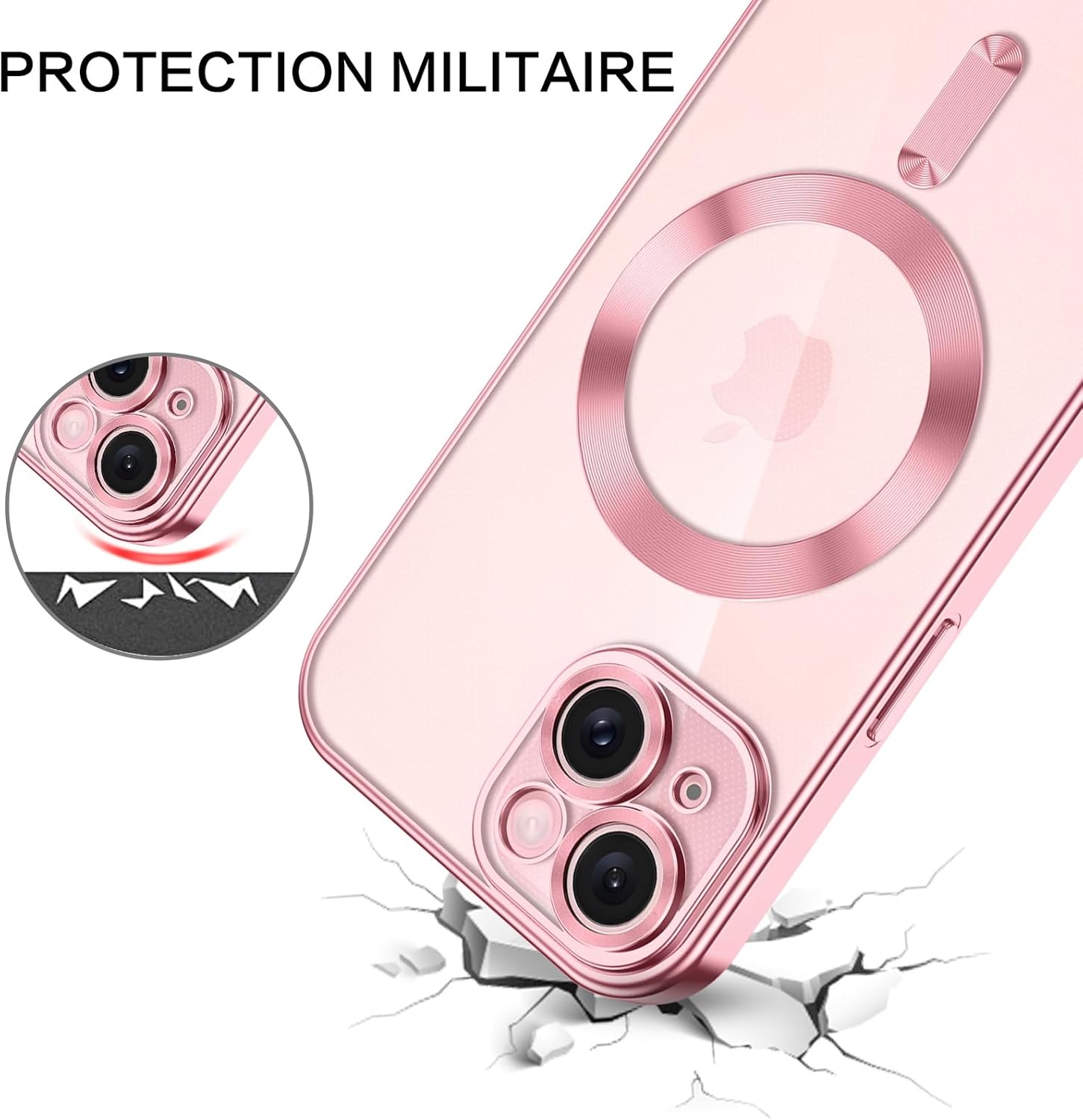 Protection contre les chutes de qualité militaire : la nouvelle structure d’airbag rembourrée à 3 couches offre une résistance aux chutes de qualité militaire, testée pour garantir une protection totale de tous les côtés, les 4 coins de la coque antichoc ont 3 couches d’airbags pare-chocs qui peuvent disperser 98 % de la force d’impact.