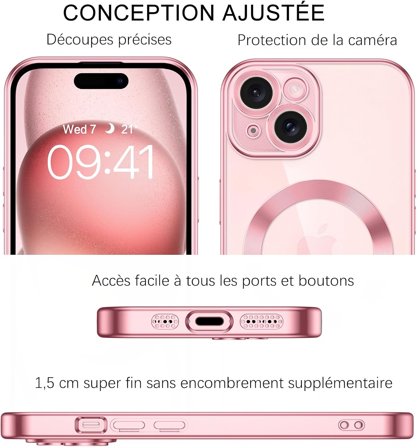 ❥❥【Compatibilité】Uniquement compatible avec l’iPhone 15, ne prend en charge aucun autre modèle. Fonctionnalité complète conservée grâce à des découpes précises pour les haut-parleurs et les ports et des boutons faciles à appuyer
