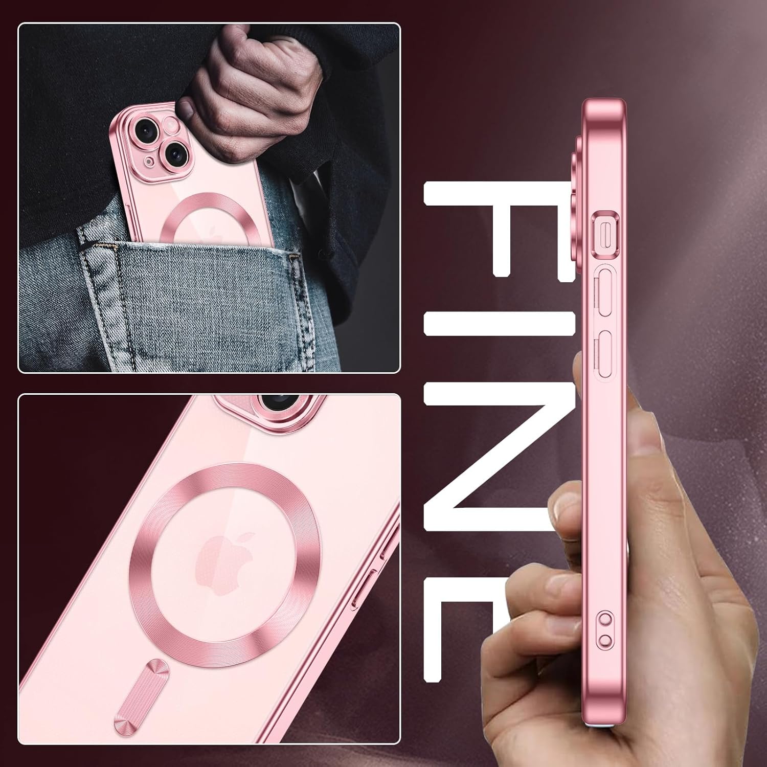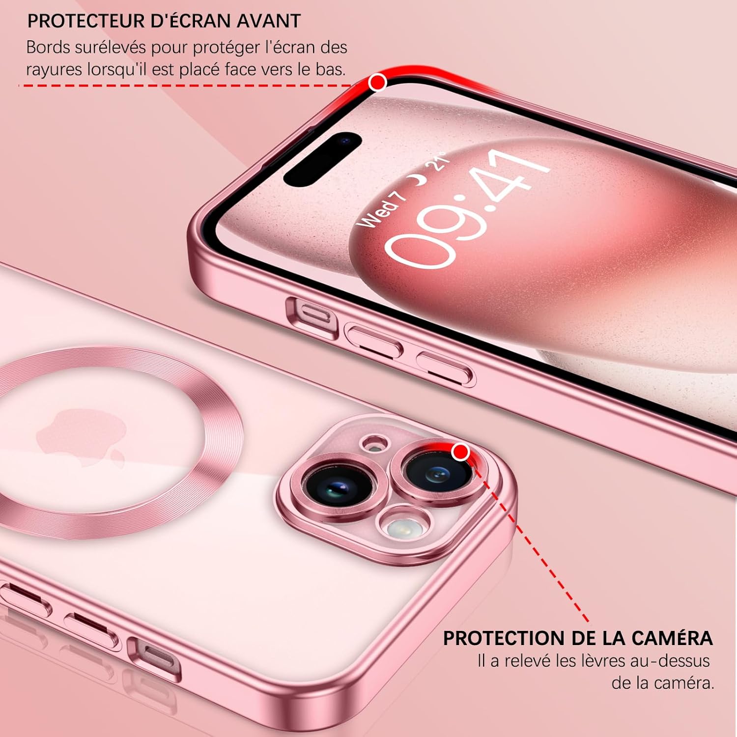 ❥❥【Design extérieur nu de l’iPhone】La coque magnétique transparente est exactement la même que celle de l’iPhone 15 avec sa bordure peinte personnalisée et son dos transparent super HD. Montrez simplement la beauté originale de votre téléphone.