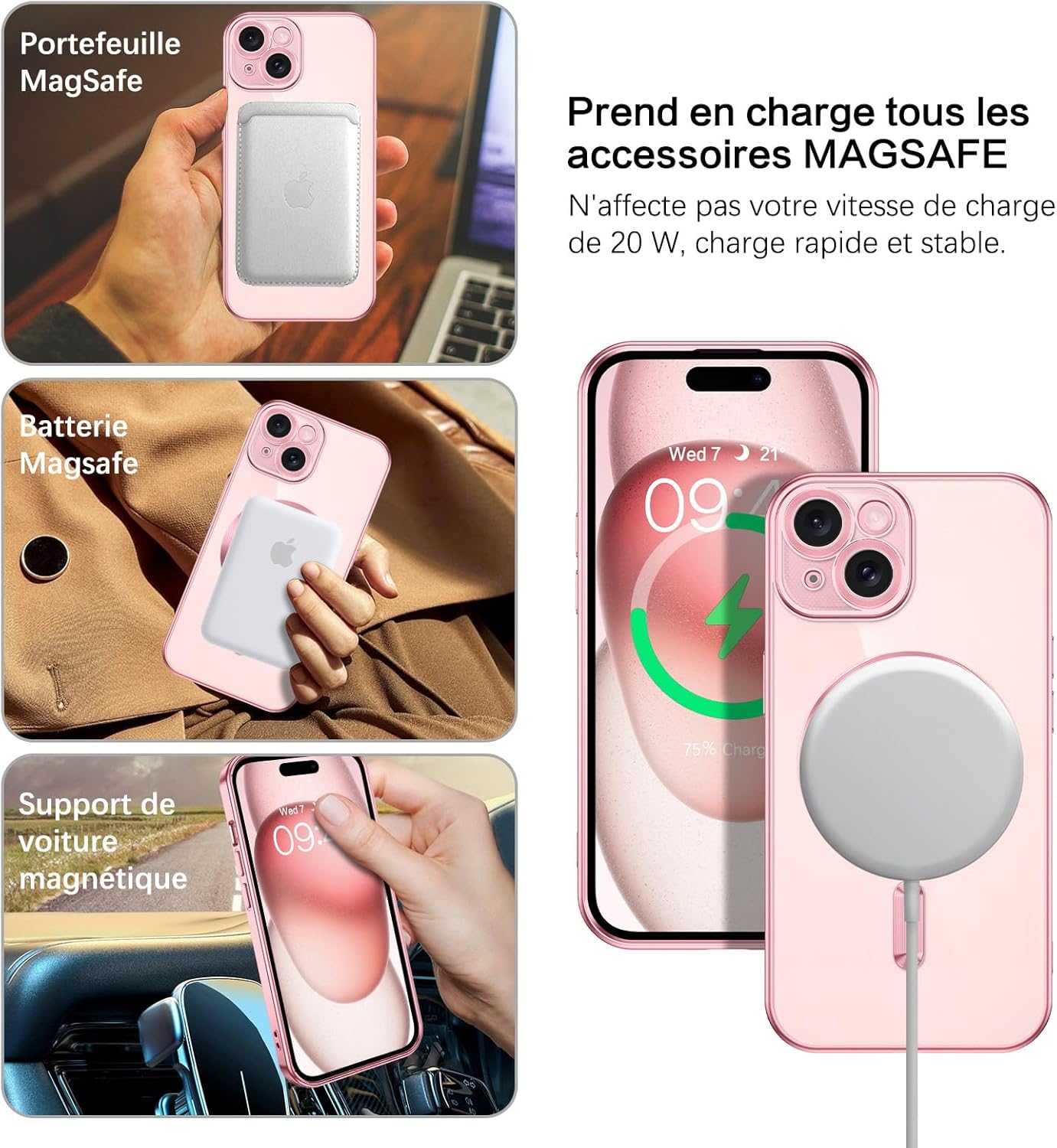 ❥❥【Fixation magnétique plus puissante】La coque Magsafe pour iPhone 15 avec des aimants puissants intégrés avec une force de maintien de 1 500 g permet un chargement sans fil plus rapide et plus facile et une fixation sécurisée pour tout accessoire HaloLock ou MagSafe.