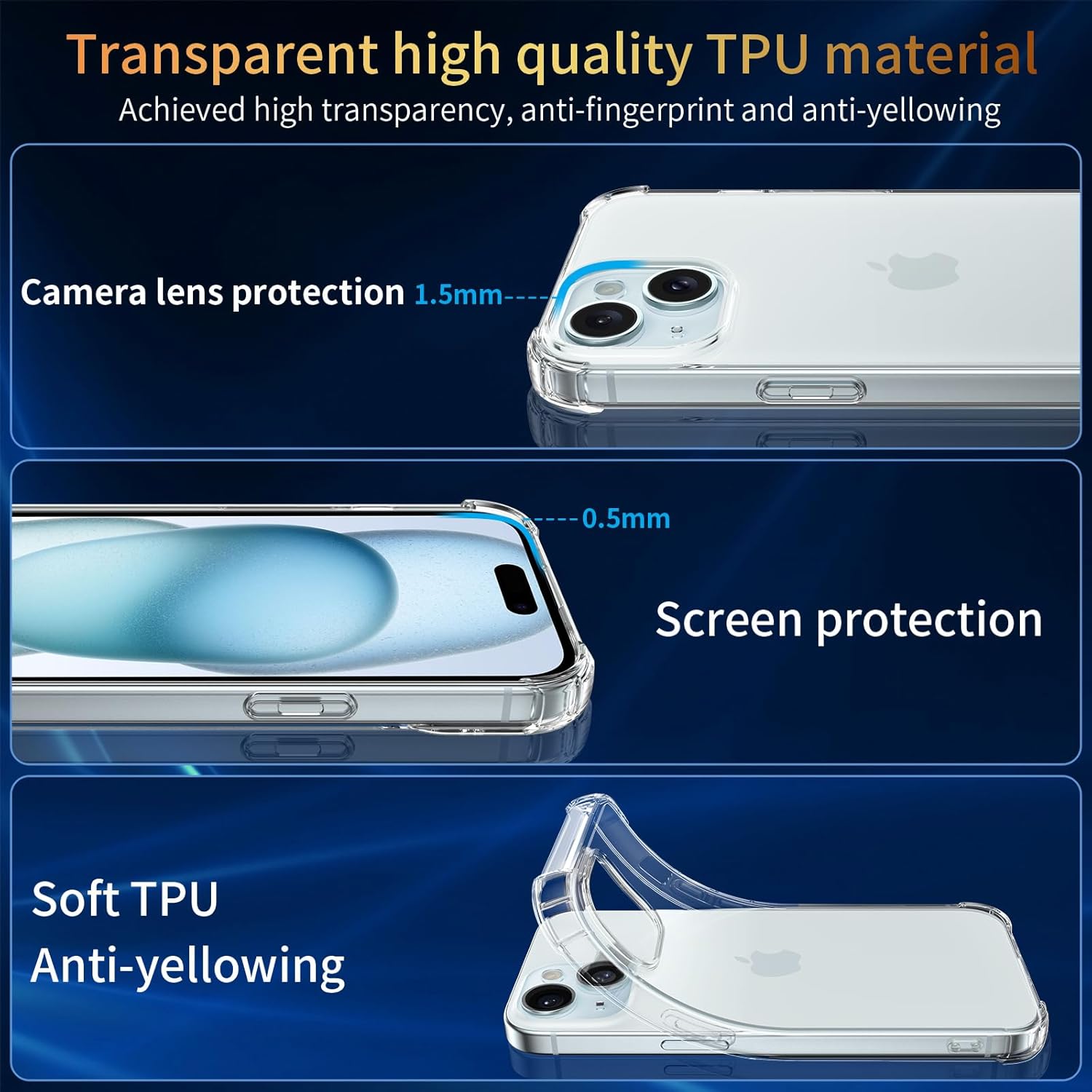 (Compatibilité) Conçu exclusivement pour iPhone 15 6,1 pouces (REMARQUE ! Pas pour iPhone 15 Plus/iPhone 15 Pro/iPhone 15 Pro Max). Cette coque en TPU avec 2 verres trempés et 1 protecteur d’appareil photo pour une protection complète de votre téléphone.