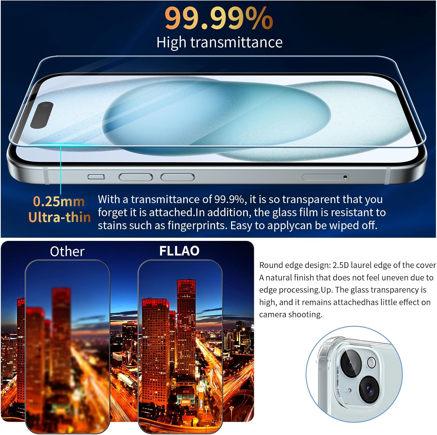(Protection de l’écran et de l’appareil photo) 2 pièces de verre trempé en verre trempé 9H de haute qualité, supérieur, résistant aux rayures et aux explosions, protégeant votre écran des rayures et des chutes à fort impact. Le film de protection de la caméra arrière est conçu pour la caméra de l’iPhone 15 afin de garantir une protection maximale de la caméra.