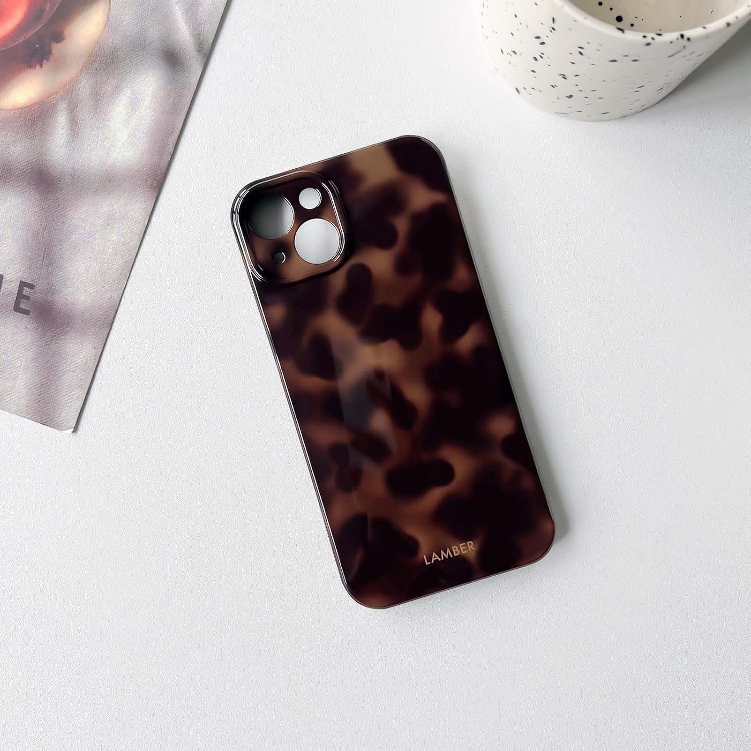 Deux coques de téléphone arborant un motif en écaille de tortue, présentées en position debout pour montrer l'apparence du produitDeux coques de téléphone arborant un motif en écaille de tortue, présentées en position debout pour montrer l'apparence du produit
