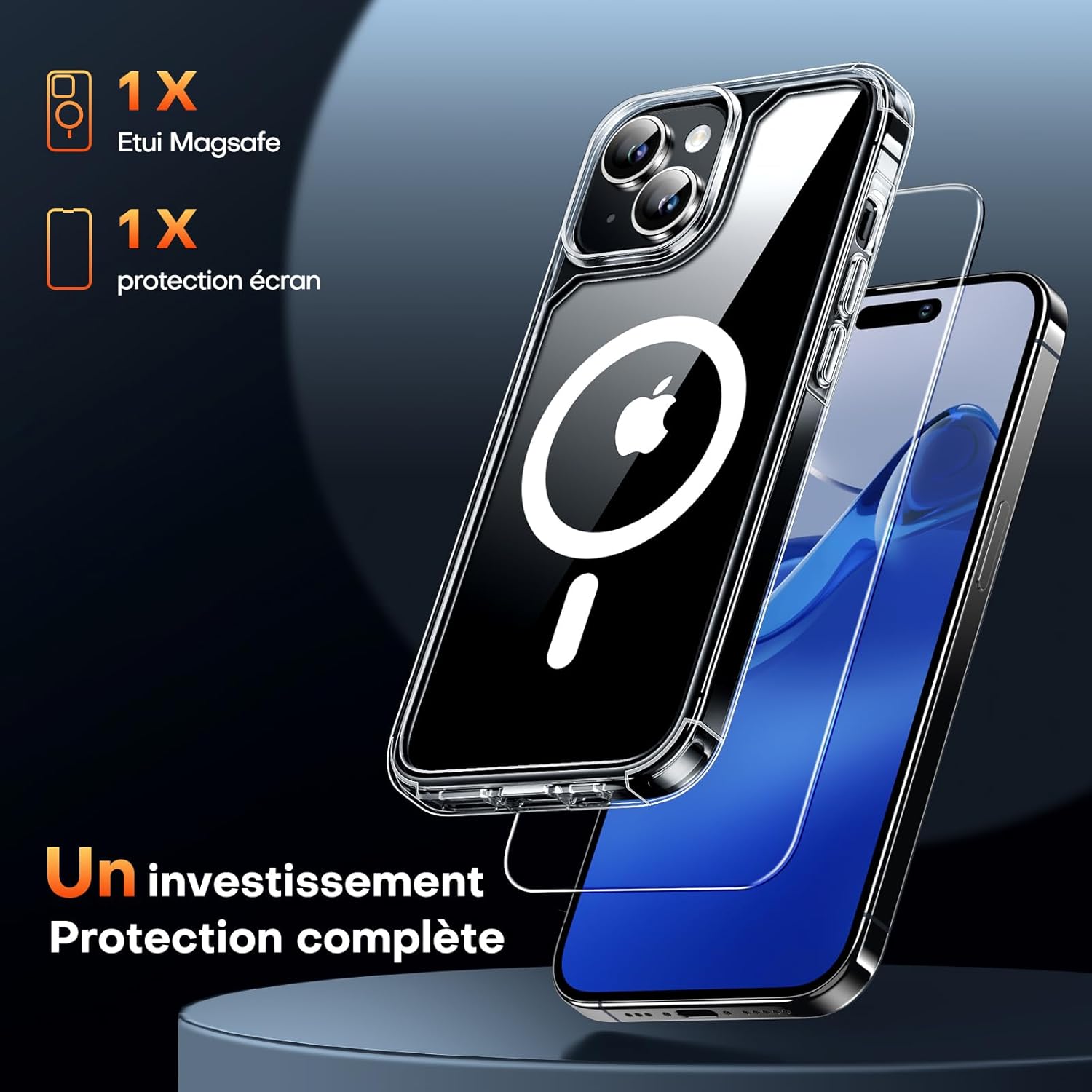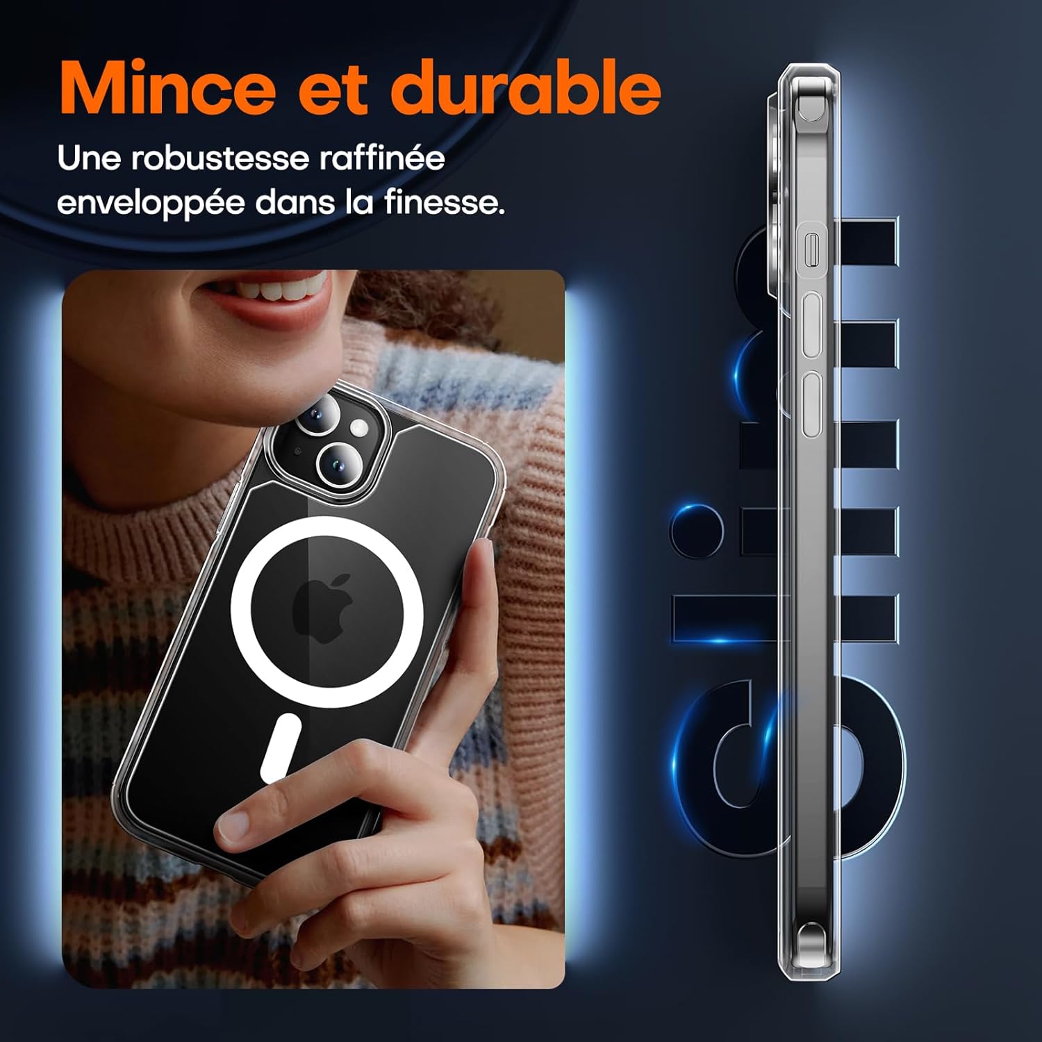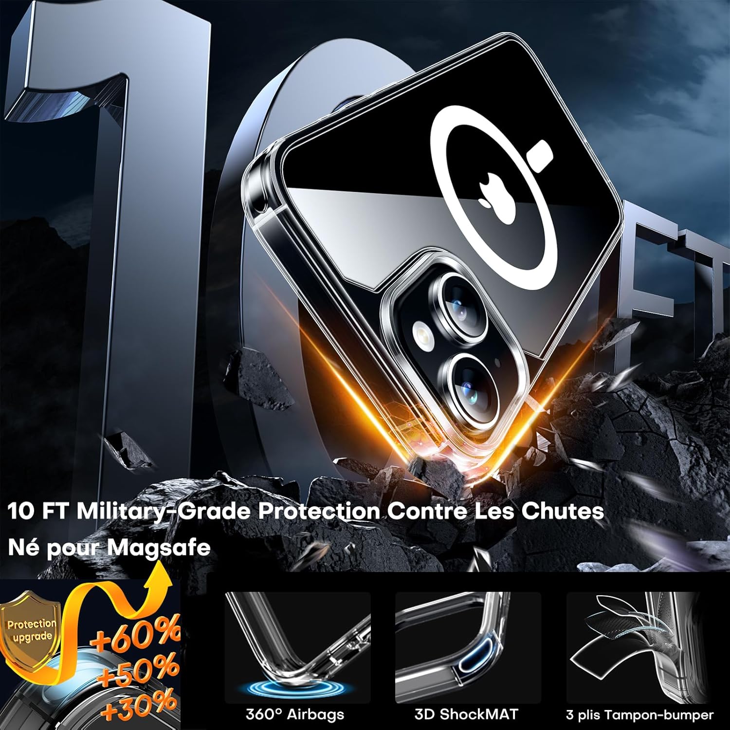 PUISSANCE MAGNÉTIQUE INÉGALÉE : les aimants super N52 intégrés renforcent la connexion magnétique et assurent un alignement automatique, rendant le chargement sans fil/Mag-Safe plus rapide et plus sûr qu’auparavant. Cette coque pour iPhone 15 est entièrement compatible avec tous les accessoires Mag-Safe, y compris les chargeurs sans fil, les portefeuilles, les batteries et les supports de voiture