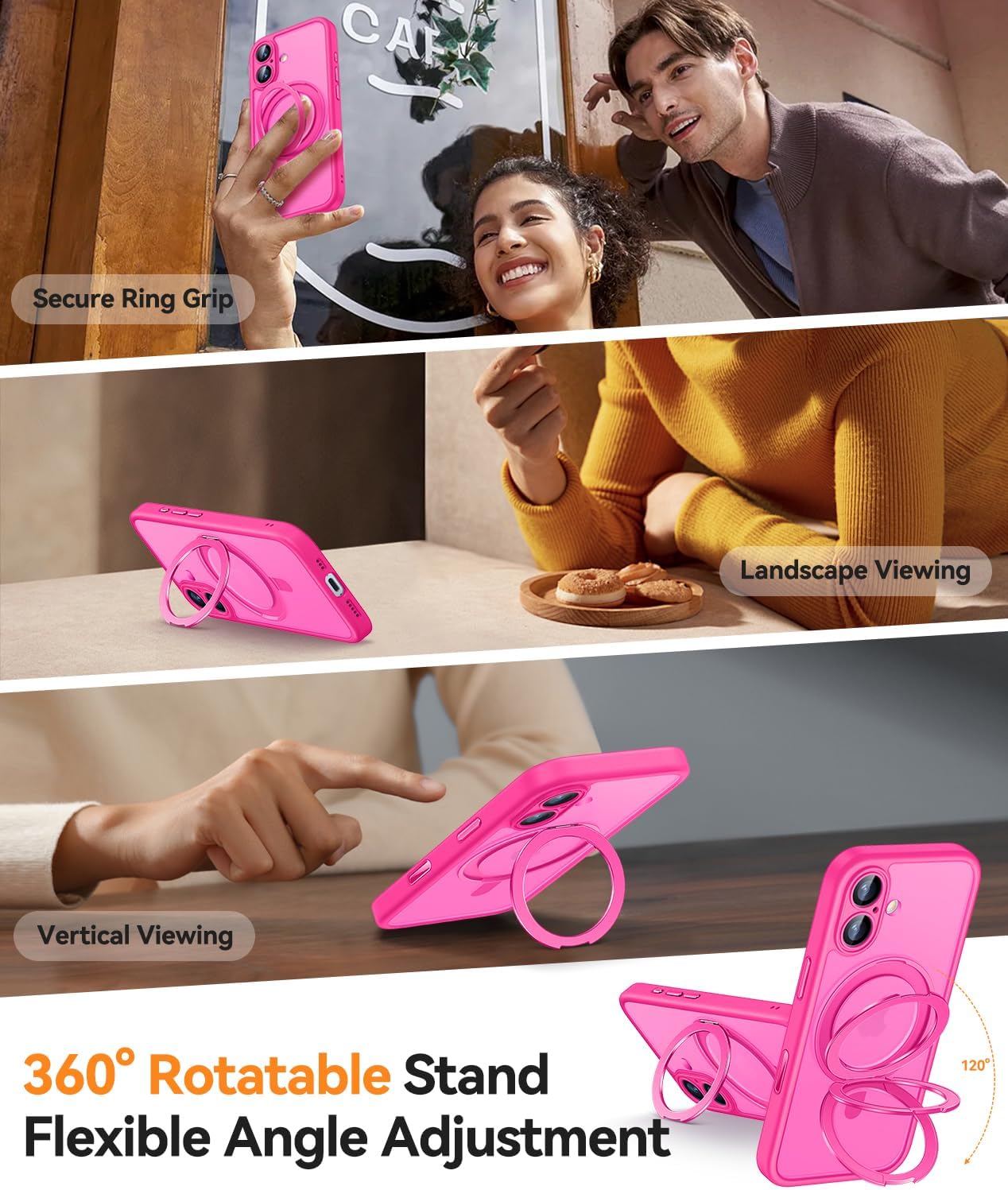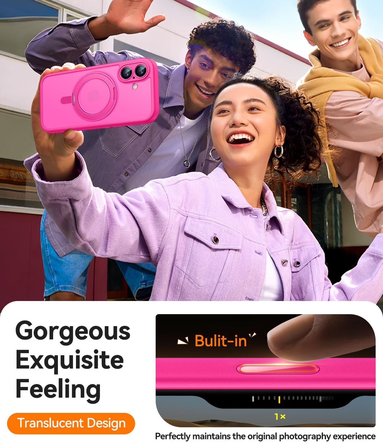 (Puissante attraction magnétique) Avec de puissants aimants N52 intégrés, cet étui est parfaitement compatible avec les chargeurs MagSafe et autres chargeurs sans fil Qi. Il se connecte également fermement à d’autres accessoires magnétiques tels que des portefeuilles magnétiques, des banques d’alimentation et des supports de voiture, assurant une connexion sécurisée et stable même en cas de rotation ou de déplacement.