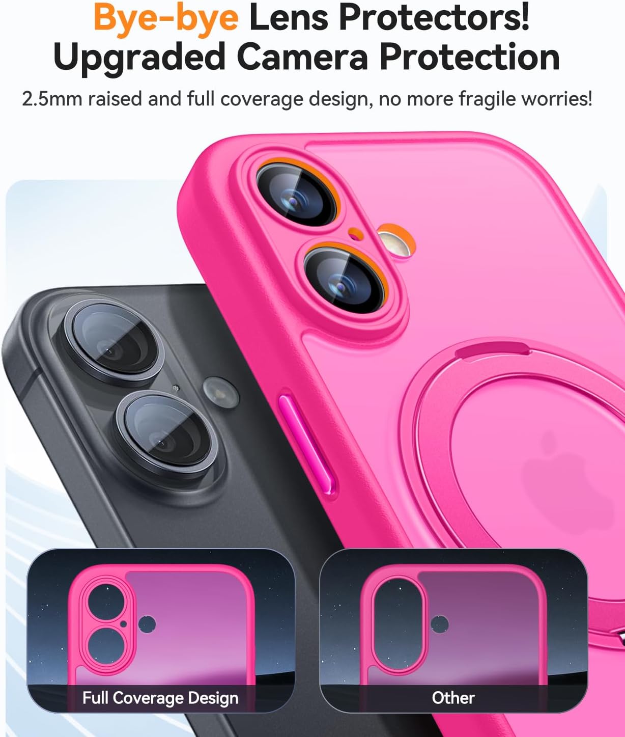 (Protection intégrale améliorée de l’appareil photo) Par rapport à d’autres coques de téléphone ordinaires, notre coque offre une protection complète améliorée pour l’appareil photo, avec un rebord surélevé de 2,5 mm autour de l’objectif. (Le protecteur d’objectif d’appareil photo ou le protecteur d’objectif d’appareil photo intégré ne sont pas inclus).