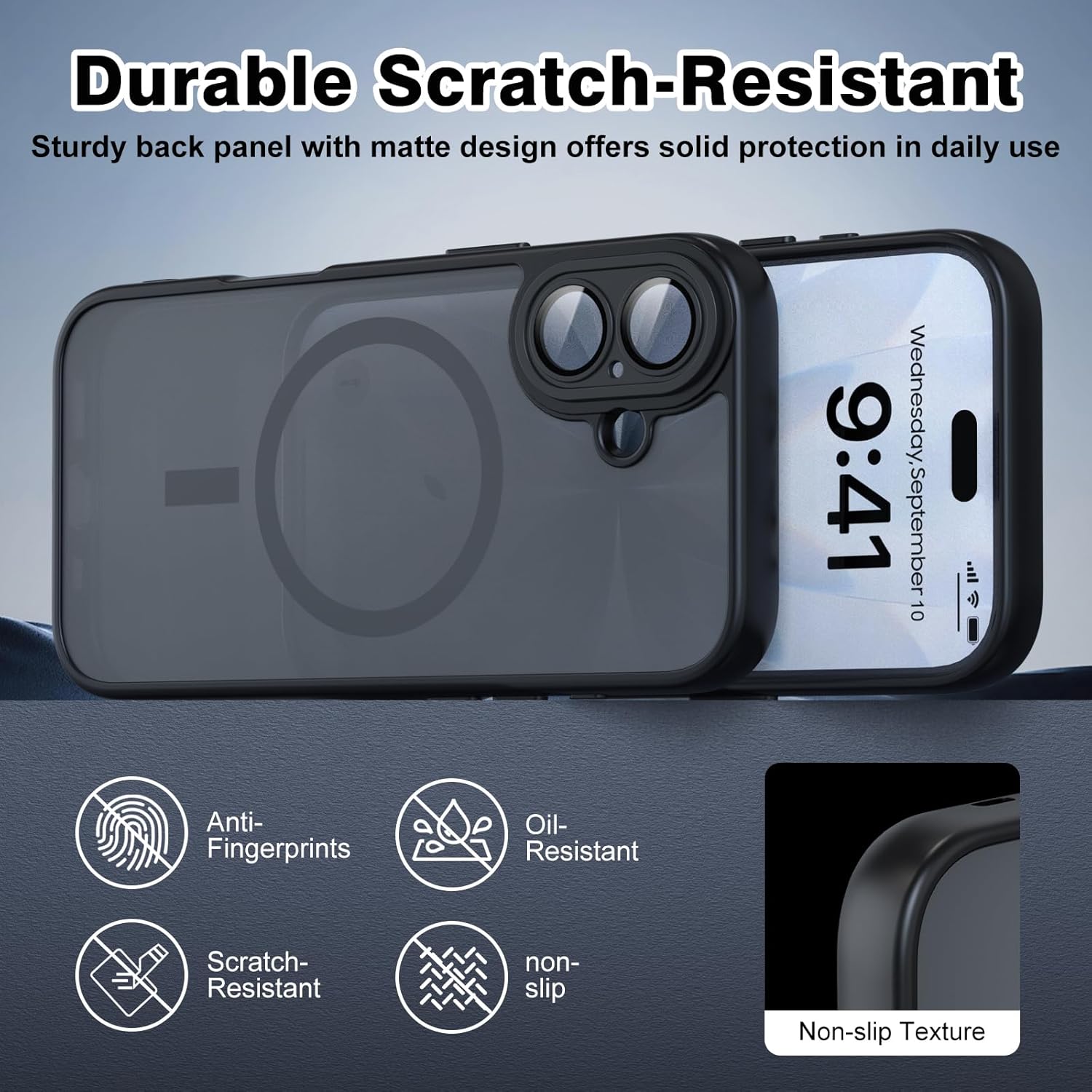 Coque Nupcknn pour iPhone 17 – Conception et protection supérieures Fabriquée dans un matériau semi-transparent avec un cadre en TPU et une coque arrière en PC, cette coque combine une texture soyeuse avec une adhérence optimale. Sa finition mate et givrée lui confère un look épuré et structuré, tandis que son design léger et minimaliste en fait l’accessoire parfait pour votre iPhone 17.