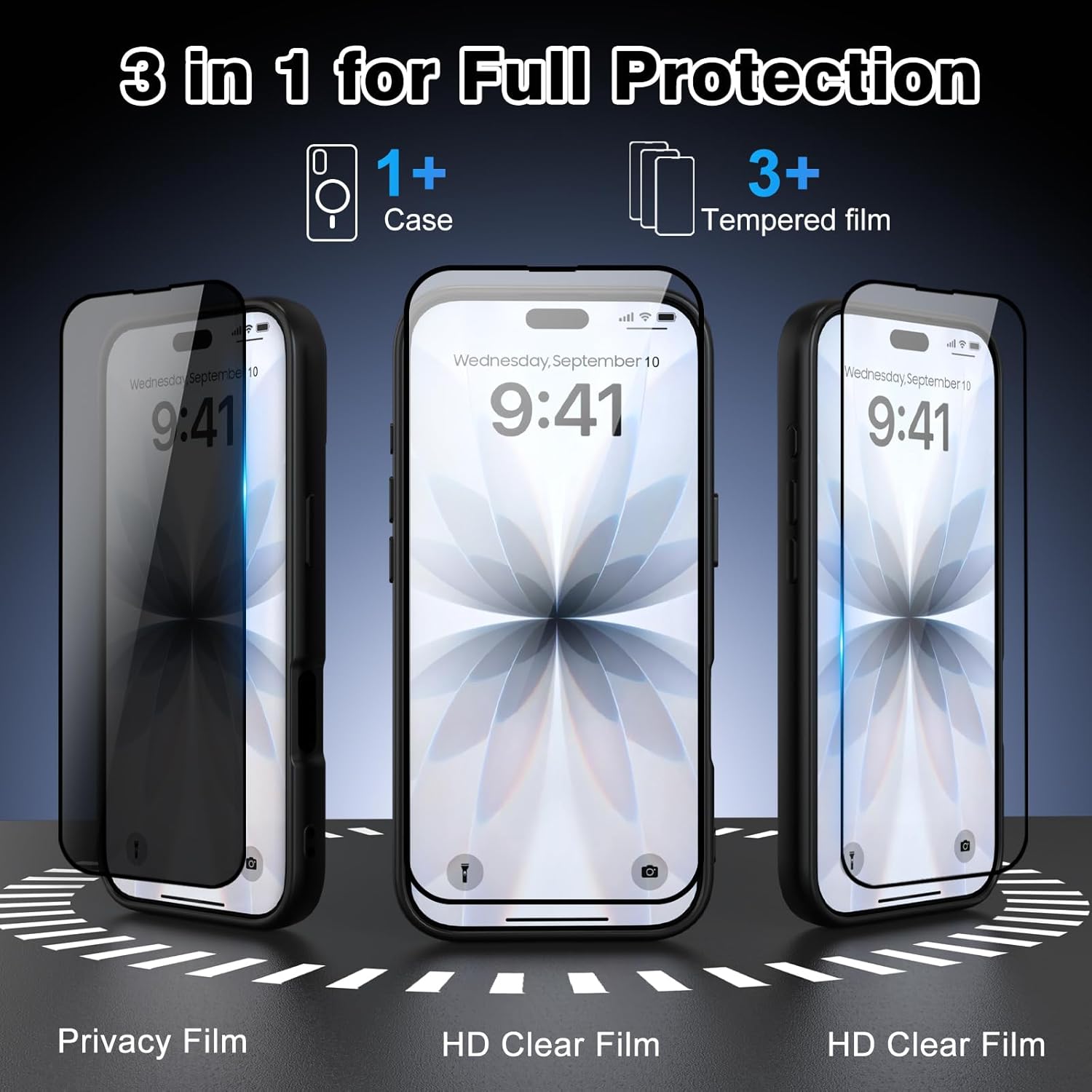 Notre ensemble exclusif comprend trois protecteurs d’écran en verre cristal : deux versions Ultra HD (pour une netteté maximale) et un film de confidentialité (pour protéger votre vie privée). La conception intègre également un film de protection d’appareil photo ultra résistant, qui protège durablement vos appareils photo des rayures, de la poussière et des chocs – sans aucune surépaisseur et sans compromettre la qualité de vos photos !