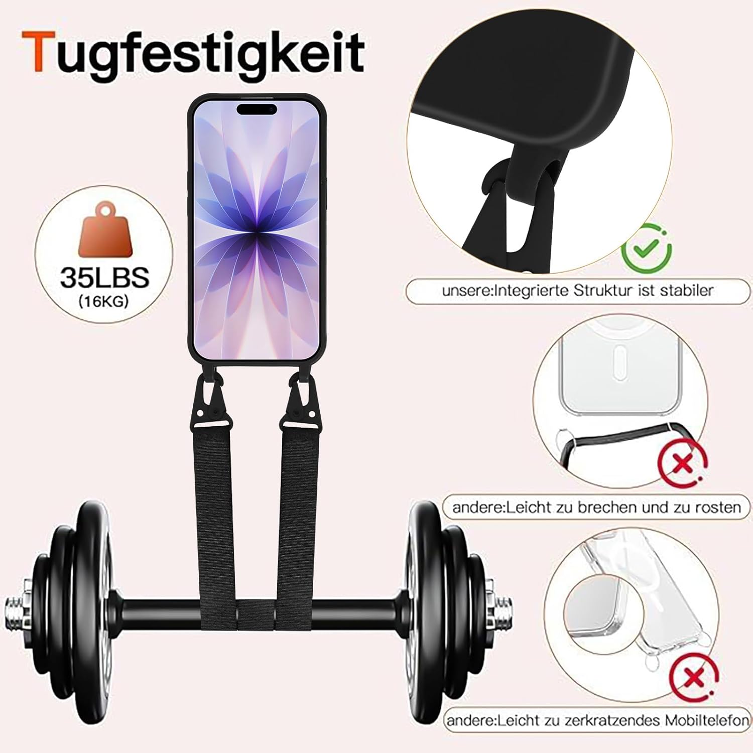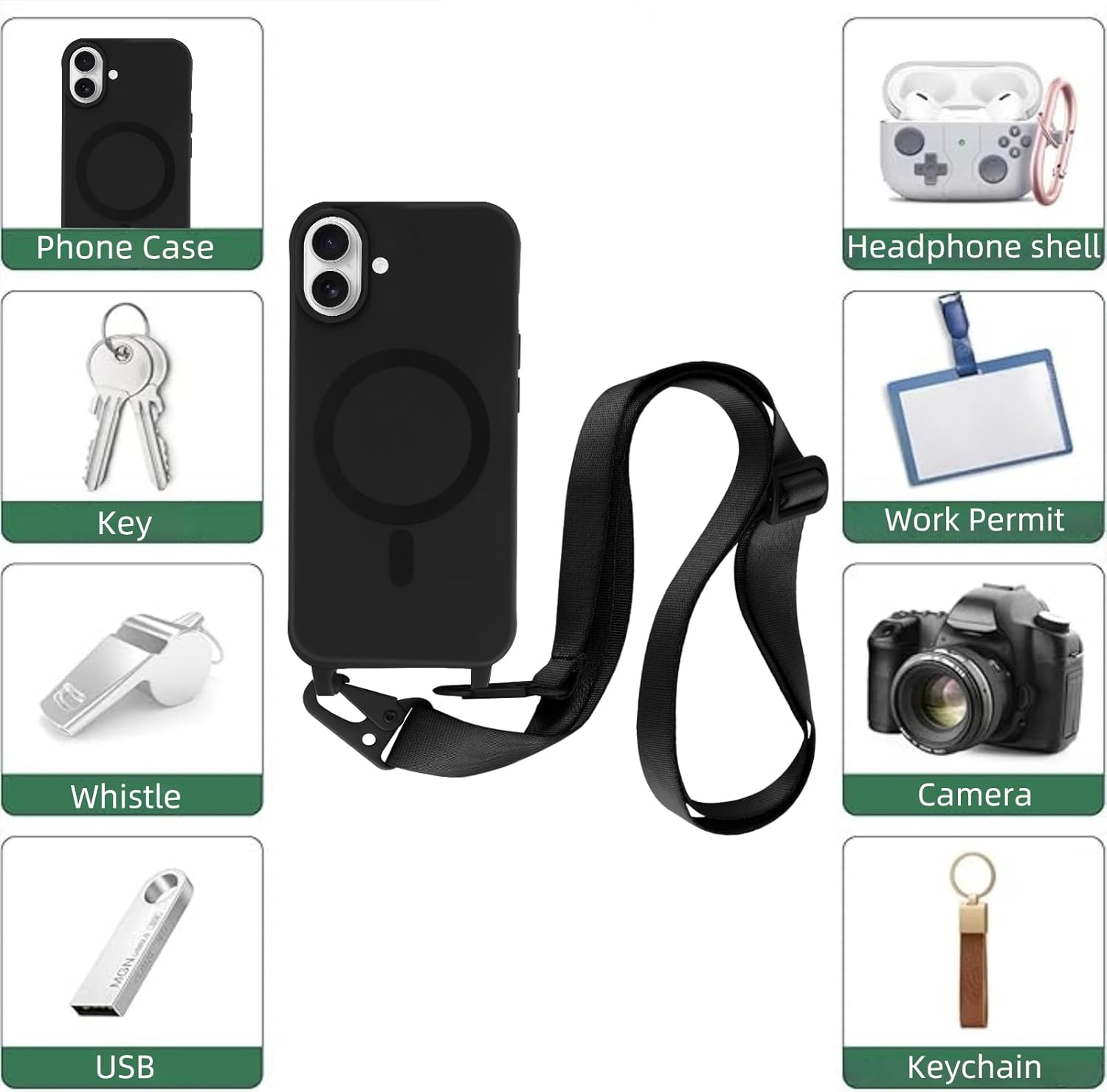 【Réglable et facile à utiliser】 Cette lanière mobile pour iPhone 17 a un design détachable et réglable pour maximiser la liberté de vos mains, parfaite pour le travail, les voyages et les activités de plein air, et peut également être appliquée aux appareils photo, aux sacs à bandoulière, aux porte-clés, etc.