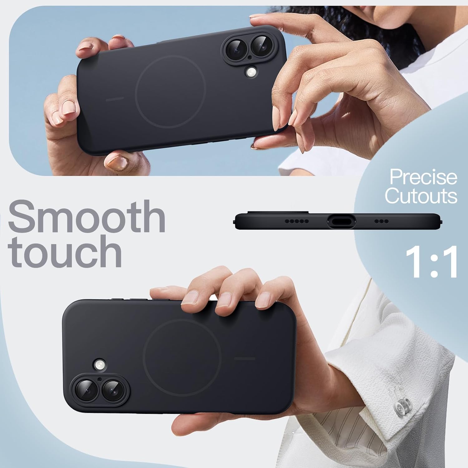 Coque iPhone 17 – JETech Coque magnétique en silicone pour iPhone 17 6,3 pouces, compatible avec MagSafe, doux au toucher, absorbant les chocs, avec protection d’objectif d’appareil photo (Noir)