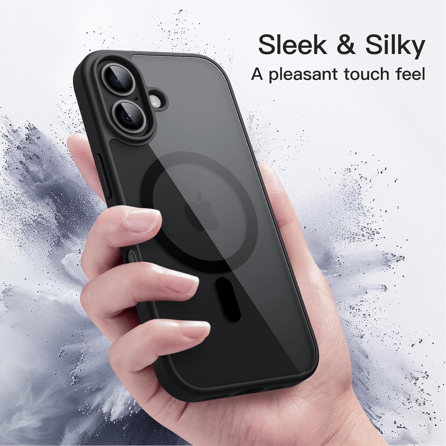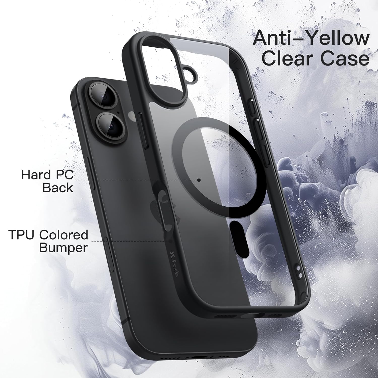 JETech Coque magnétique pour iPhone 17 6,3 pouces compatible avec MagSafe, coque antichoc, cadre en TPU mat de couleur unie, dos transparent anti-rayures (noir)