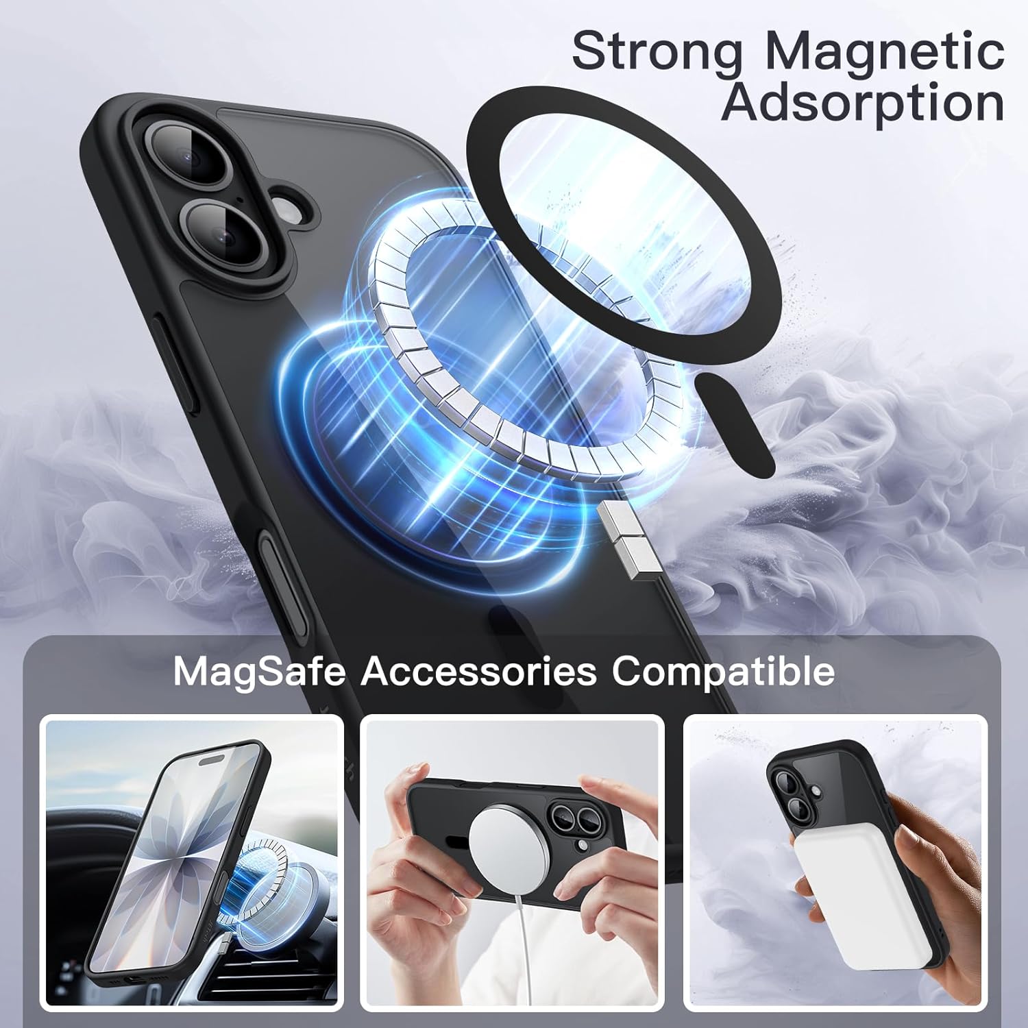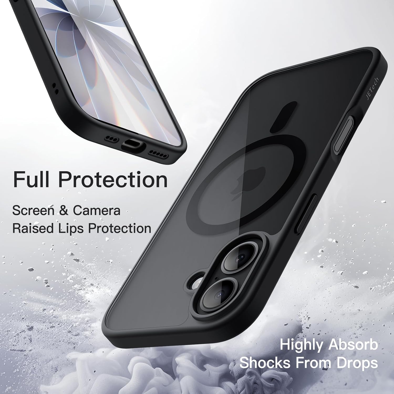 Coque iPhone 17 – JETech Coque magnétique pour iPhone 17 6,3 pouces compatible avec MagSafe, coque antichoc, cadre en TPU mat de couleur unie, dos transparent anti-rayures (noir)