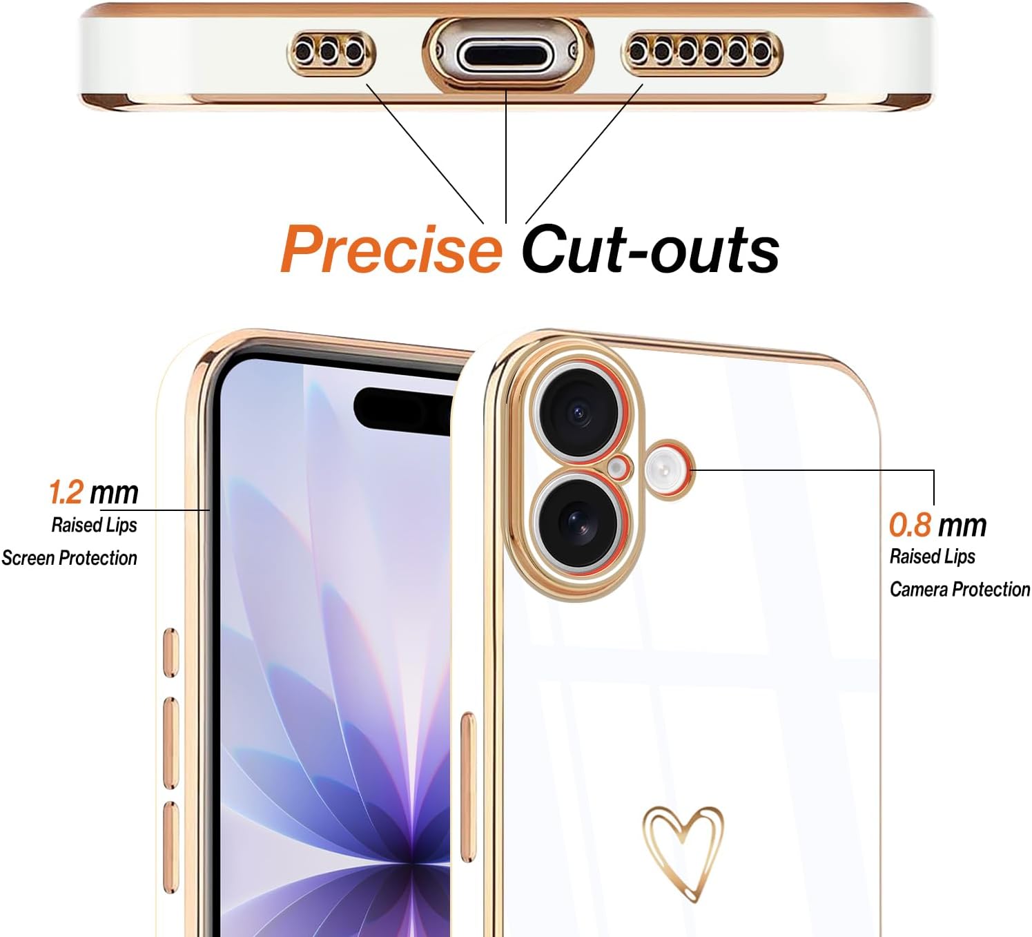 Compatibilité Cette jolie coque en silicone avec bords dorés et cœur est conçue pour iPhone 17 6,3 pouces / iPhone 17 / iPhone 17. Veuillez vérifier votre modèle de téléphone avant l’achat.